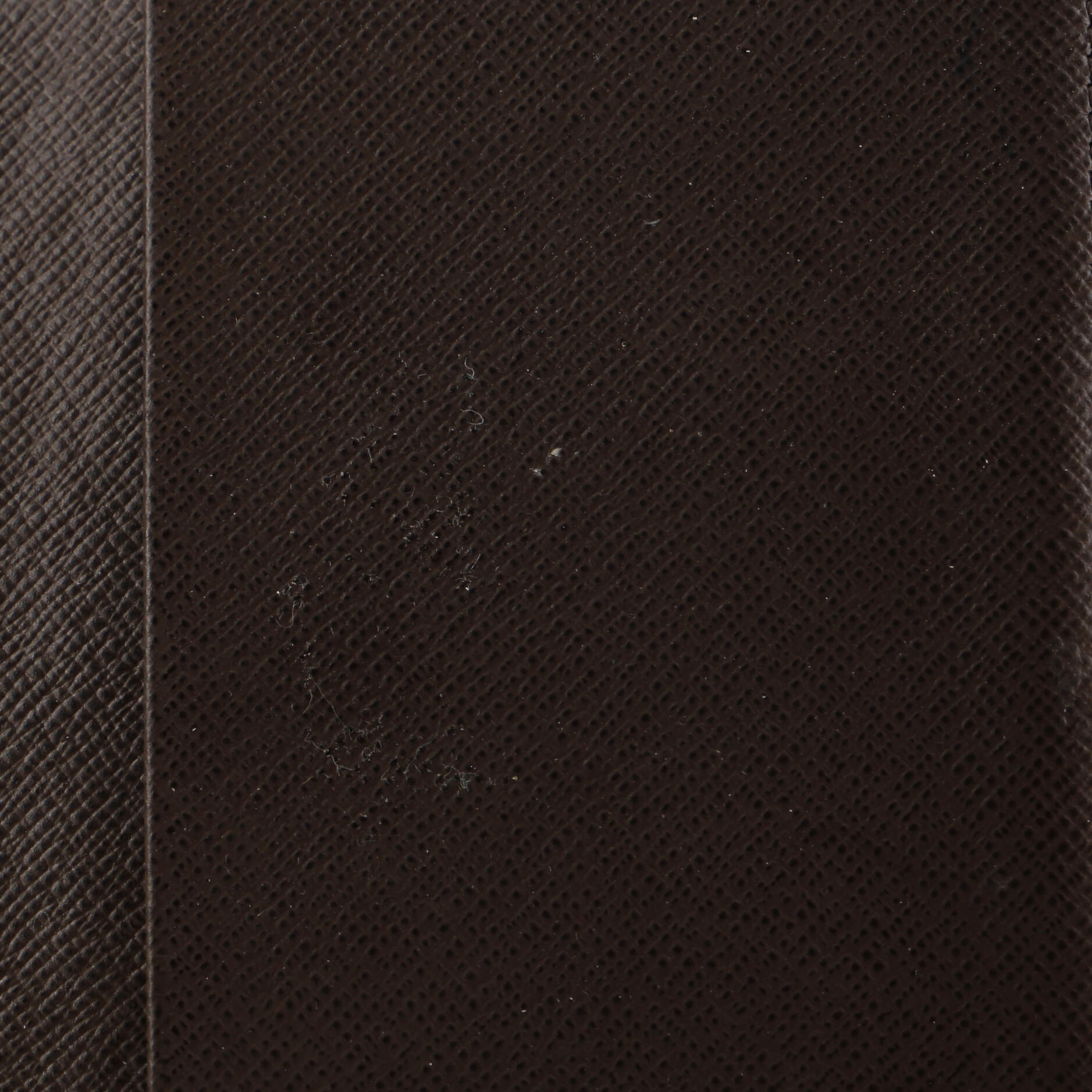 Condition: Very good. Minor odor throughout. Creasing and minor marks on exterior, cracking and peeling on opening base corner wax edges, wear and marks in interior.