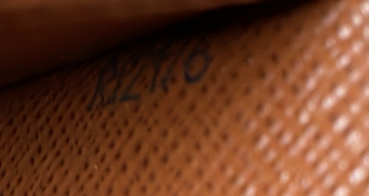 Condition: Fair. Creasing and wear on exterior, moderate splitting, peeling and fraying on exterior and flap closure wax edges, slight bubbling underneath flap closure. Minor wear, scuffs and indentations in interior, scratches, slight tarnish and discoloration on hardware.