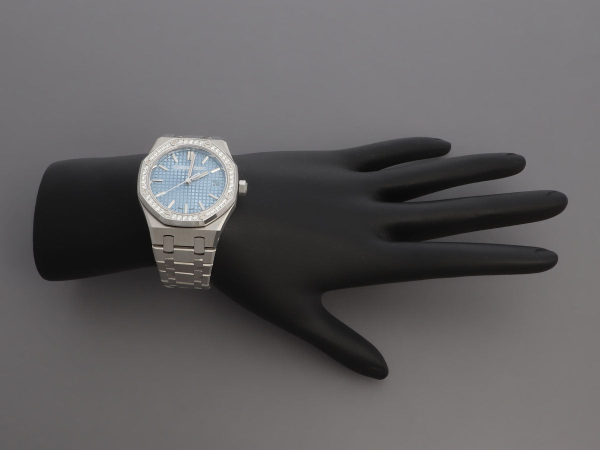 Audemars Piguet 50th Anniversary Stainless Steel Diamond Ice Blue Dial Royal Oak Watch 34mm