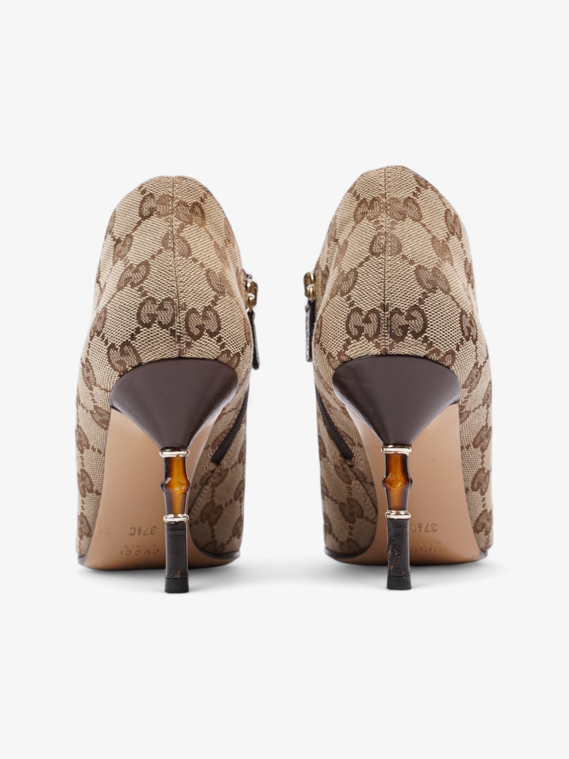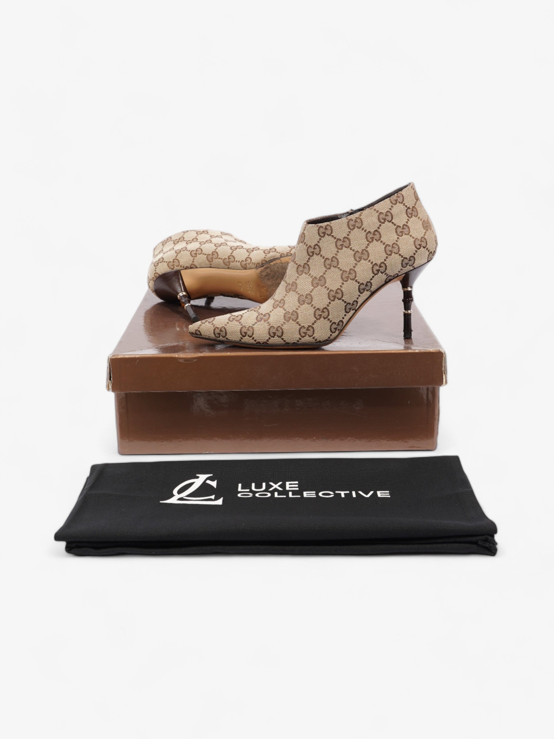 Gucci Ankle Heeled Boots 85mm Beige And Ebony GG Supreme Canvas EU 37.5 UK 4.5