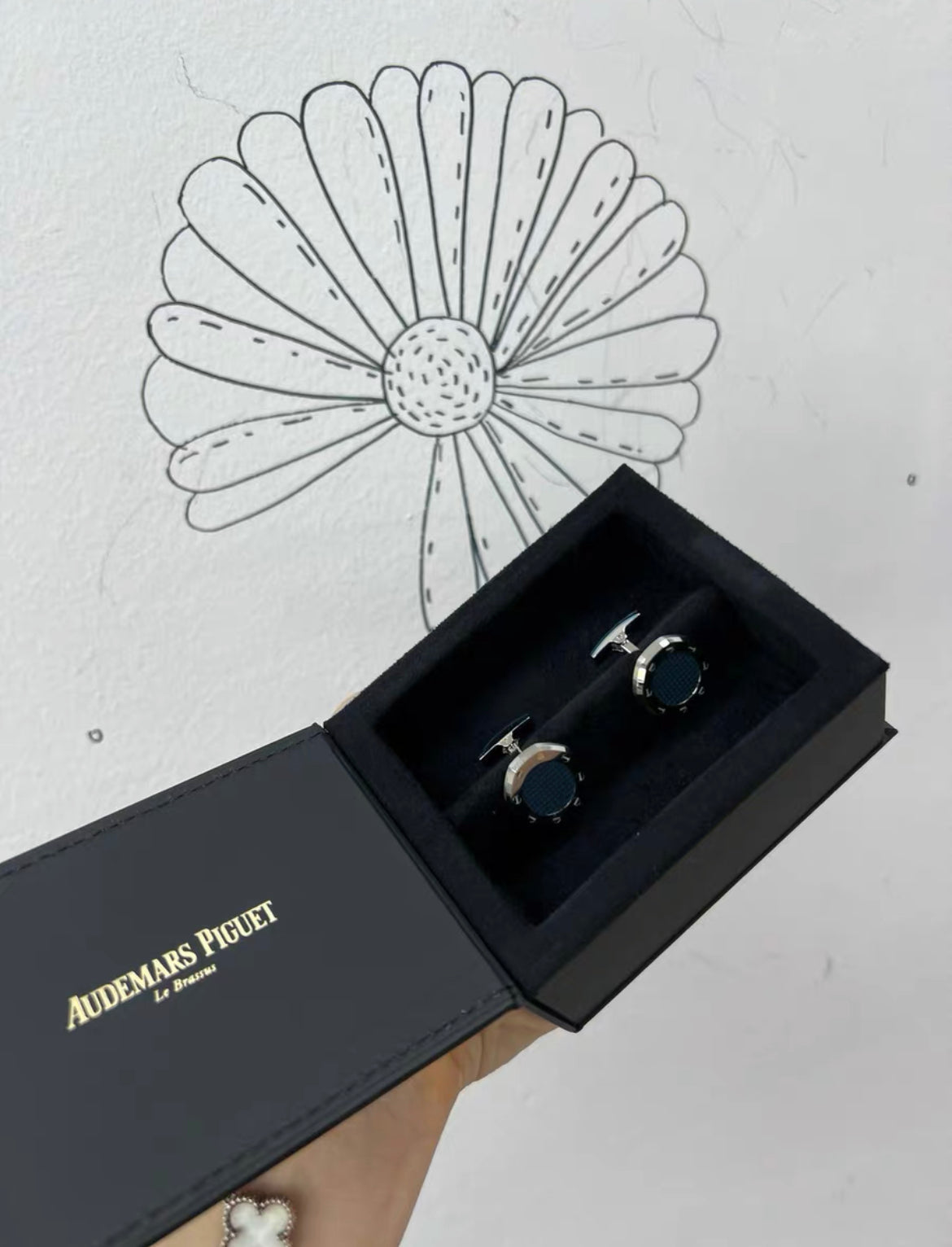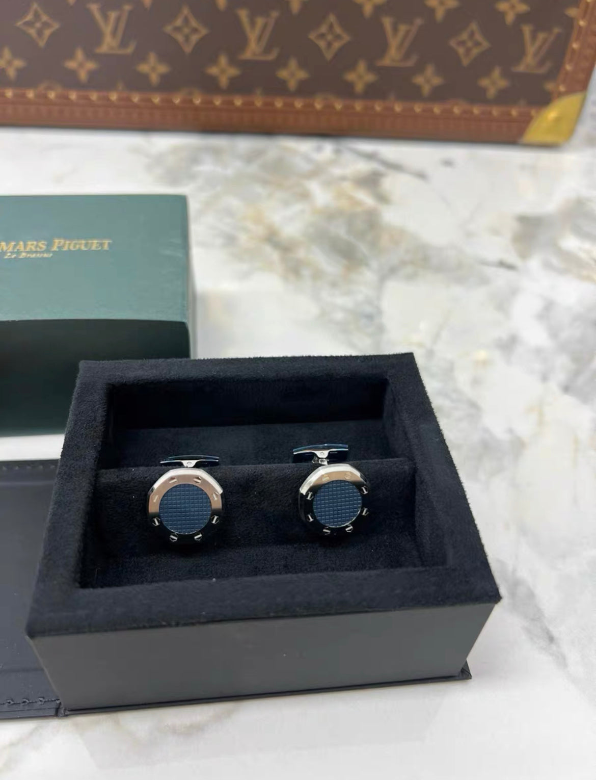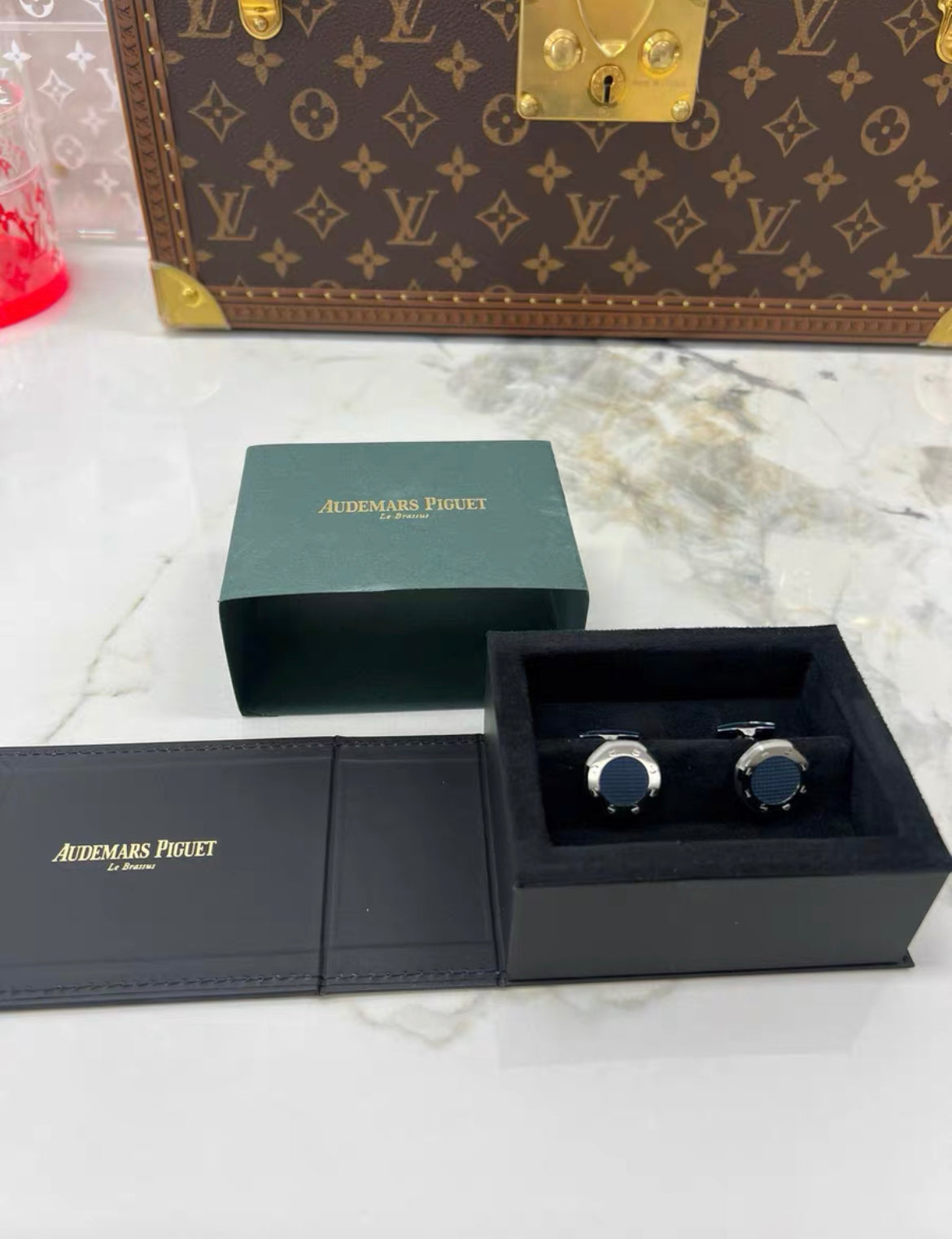 Elevate any outfit with the sophisticated Audemars Piguet Blue Royal Oak Cufflinks. Made with high-quality stainless steel, these cufflinks feature a unique octagonal shape, sleek satin-brushed and polished surfaces, and the iconic "Tapisserie" dial pattern in blue. Complete with the distinctive AP logo, these cufflinks are a must-have for any stylish and refined individual. A perfect gift for him!