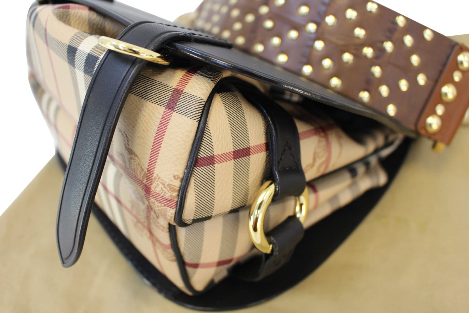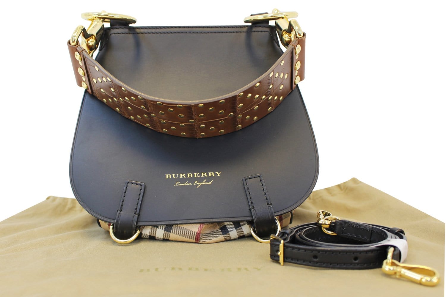BURBERRY Haymarket Check and Alligator Leather Bridle Bag