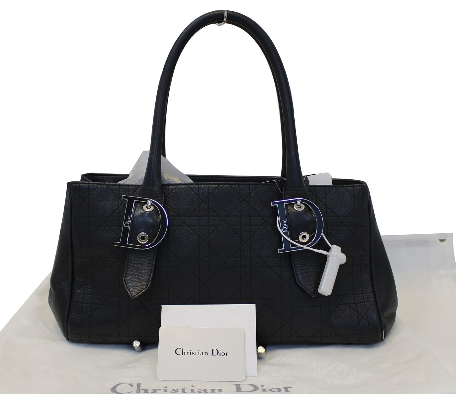 CHRISTIAN DIOR Black Leather Cannage Medium Tote Bag