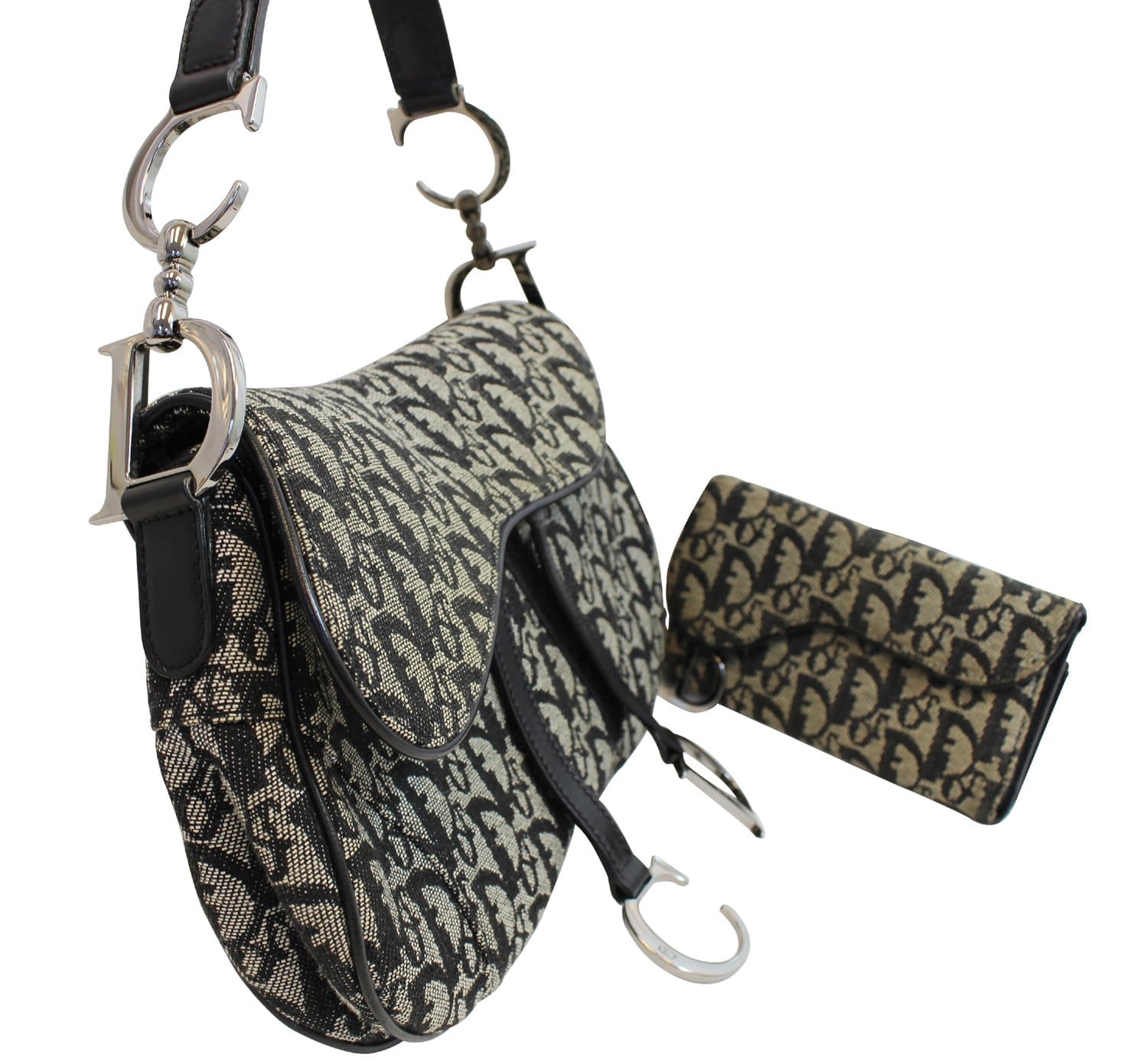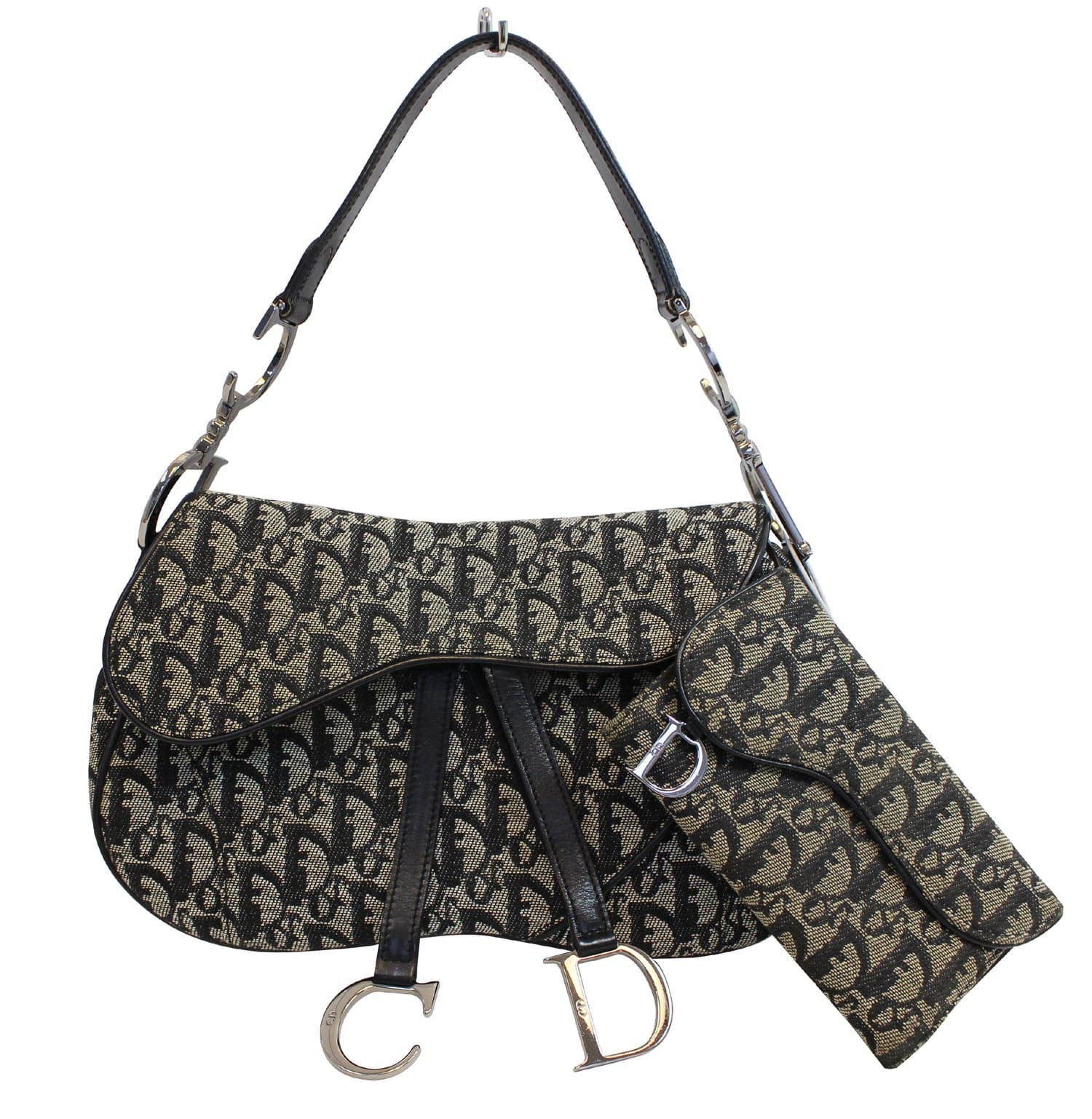 CHRISTIAN DIOR Denim Logo Double Saddle Bag with Pouch