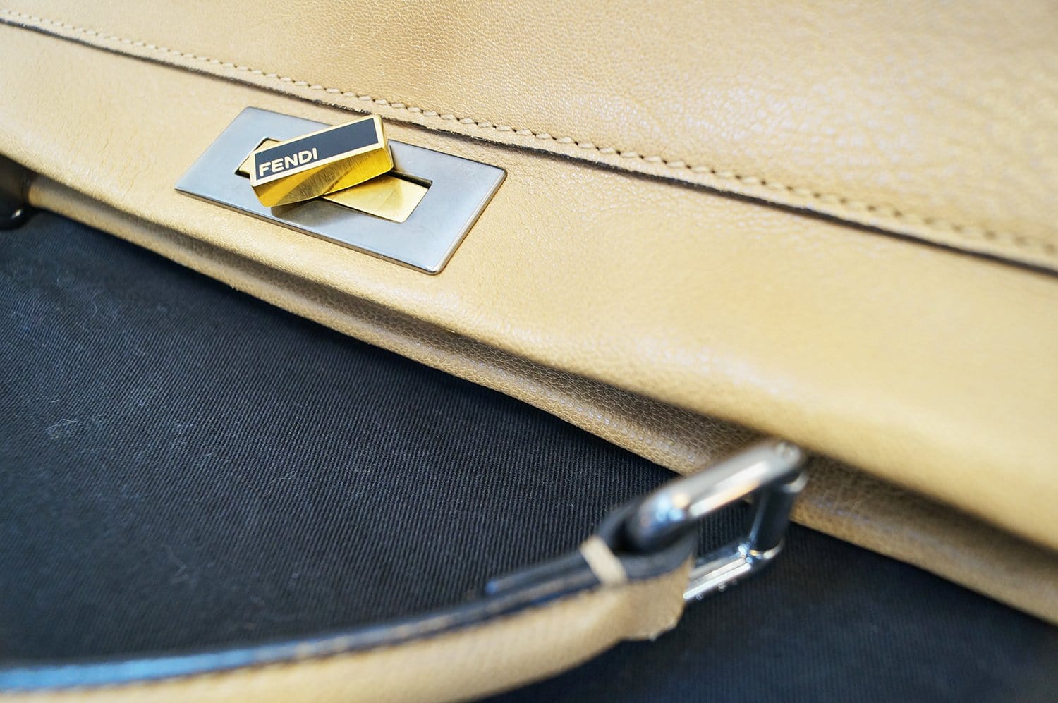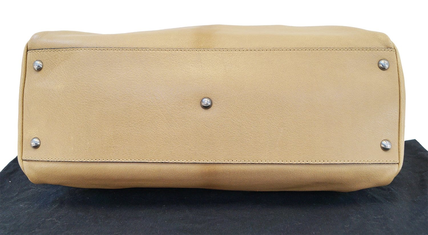 Don't miss out on your opportunity to own this gorgeous Fendi Beige Ombre Leather Peekaboo Large Satchel Bag. It features soft leather, in a gorgeous beige color with a ombre stripe going down the center on each side.