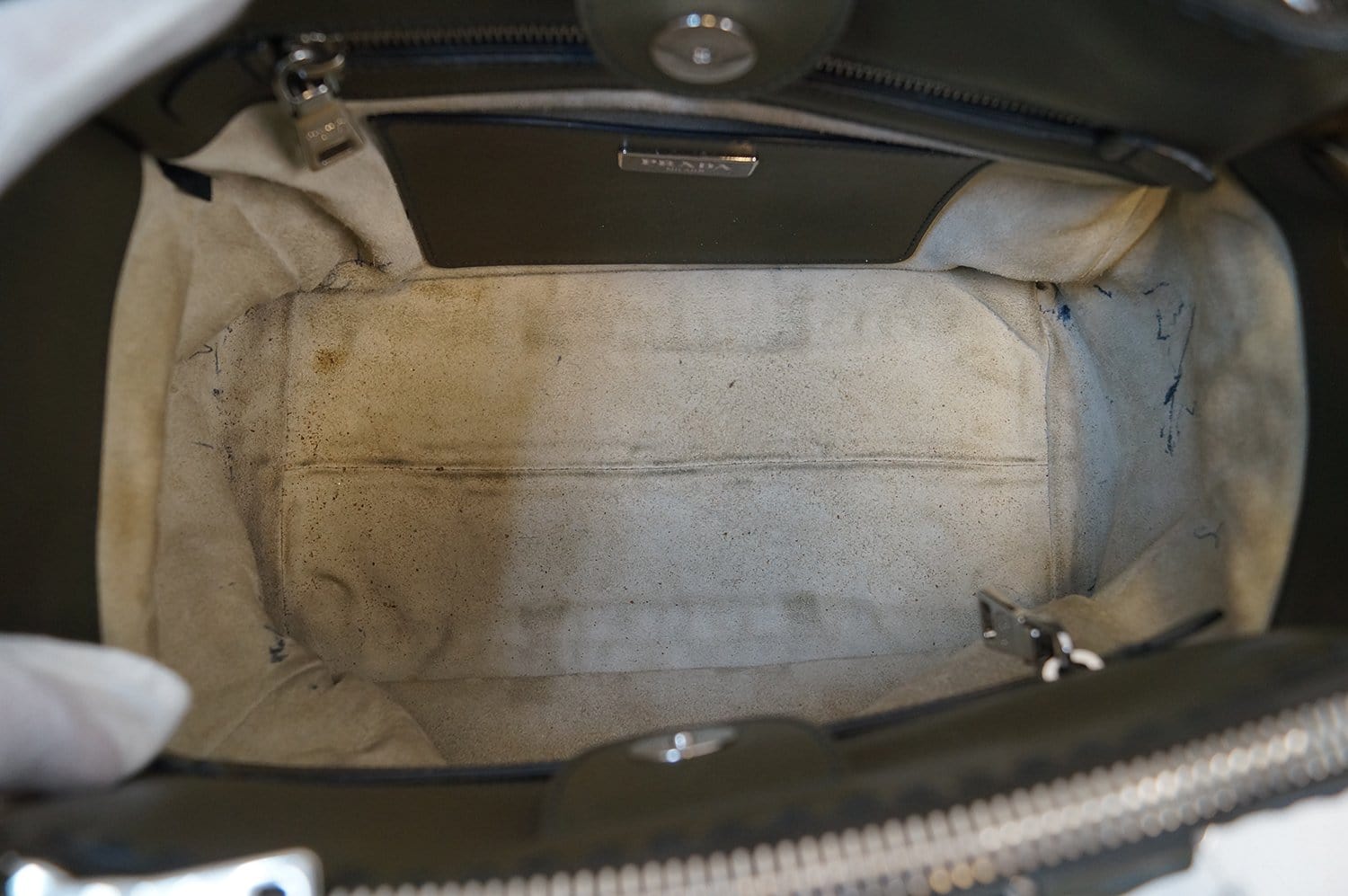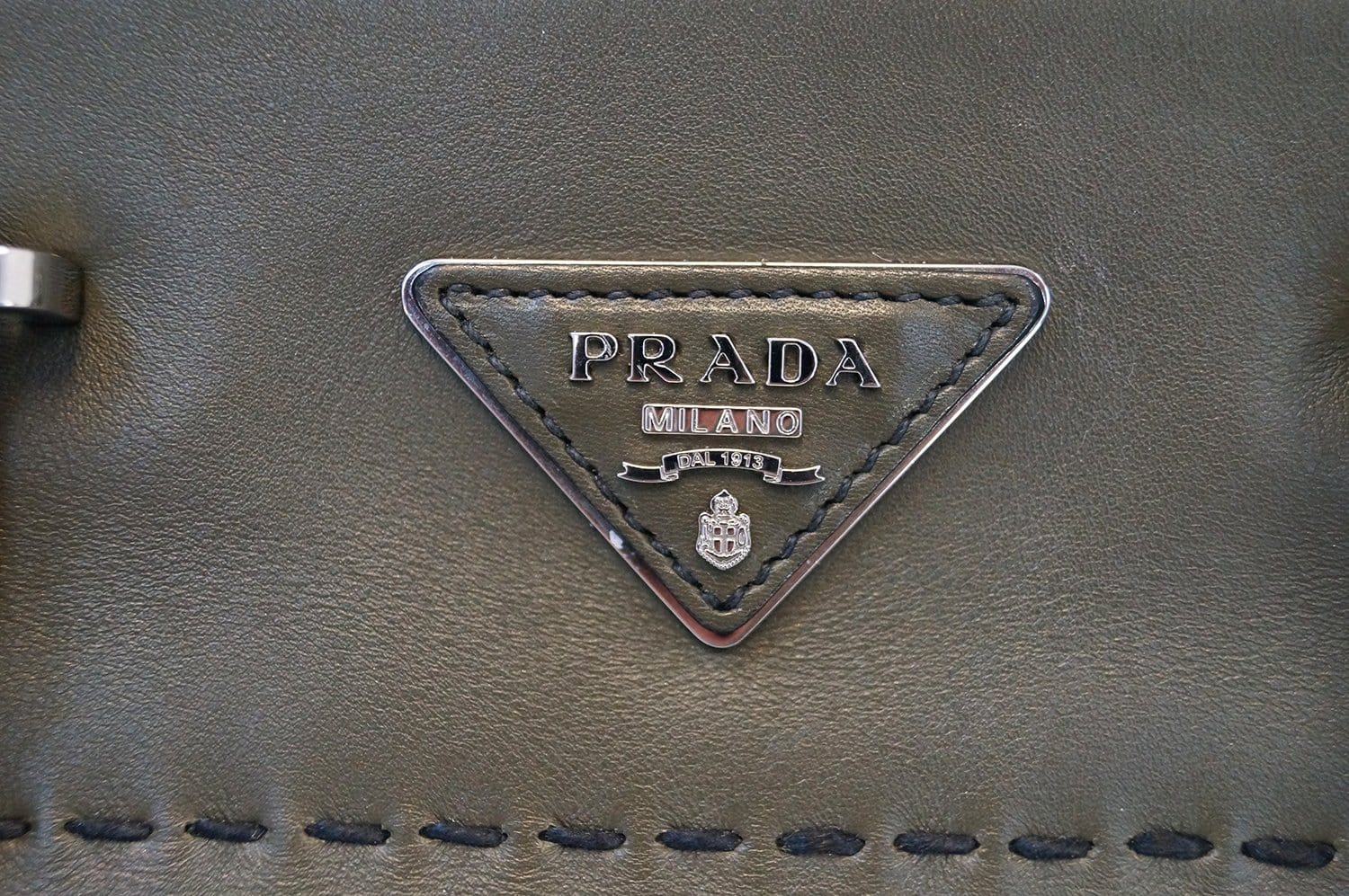 PRADA City Calf Leather Medium Topstitched Twin-Pocket Tote Bag