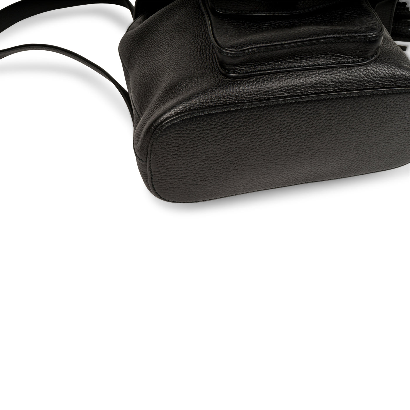 - Drawstring closure with leather tassels