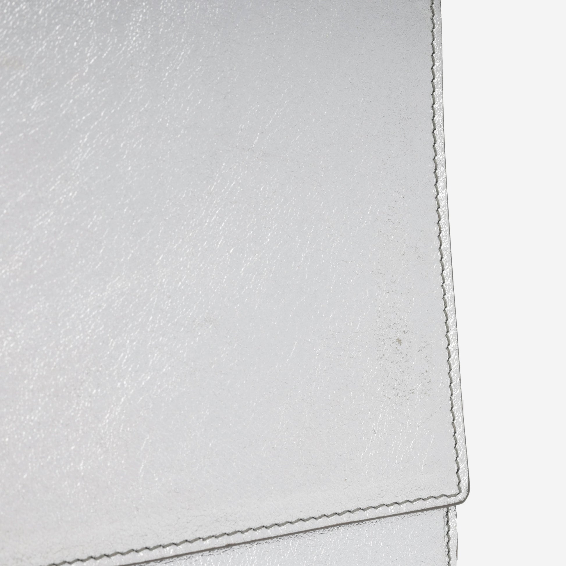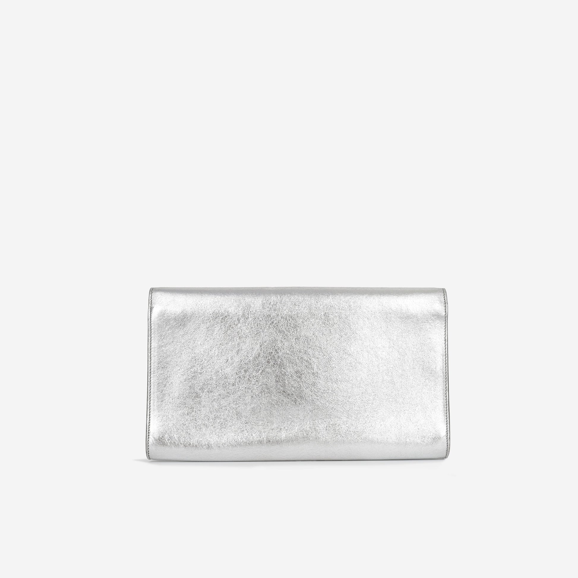Introducing the Belle De Jour Wallet Clutch, Saint Laurent, crafted from silver crumpled calfskin leather. This elegant accessory combines sophistication with practicality, featuring a compact design perfect for carrying essentials. With its timeless appeal and iconic YSL logo, the Belle De Jour adds a touch of glamour to any ensemble, making it a must-have for fashion-forward individuals.