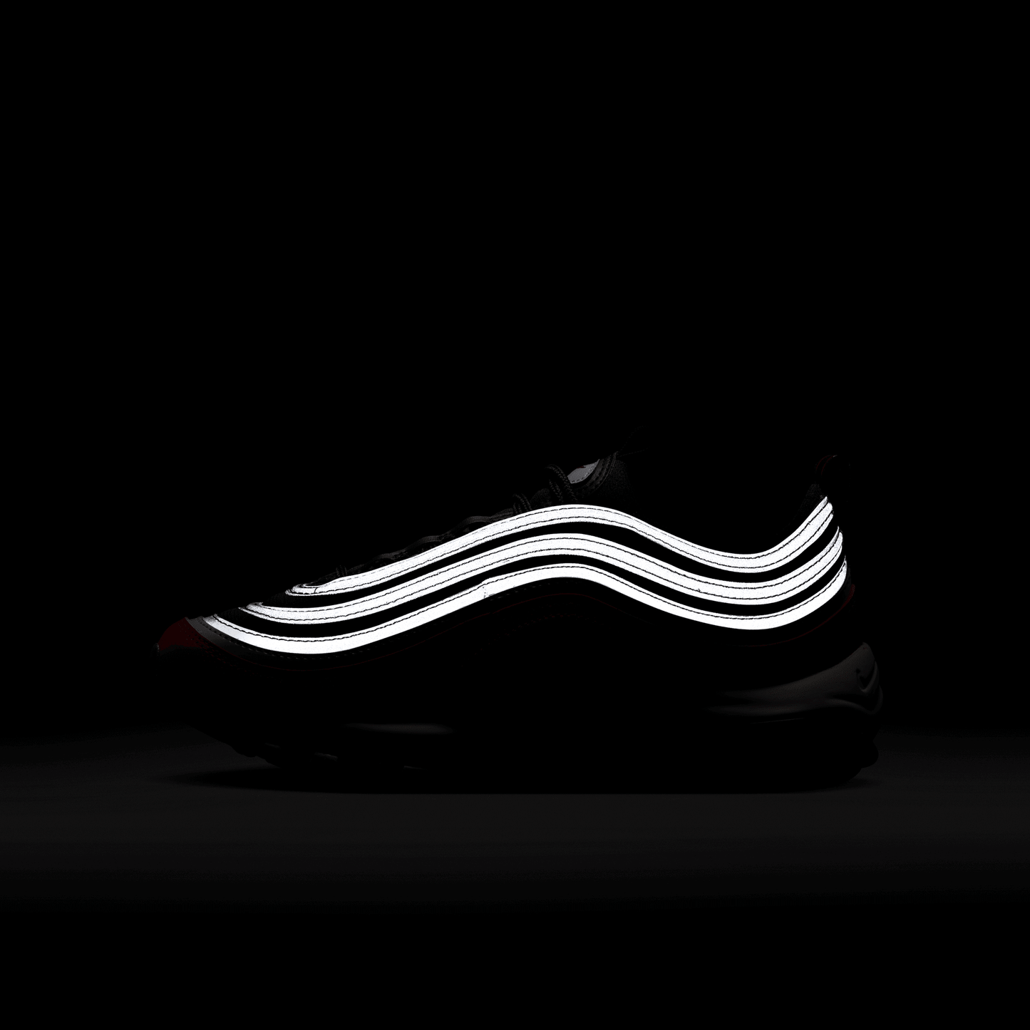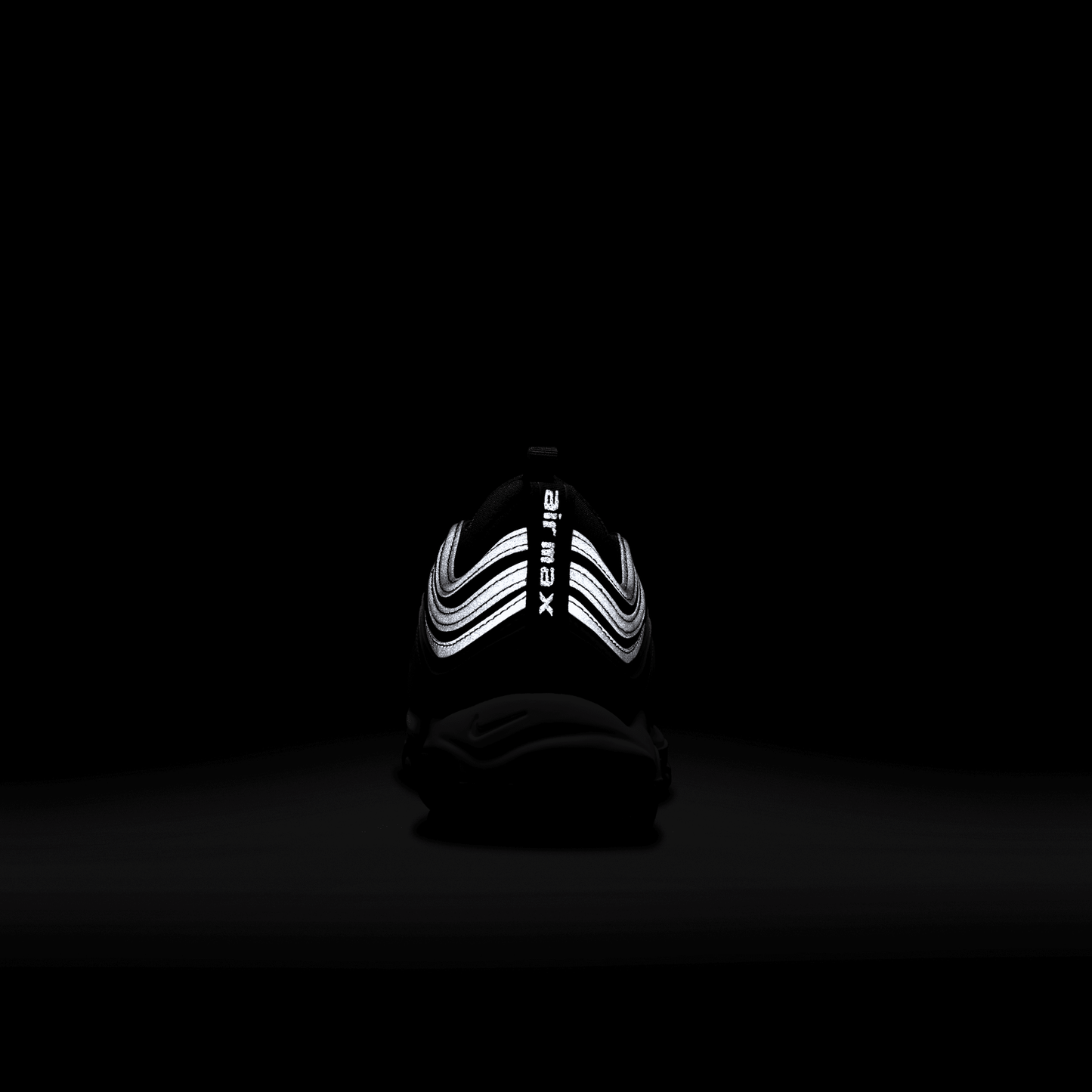 We used our imaginations to rethink how an Air Max 97 could feel—without changing how it looked. Made with your feet in mind, the outsole is more flexible than previous editions so you can spring like a kangaroo and sprint like a cheetah. We also swapped out the layers of stiff materials around the foot with a soft fabric and piping to create a layered look. It's time to move!