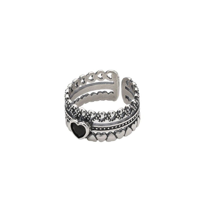 Add a unique twist to your outfit with this super cute Black Heart Ring. Finish off the look with the silver accent ring, perfect for any occasion.