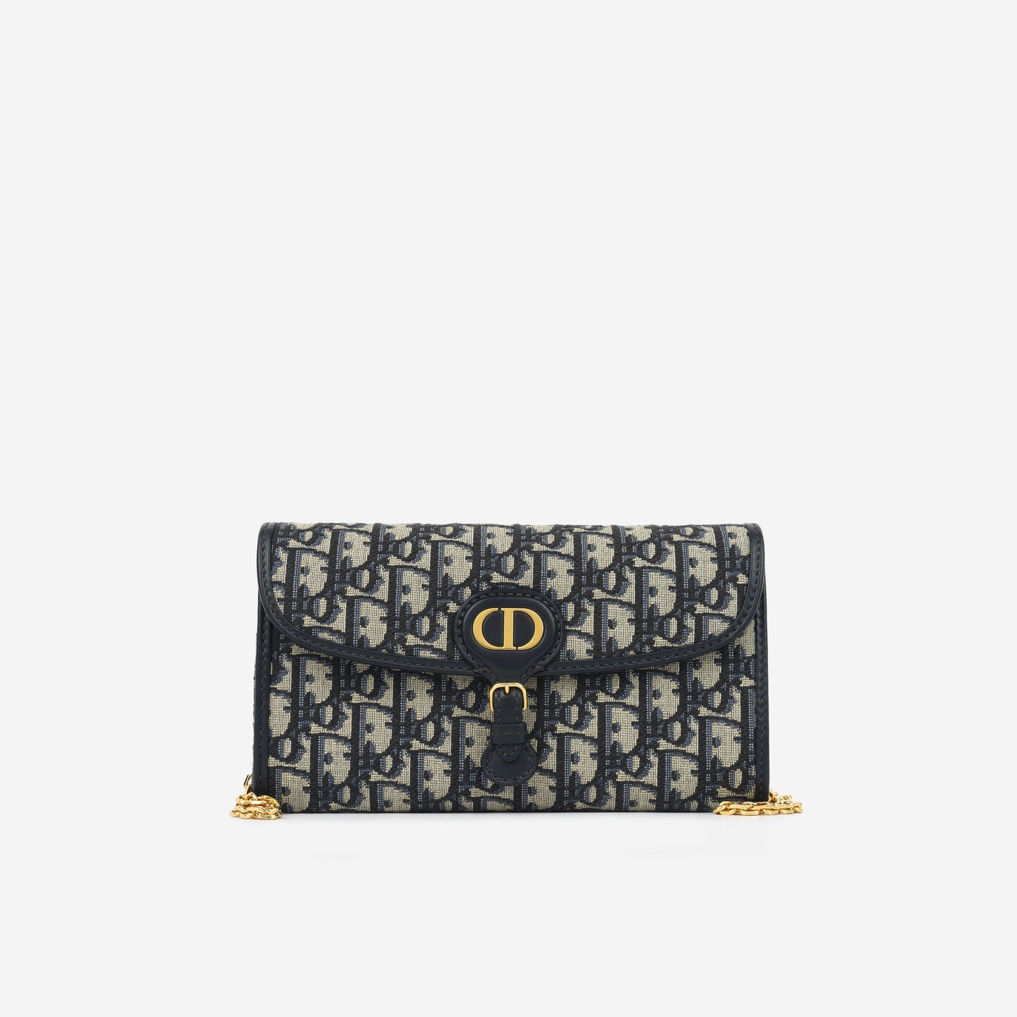 Crafted in blue Dior Oblique jacquard and is both modern and elegant. Enhanced by a flap adorned with a decorative CD buckle, it features a practical compartment that includes a small, removable zipped pouch. Thanks to its removable chain, the East-West pouch can be worn over the shoulder, crossbody, or carried by hand.
