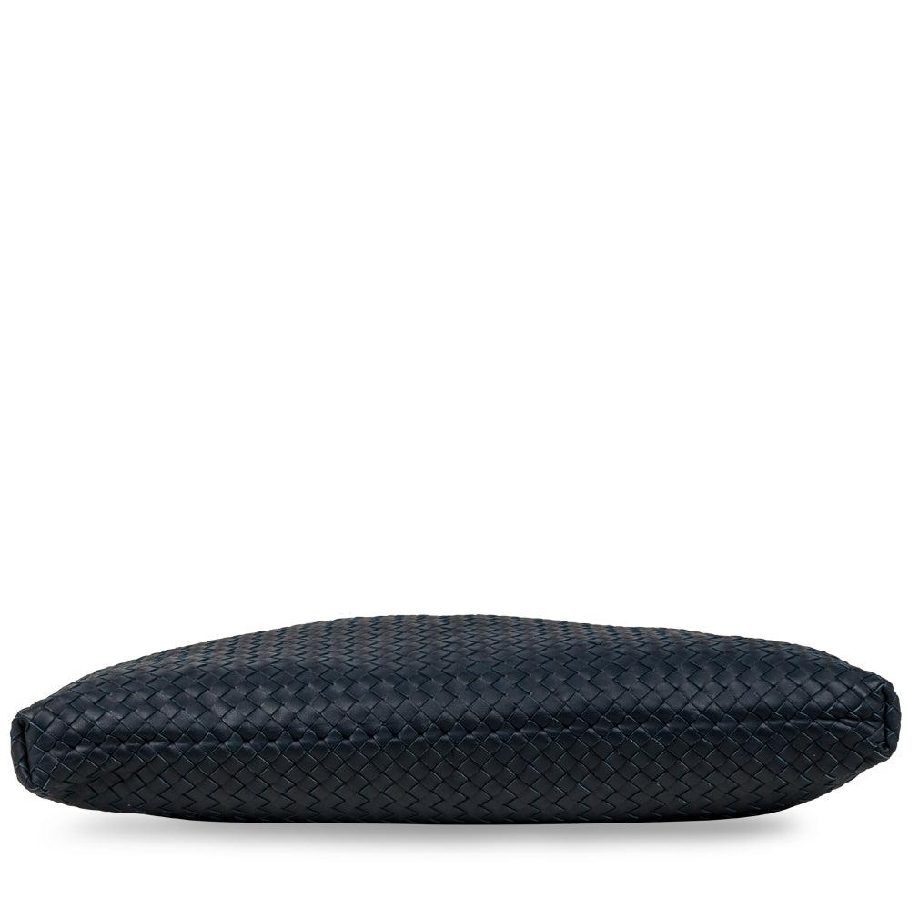 Bottega Veneta presents their large, carryall luggage bag. Carefully crafted from smooth, blue nappa leather with their signature woven, intrecciato design, this bag is the perfect work bag for anyone looking to travel in style. Fit all your short-holiday essentials as well as your work essentials. With two top handles and a removable strap, you can easily carry this briefcase in style. With effortless sophistication and tasteful discreetness, this bag offers the best of both worlds by combining luxury and practicality.