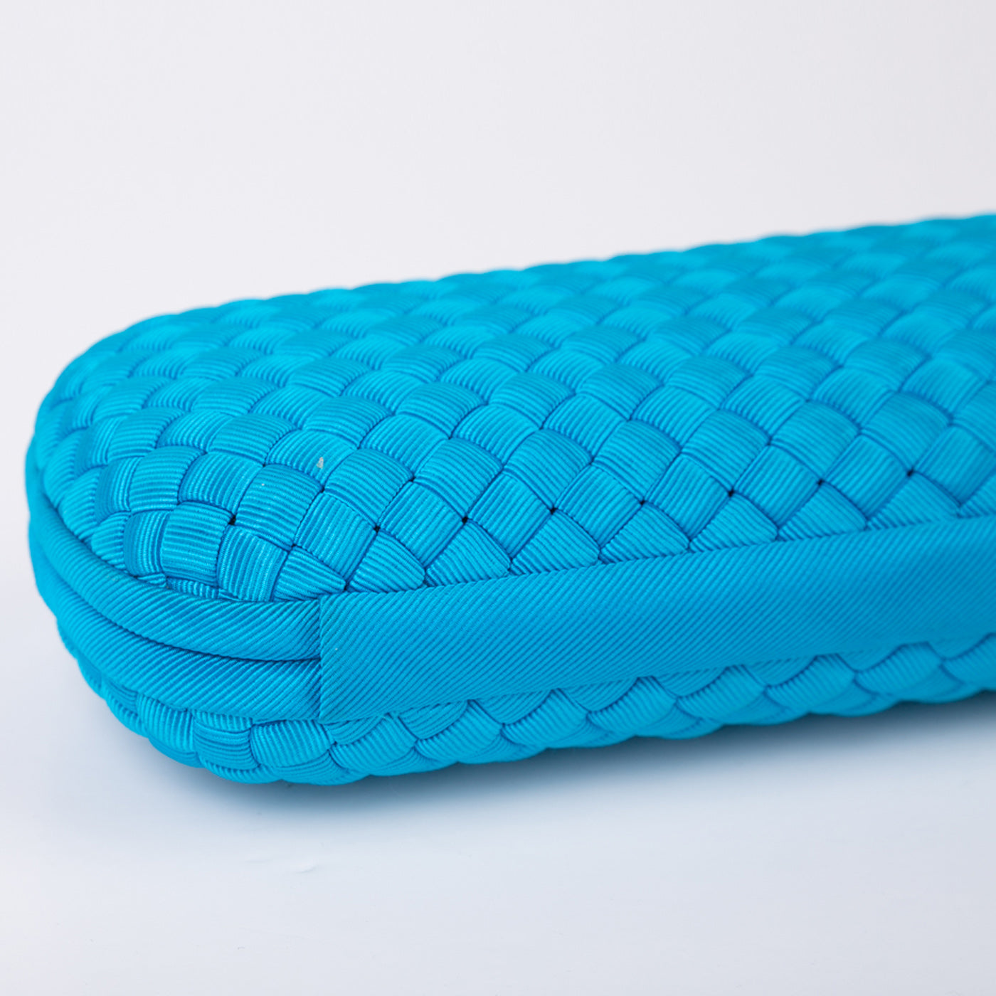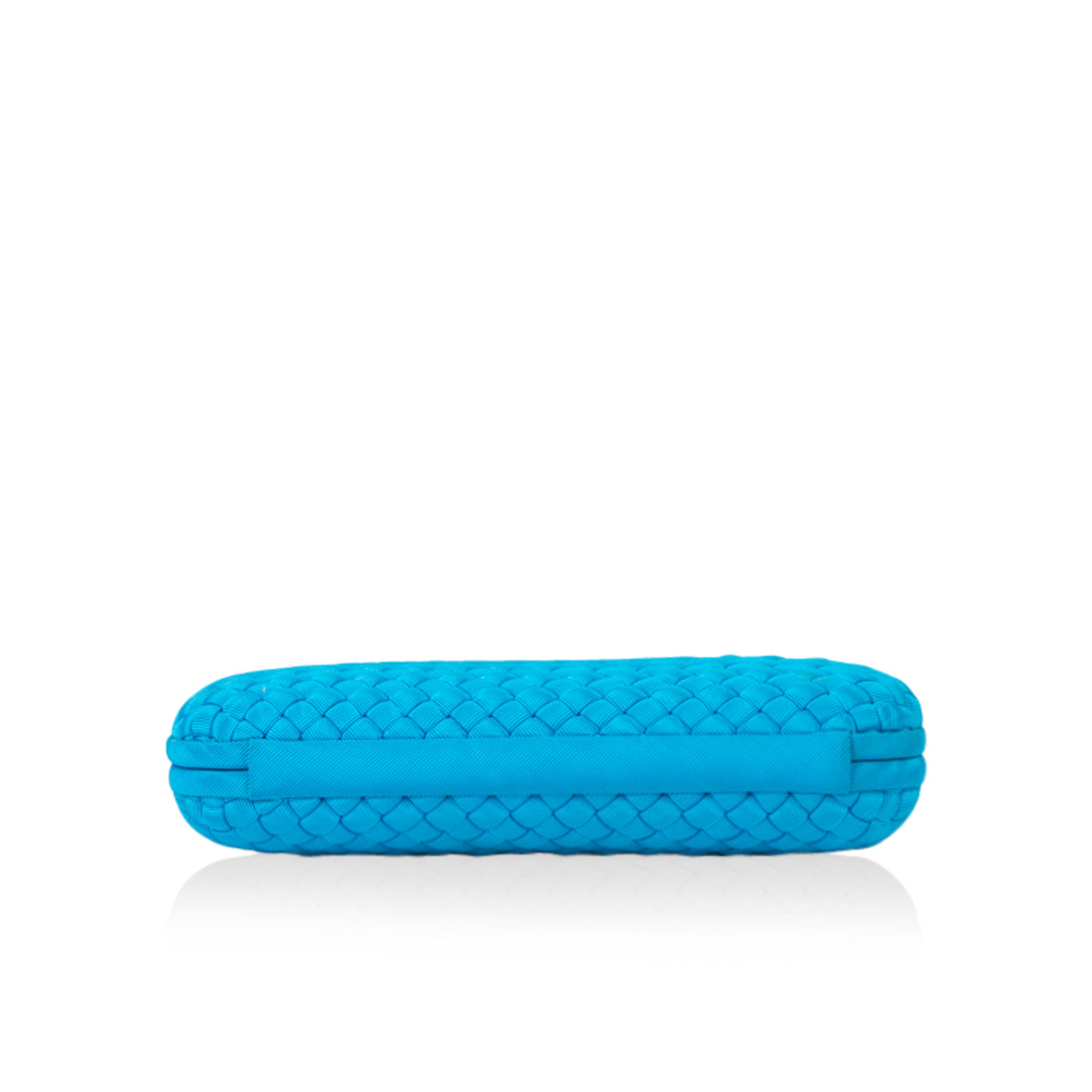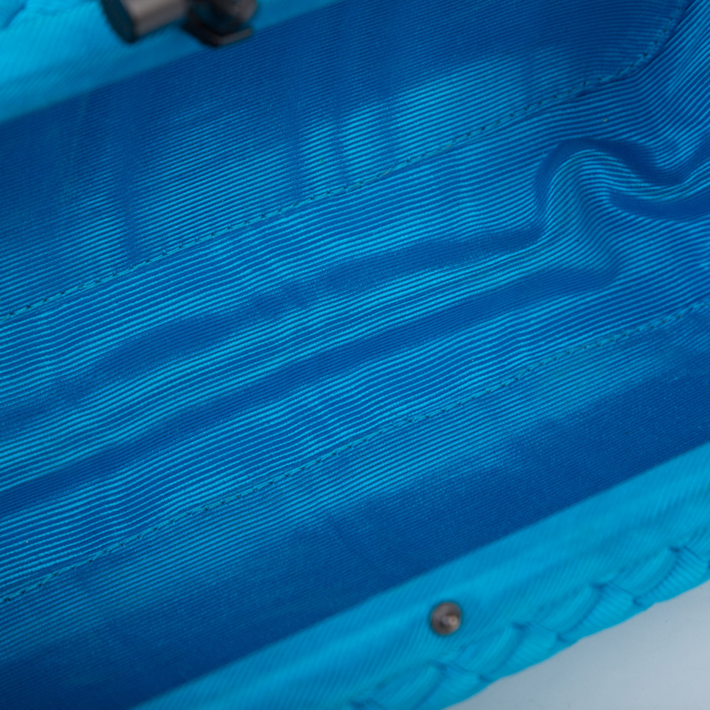 The Bottega Veneta Knot clutch bag is a compact, luxurious bag that is perfect for the evening. Crafted from bright blue Faille fabric with the brand's signature intrecciato design, the delicate and elegant design works perfectly with the rounded, feminine nature of the clutch bag. It is finished with the signature knot fastening, embossed with the Bottega Veneta logo. Dress this bag up with anything from a simple cocktail dress to a ball gown for more formal occasions, it's the ideal accessory to compliment any evening attire.