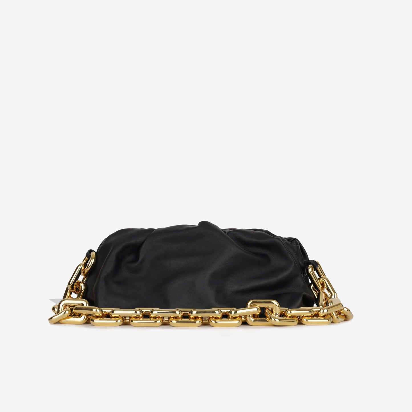 Bottega Veneta presents their beautiful pouch bag, with an ultra-chic and trendy twist featuring the chunky gold square chain strap. Carefully crafted in Nappa leather, in a soft, smooth silhouette, this bag offers practicality as well as style. Fit all your every day essentials inside the large, spacious interior.
