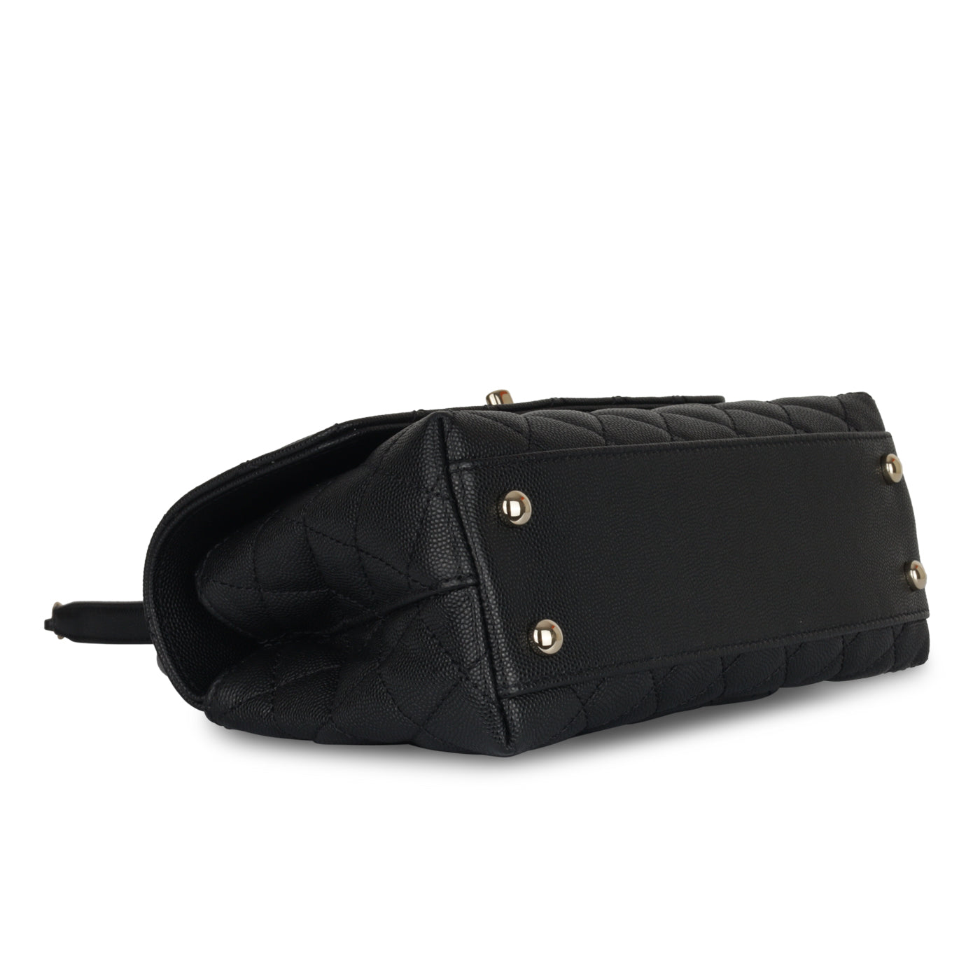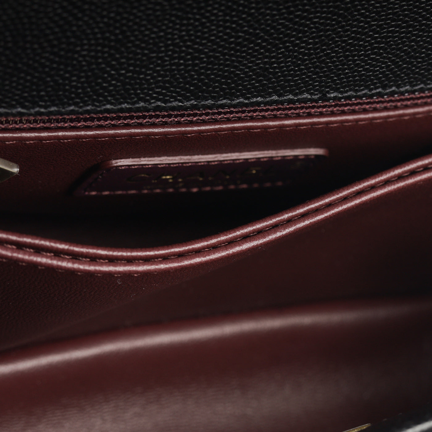 The Mini Coco Handle, crafted from a black caviar leather, is the smallest of the collection - exuding the perfect mix of practical and stylish. Designed for hand held use or for over-the-shoulder wear with the very convenient removable strap. This Chanel may be small but it comes with two compartments and includes two extra pockets. Chic and sweet, this Chanel is a delightful edition to any bag-lovers wardrobe.