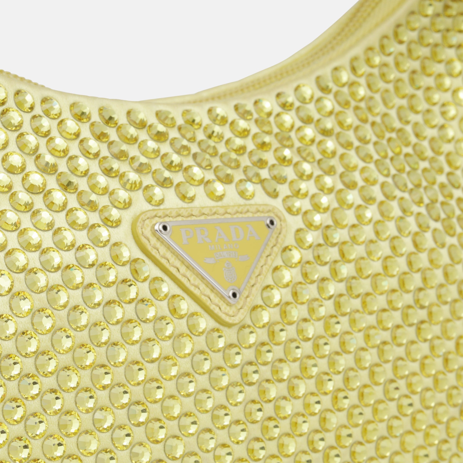 Carefully crafted with yellow satin fabric adorned with crystals, the shoulder bag is one of the coolest bags we’ve seen. Effortlessly chic and a true must-have for any and every women with a love for luxury and hot products. Worn by every fashion enthusiast, influencer and model.
