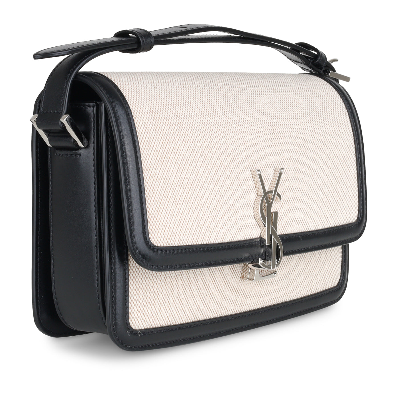 The Solferino Crossbody is a beautiful modern satchel style bag. This piece is particularly unique as it is crafted in Canvas with black leather trims. You can comfortably carry all your daily essentials in style.