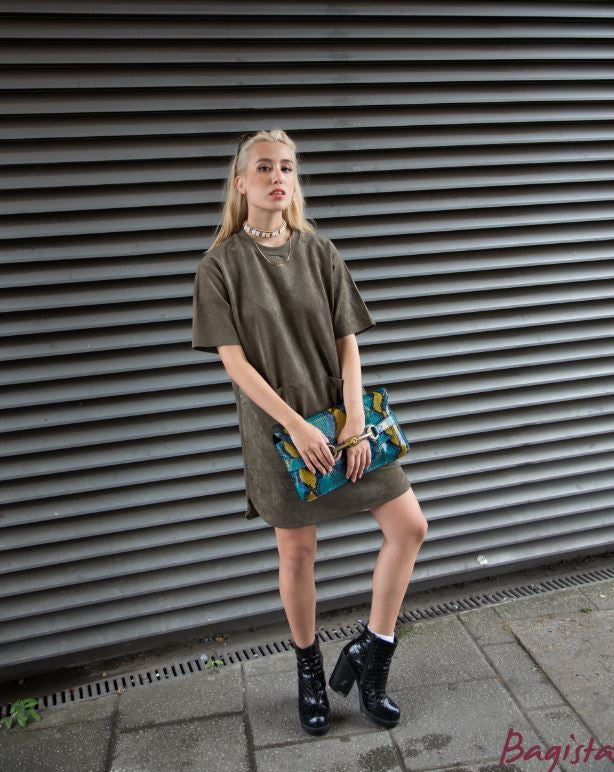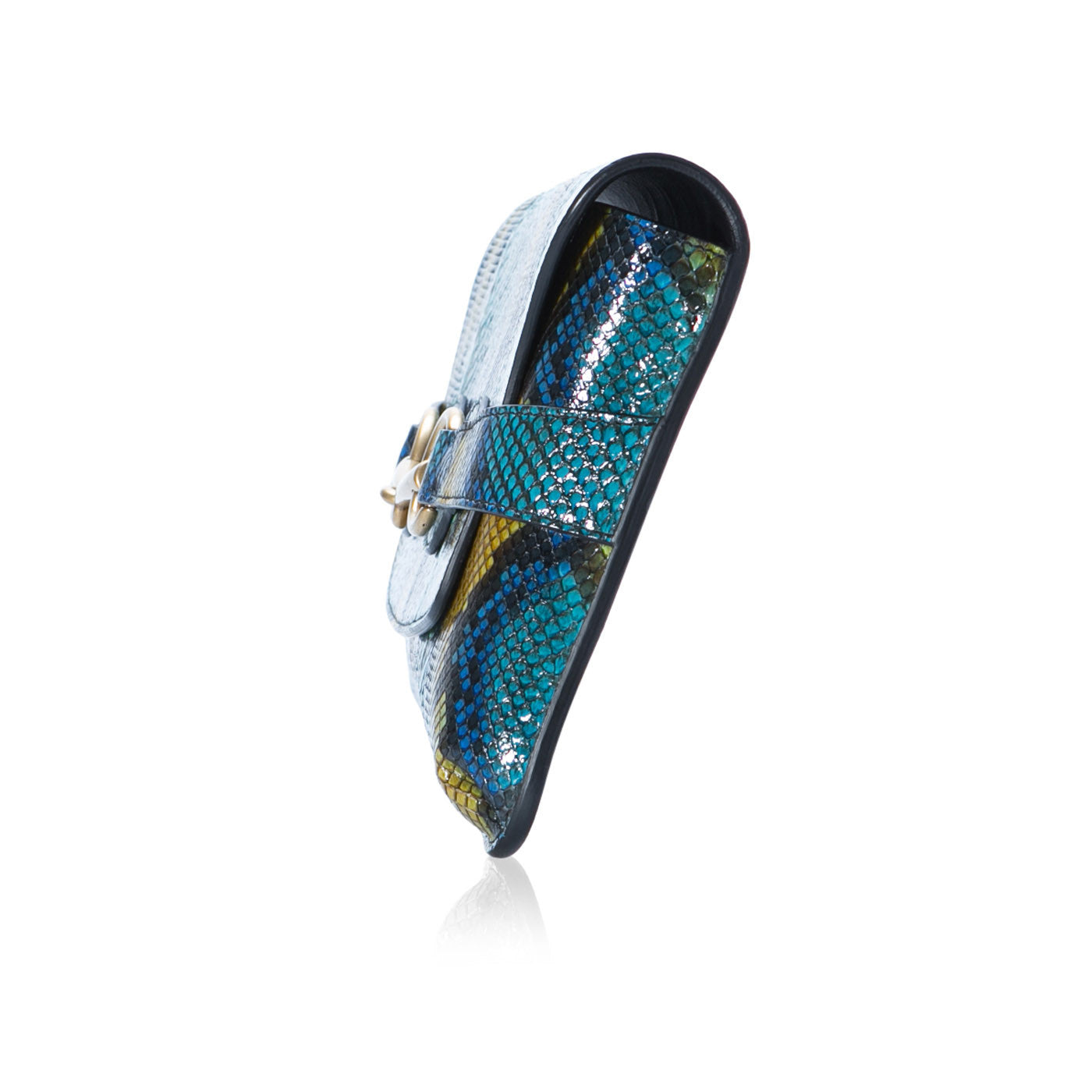 Stand out from the crowd with this exotic and striking multicolour python flap closure clutch from Gucci. This luxurious piece features antique gold hardware, perfect for an evening out.�