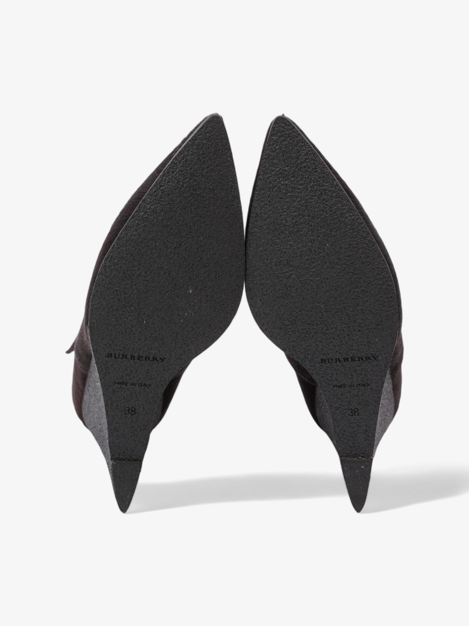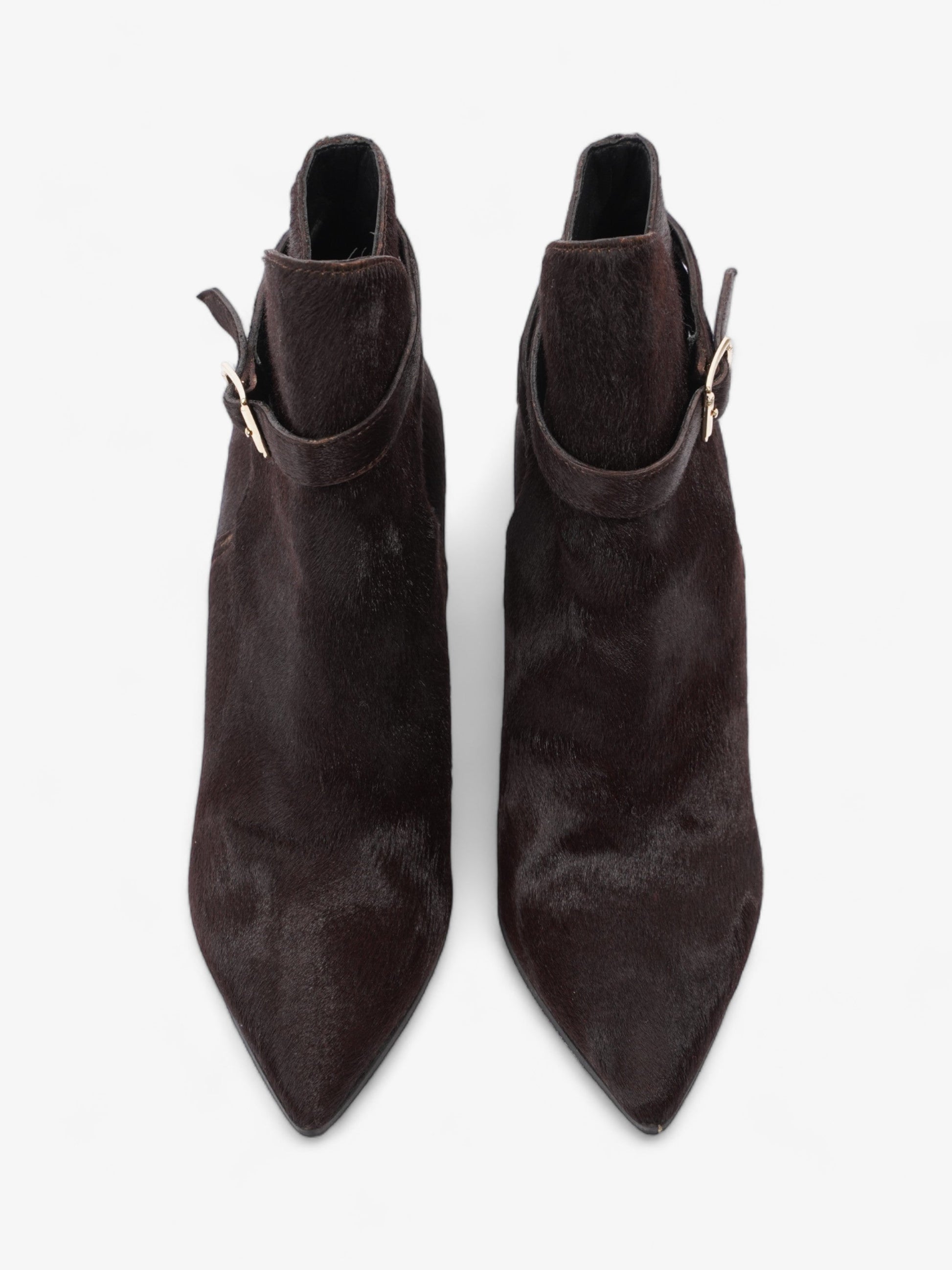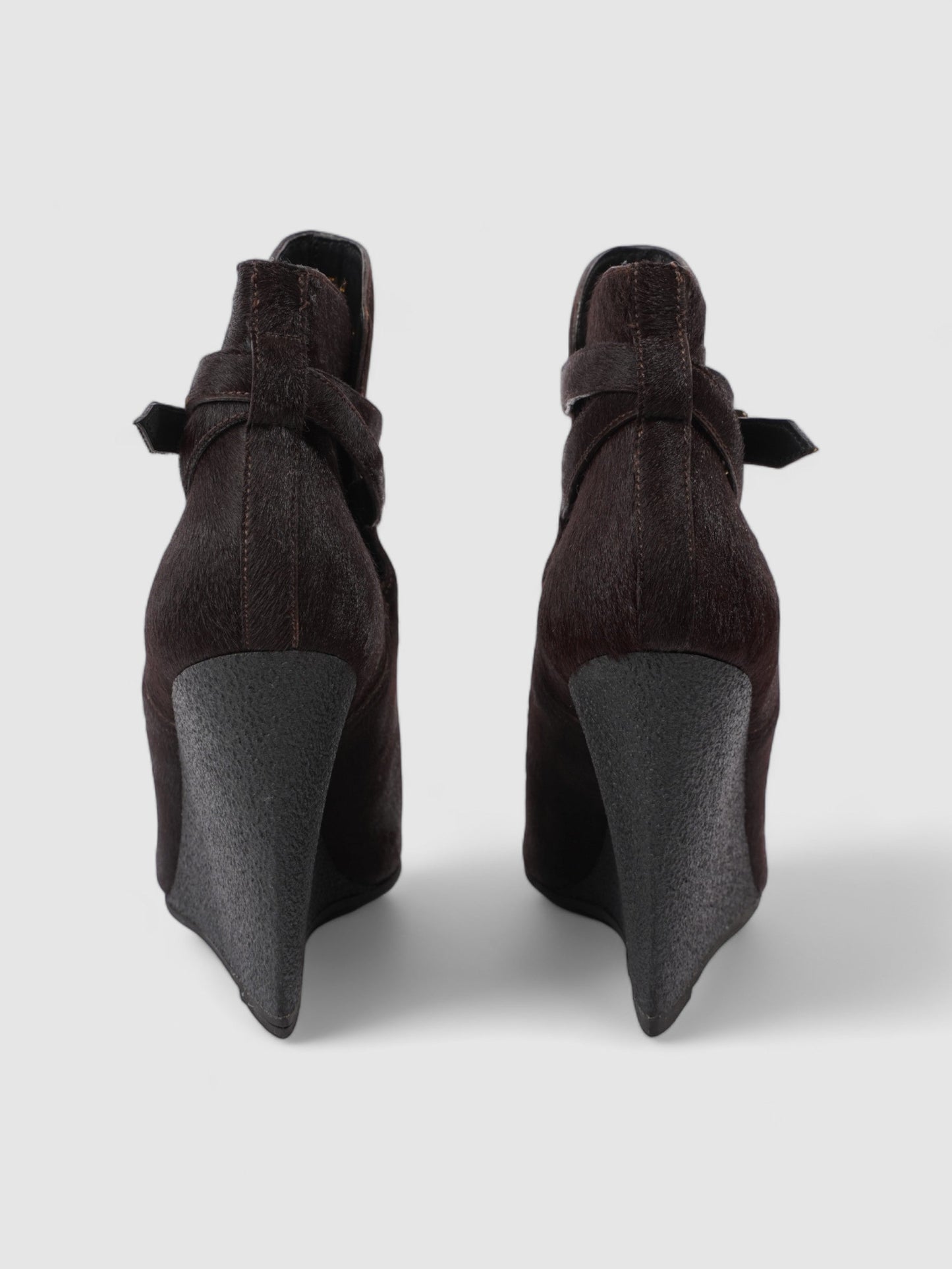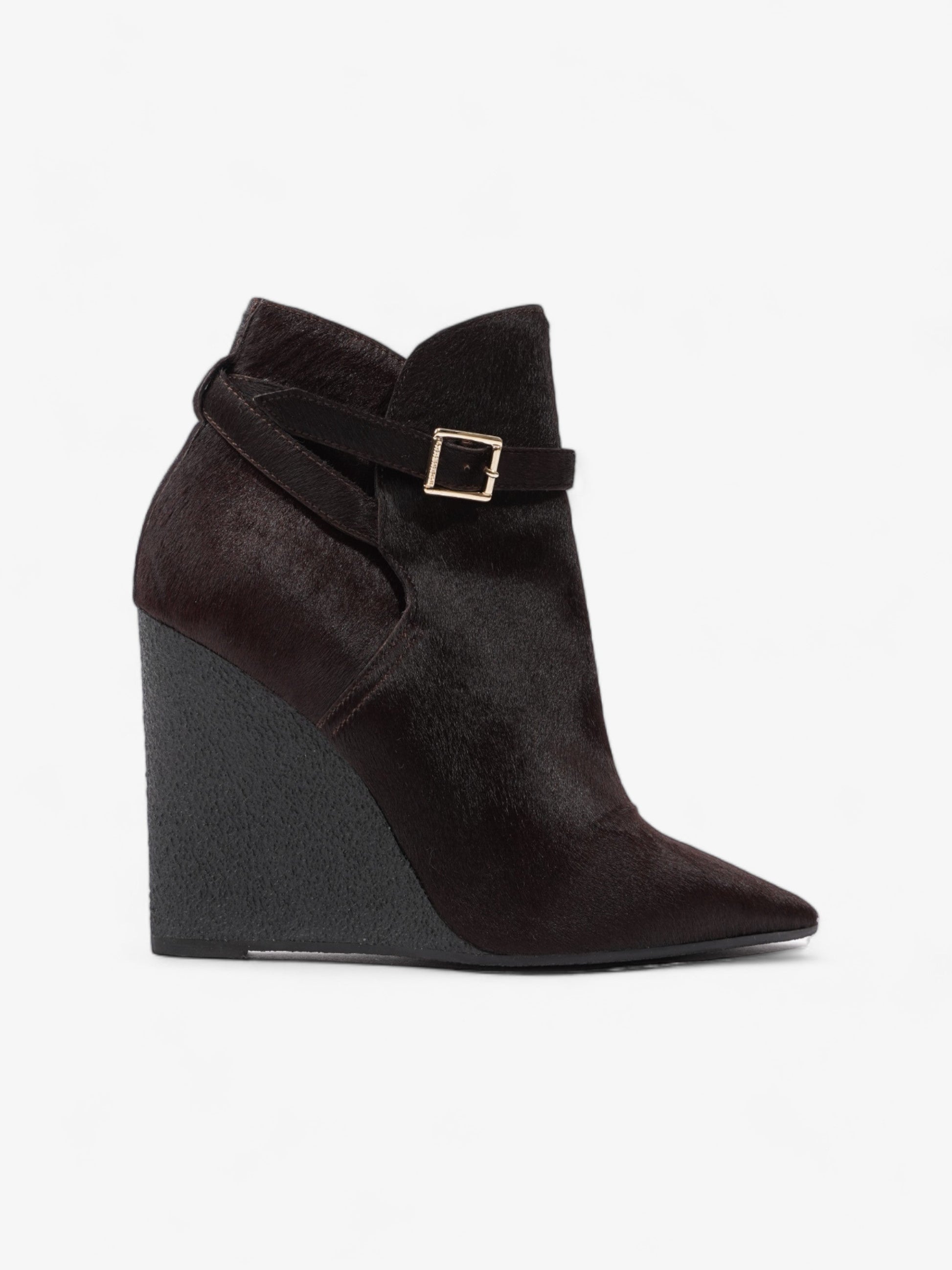 Burberry Buckle Detail Ankle Wedge Boot 110mm Chocolate Brown Calf Hair EU 38 UK 5