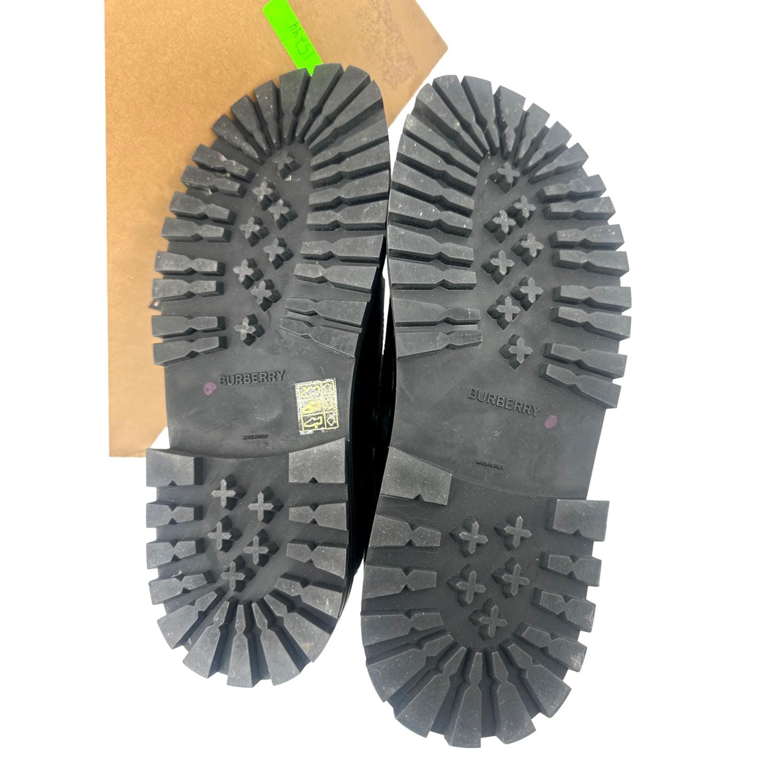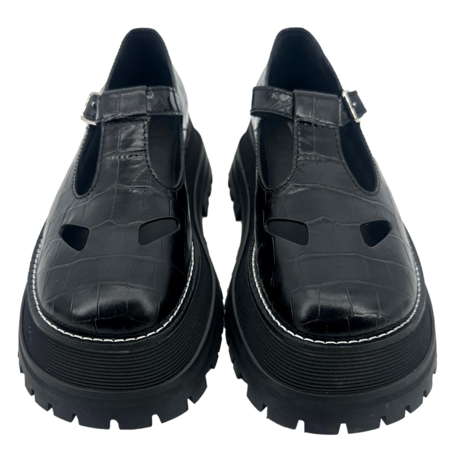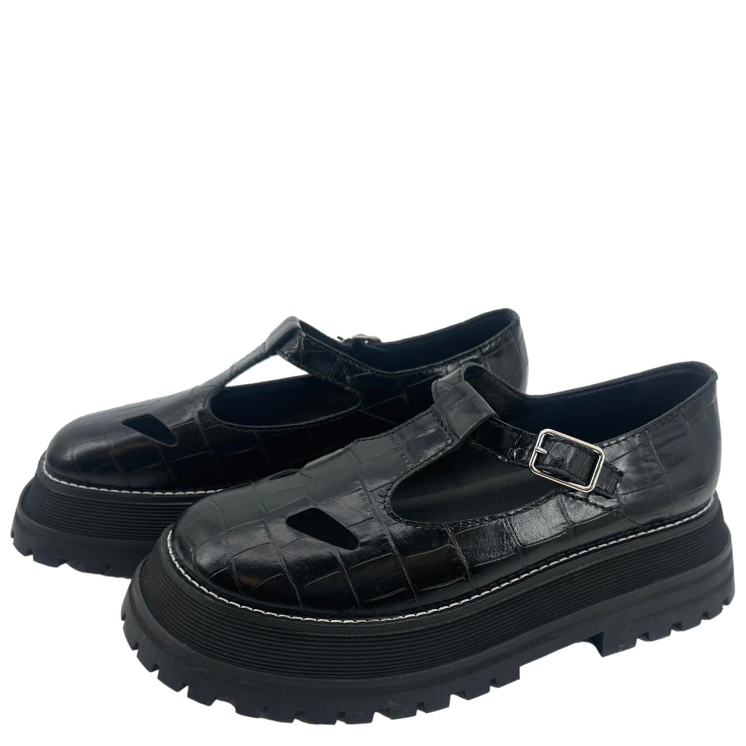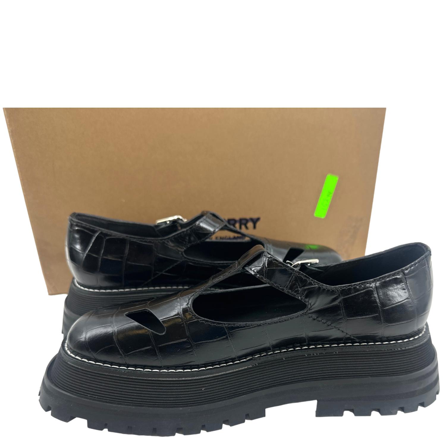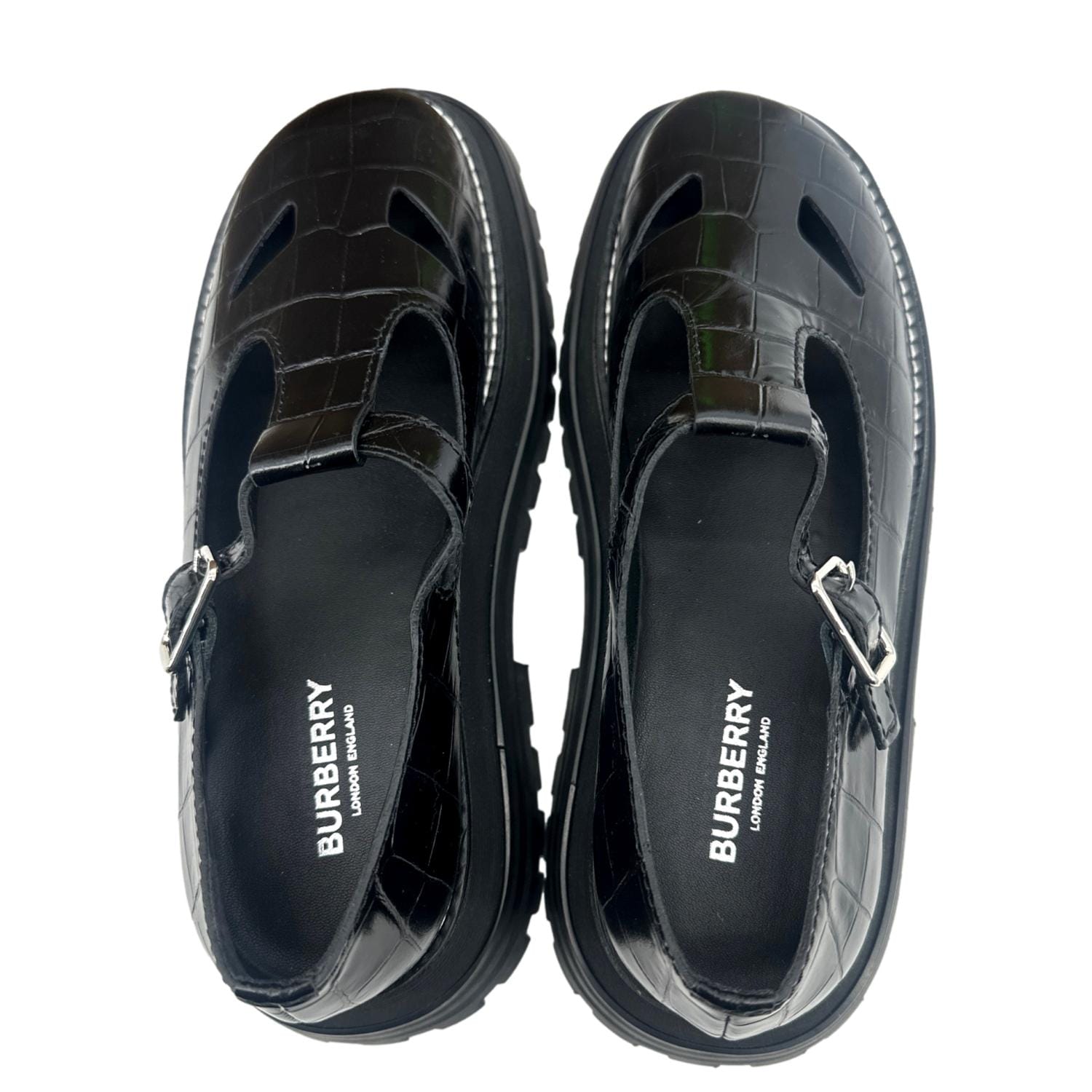 BURBERRY Aldwych T Bar Embossed Leather School Shoes Black