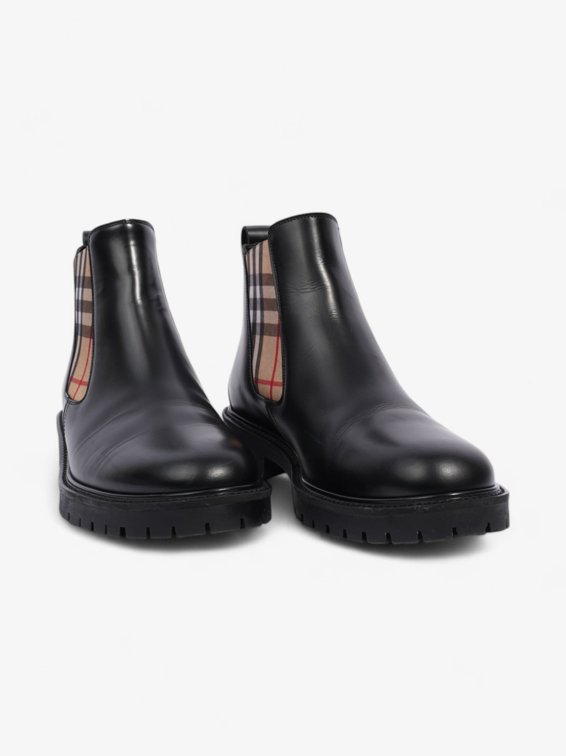 Burberry Allostock Chelsea Boots Black / Beige Checkered Leather EU 41.5 UK 8.5