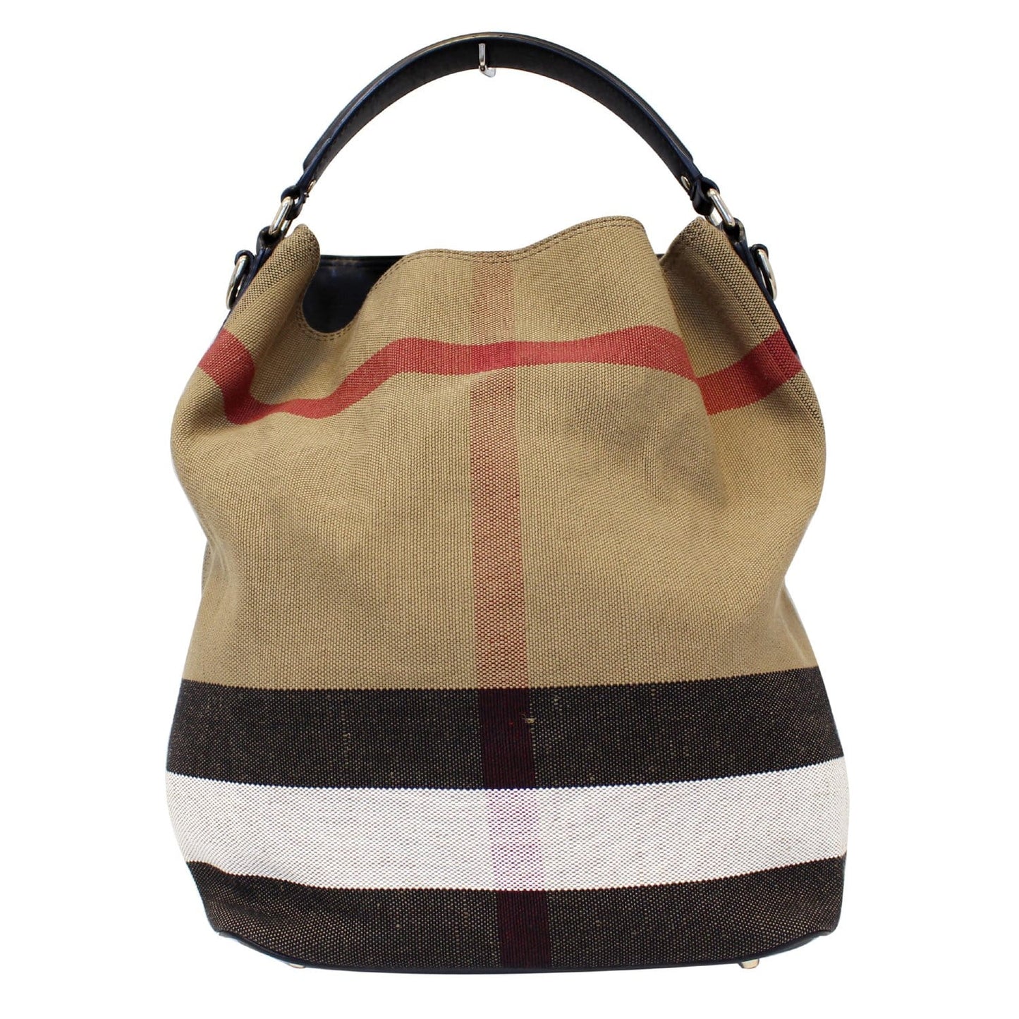 BURBERRY Ashby Medium Check Canvas Hobo Bag