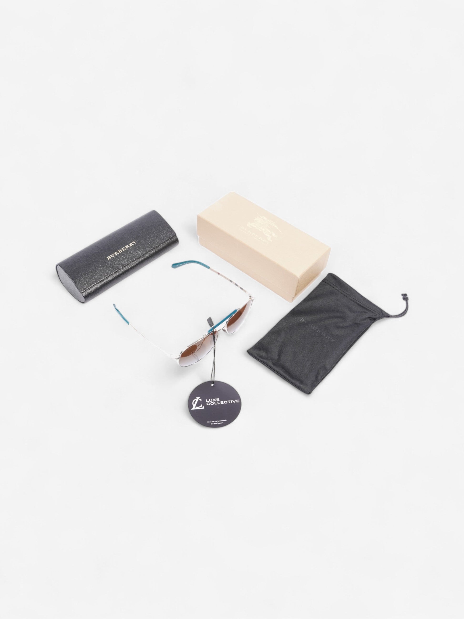 Burberry Aviator Tinted Sunglasses Turquoise / Vintage Check Acetate 145mm