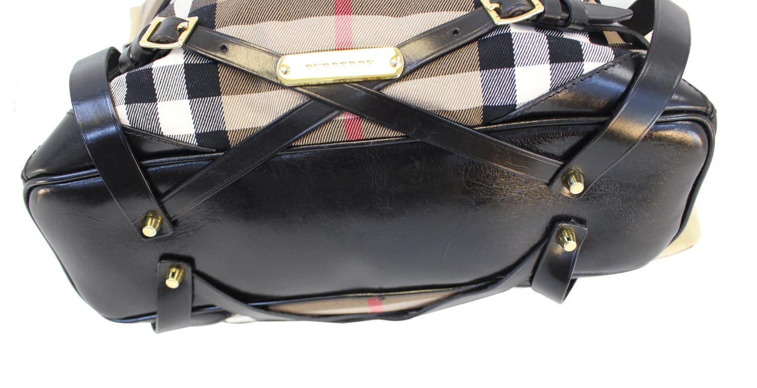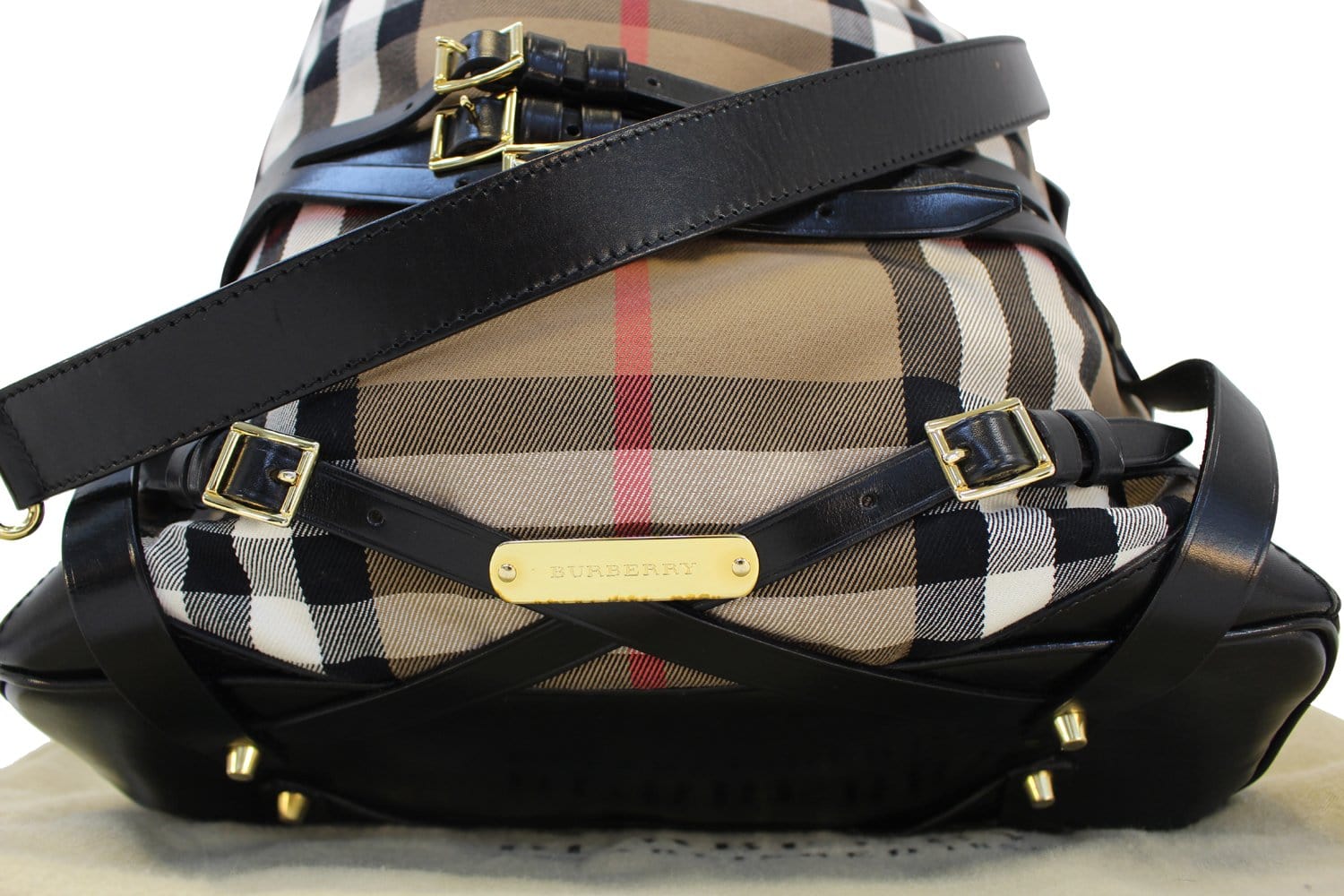 BURBERRY Bag - BURBERRY Nova Check Black Canvas Bridle Hobo Bag