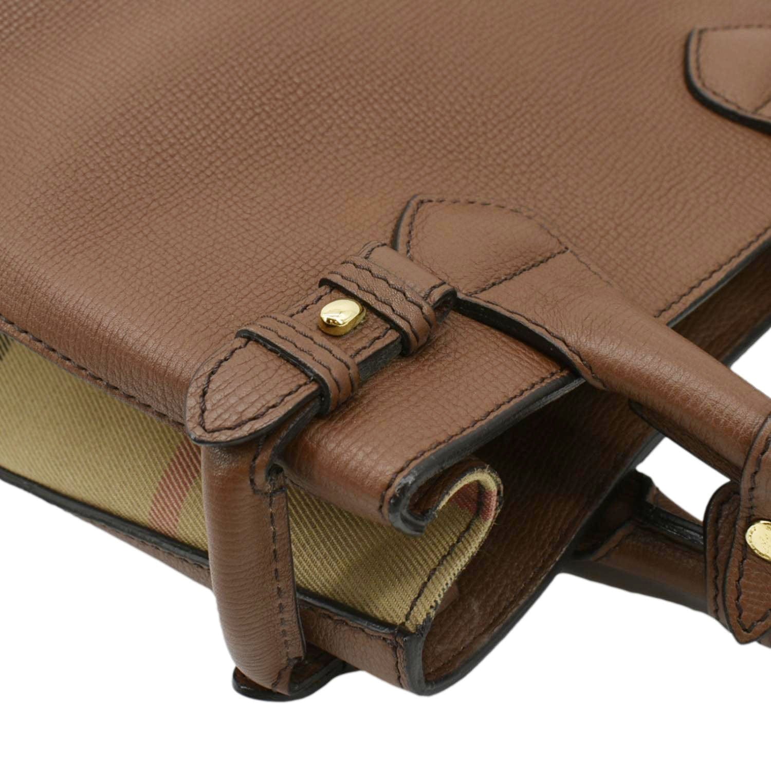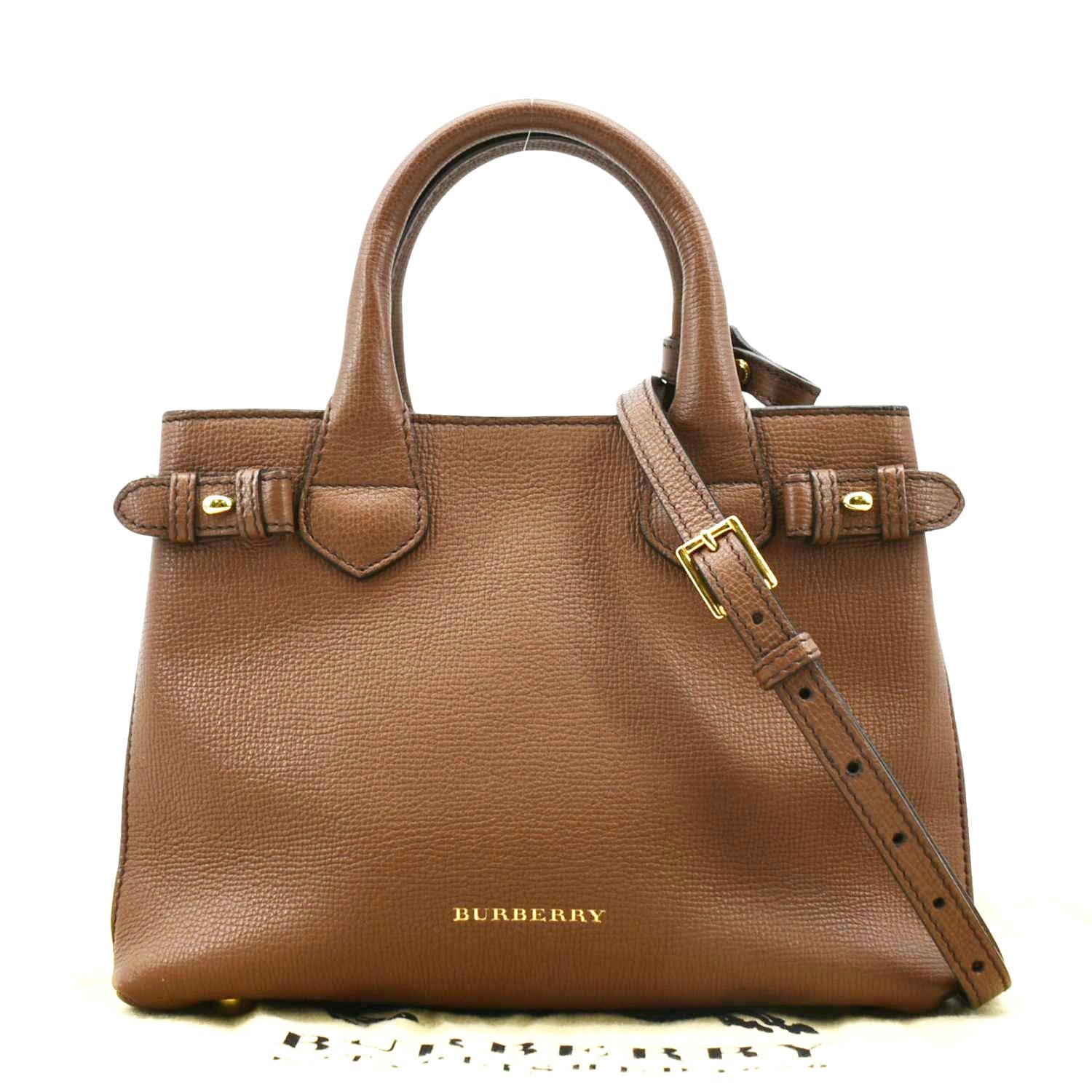 BURBERRY Banner Derby Leather Tote Shoulder Bag Tan