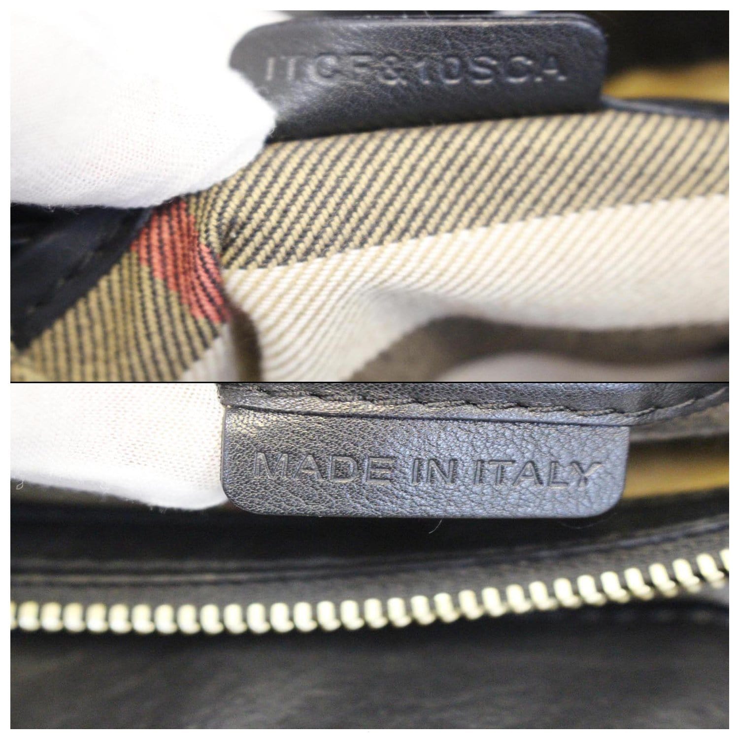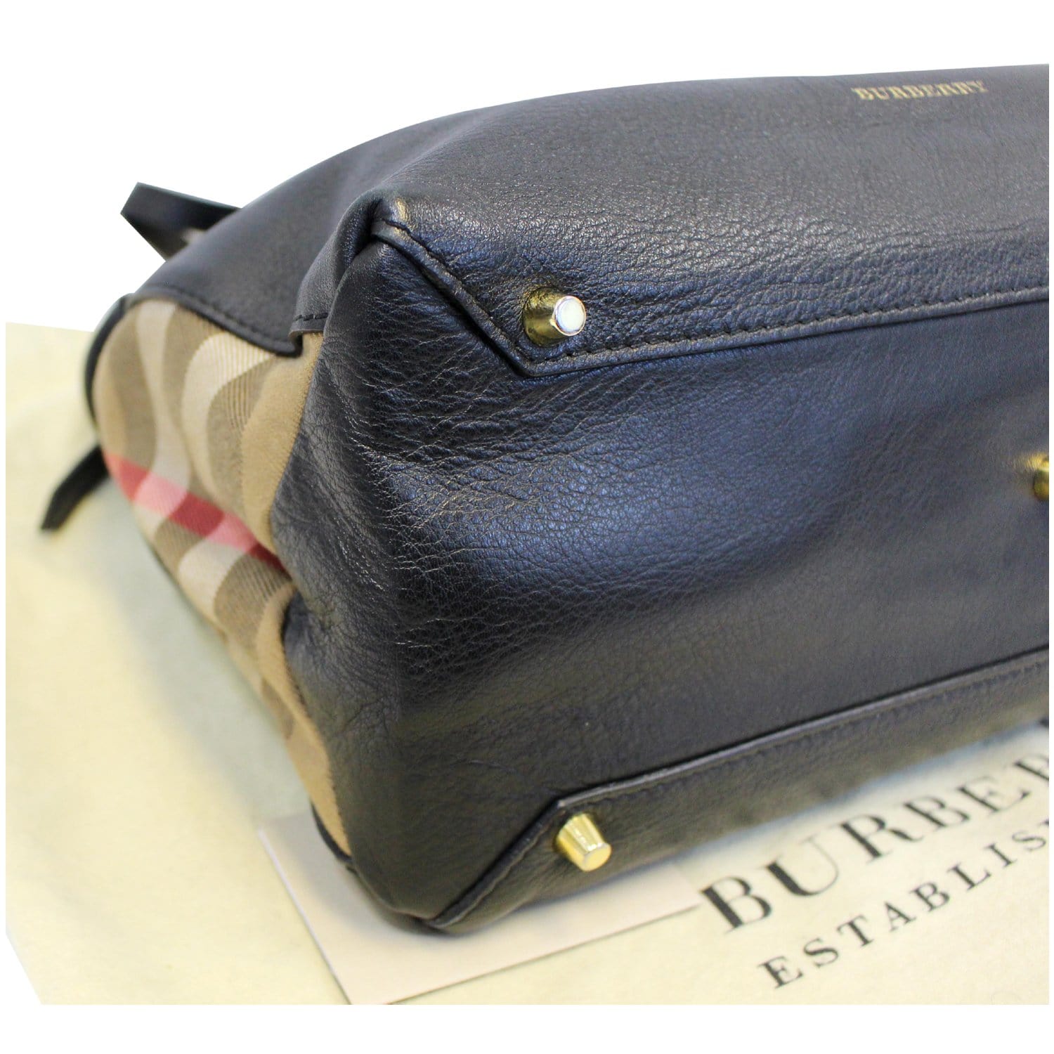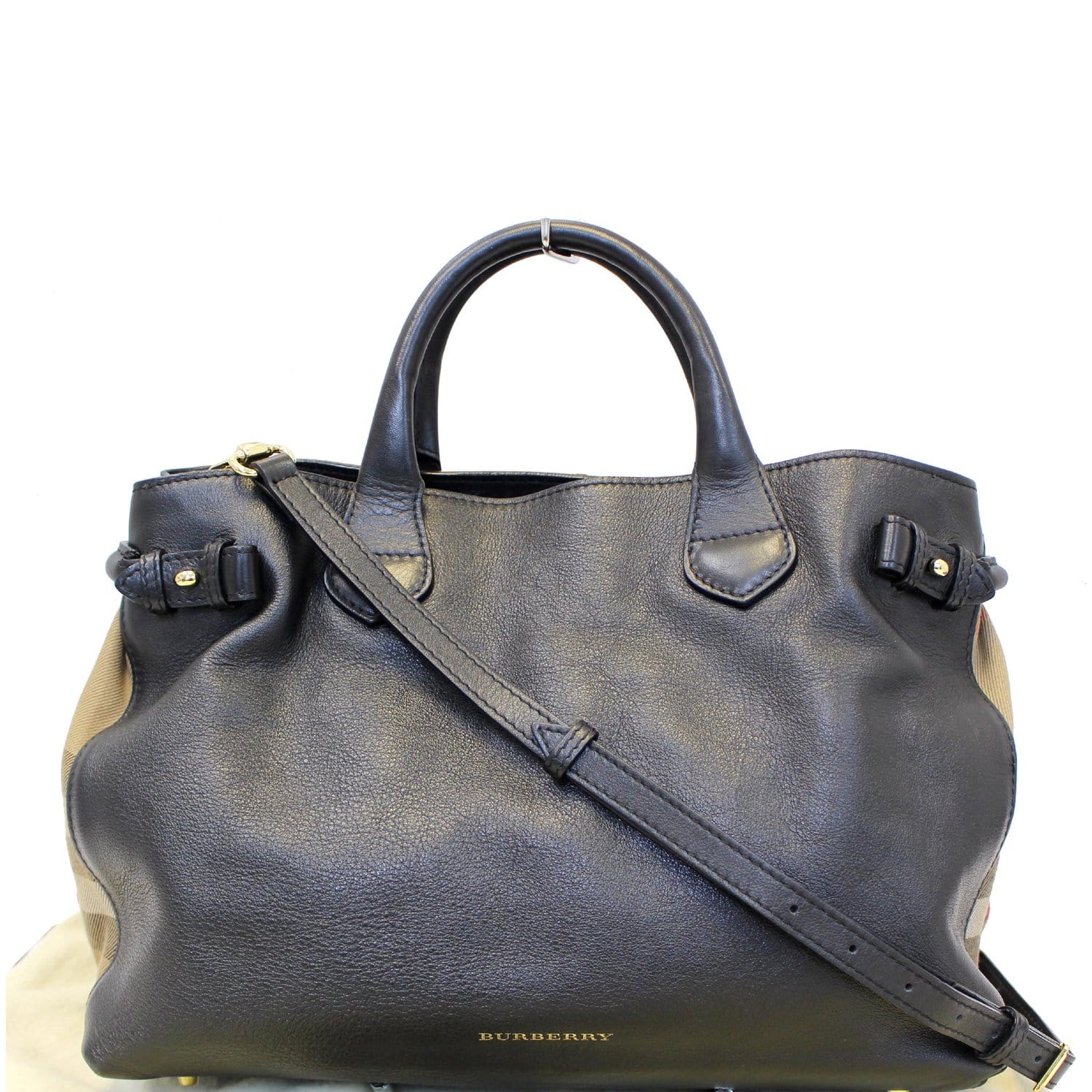 BURBERRY Black Calf Leather House Check Medium Banner Tote Bag