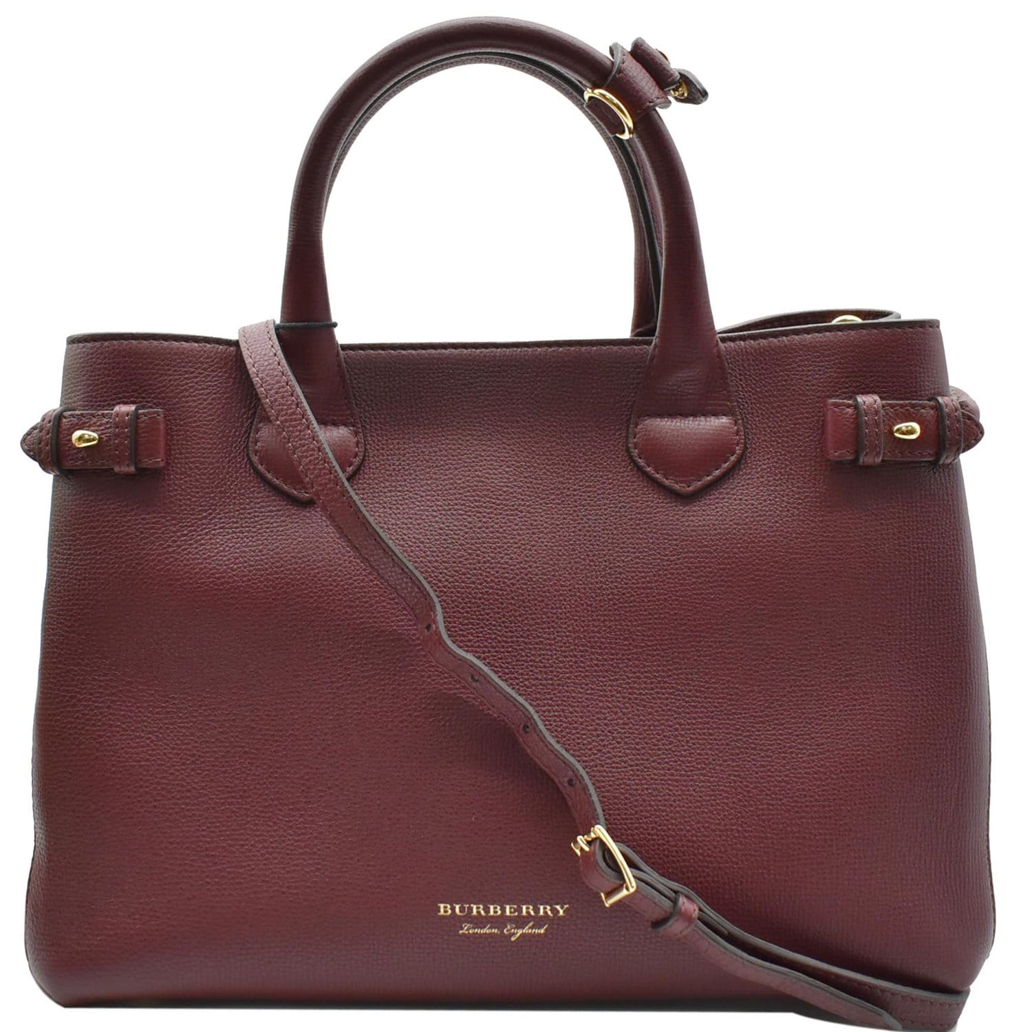 BURBERRY Banner Medium Leather Tote Shoulder Bag Red