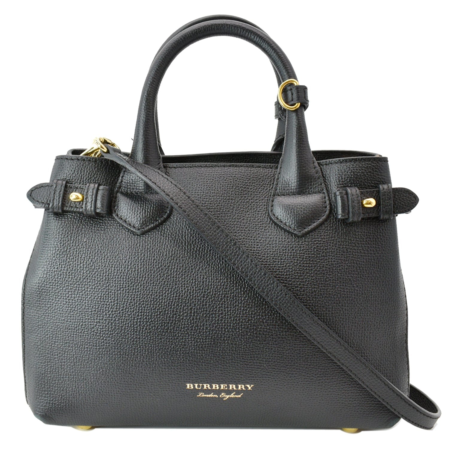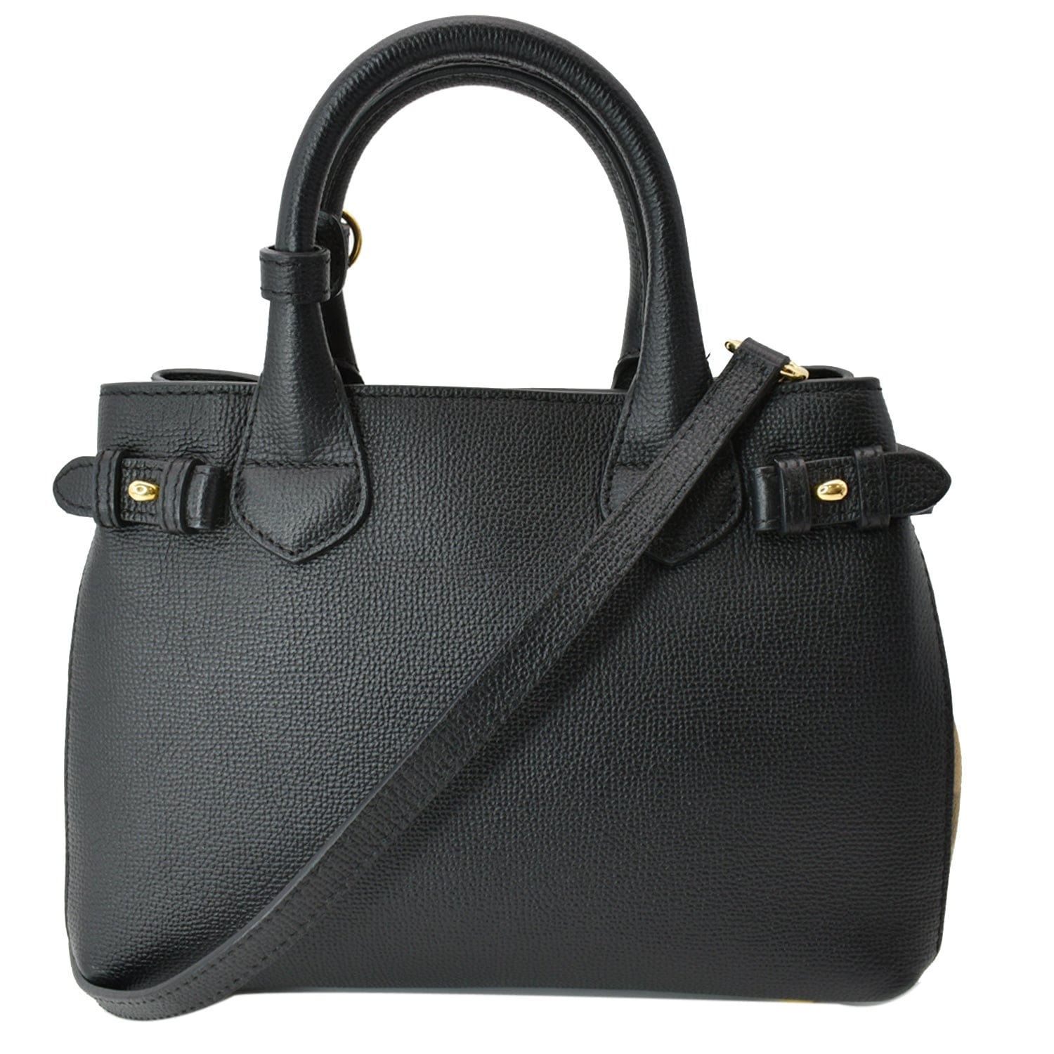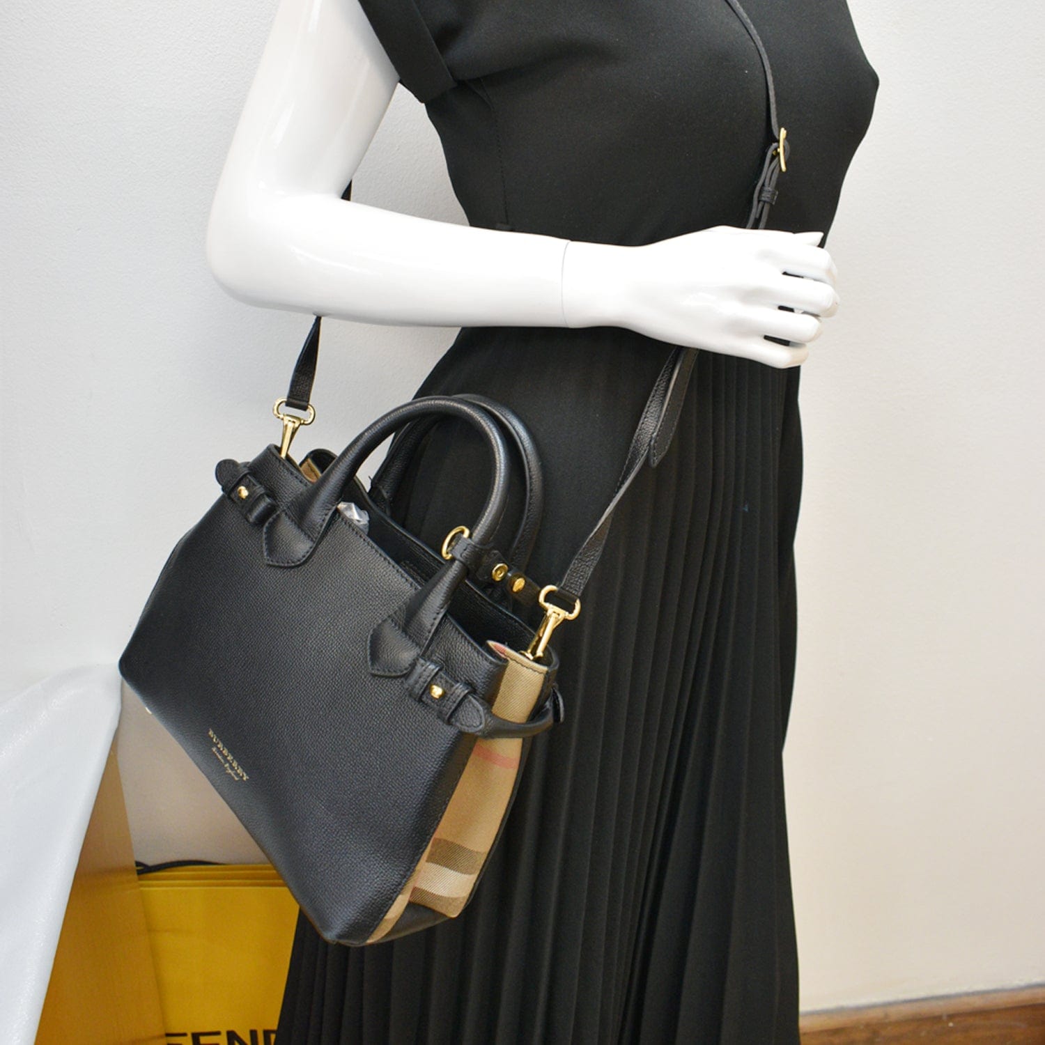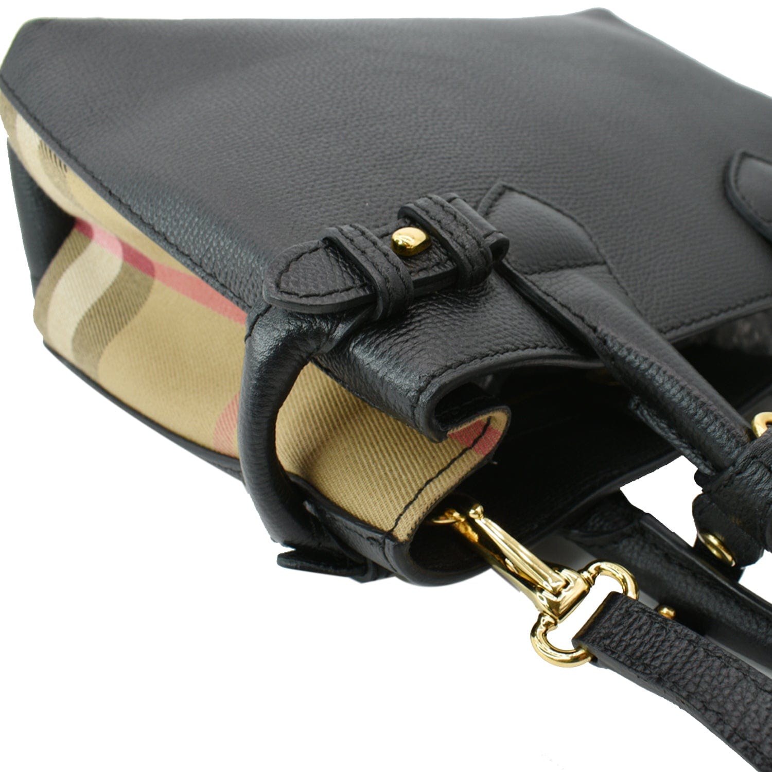 BURBERRY Derby Banner Small House Check Leather Tote Shoulder Bag Black