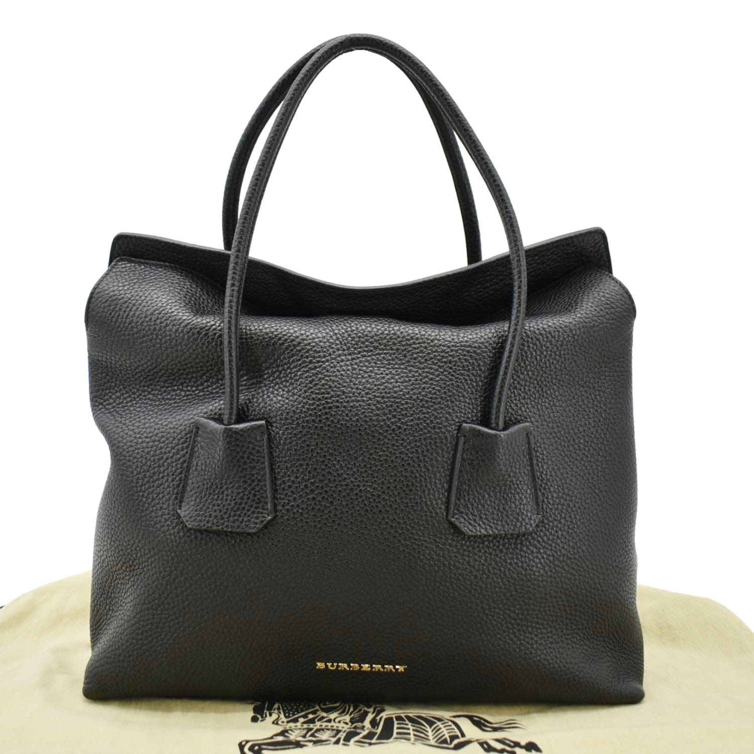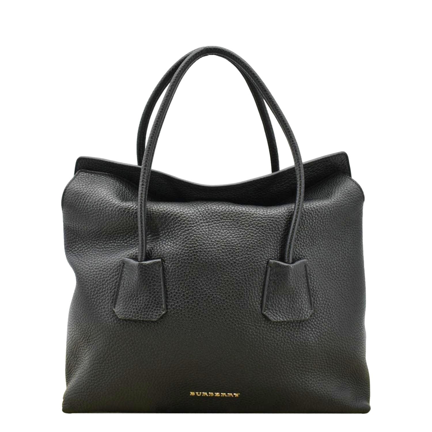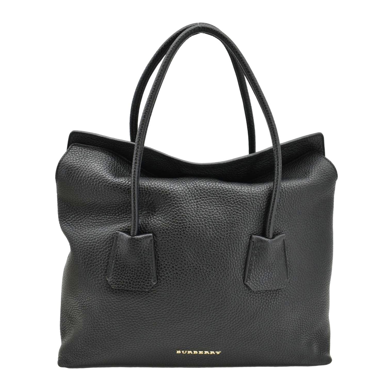BURBERRY Grainy Calfskin Leather Baynard Medium Black Tote Bag