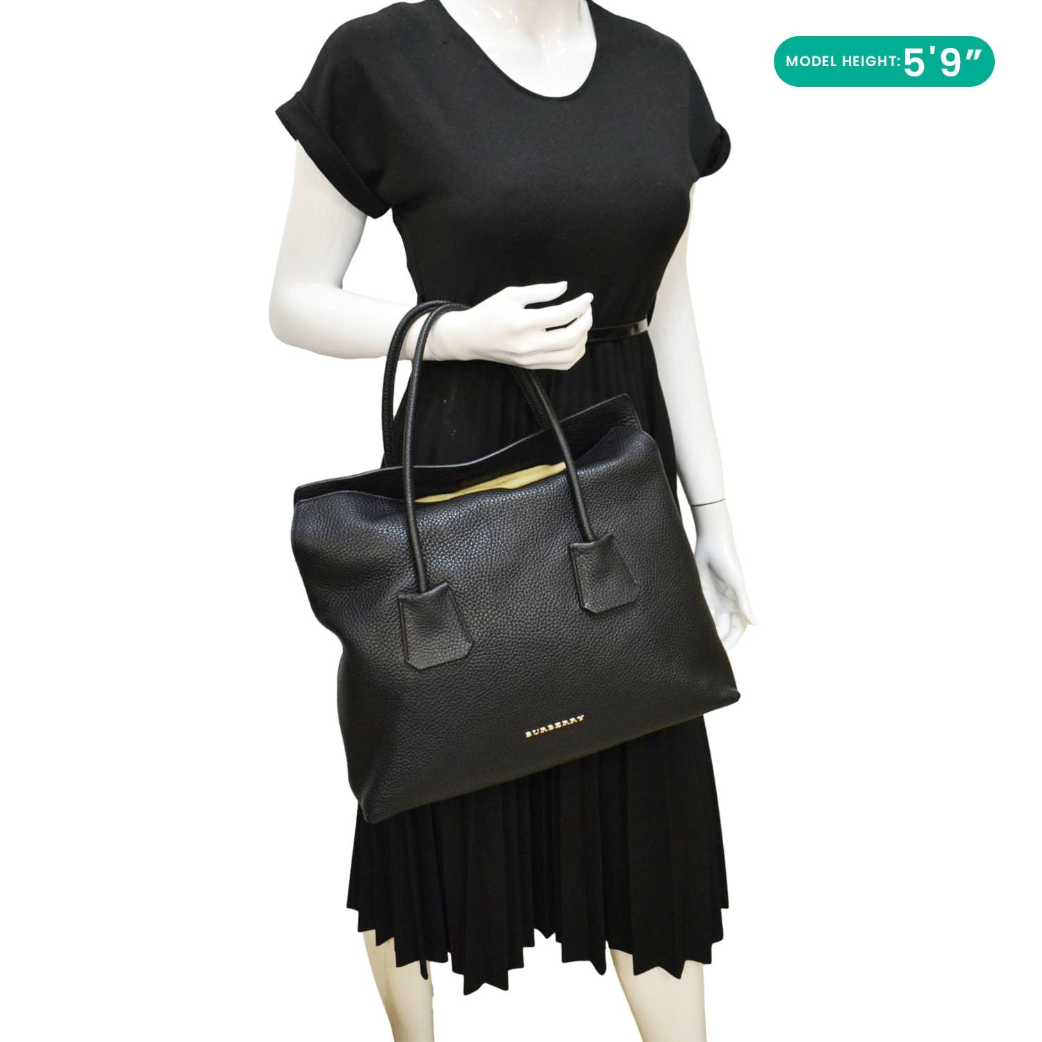 BURBERRY Baynard Medium Grainy Calfskin Leather Tote Bag Black