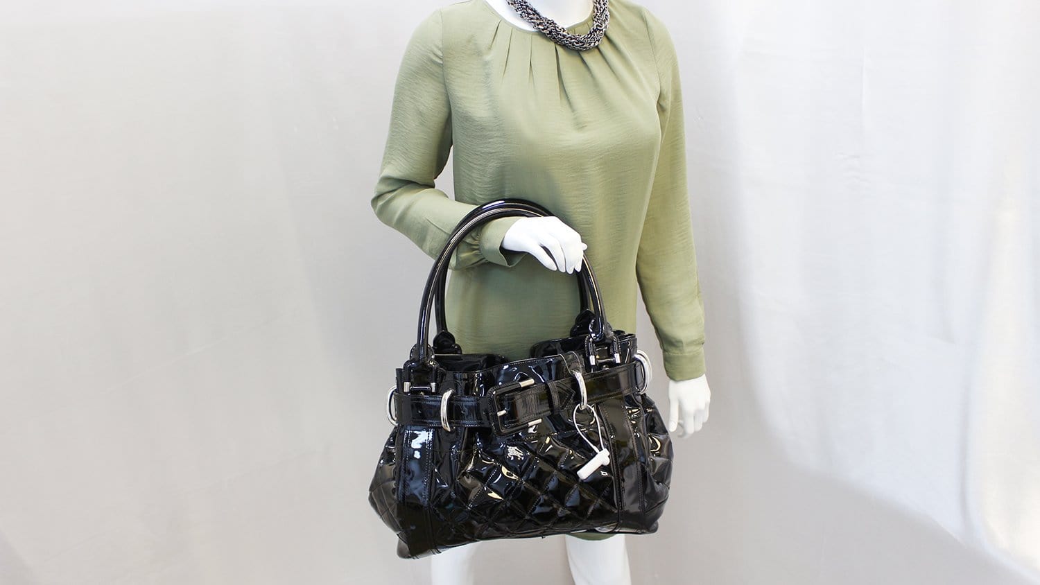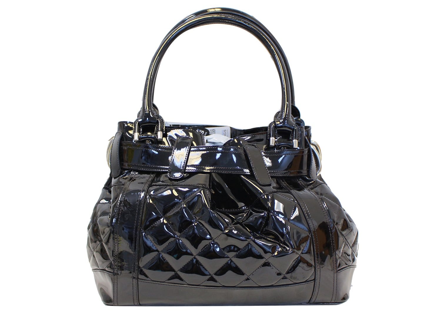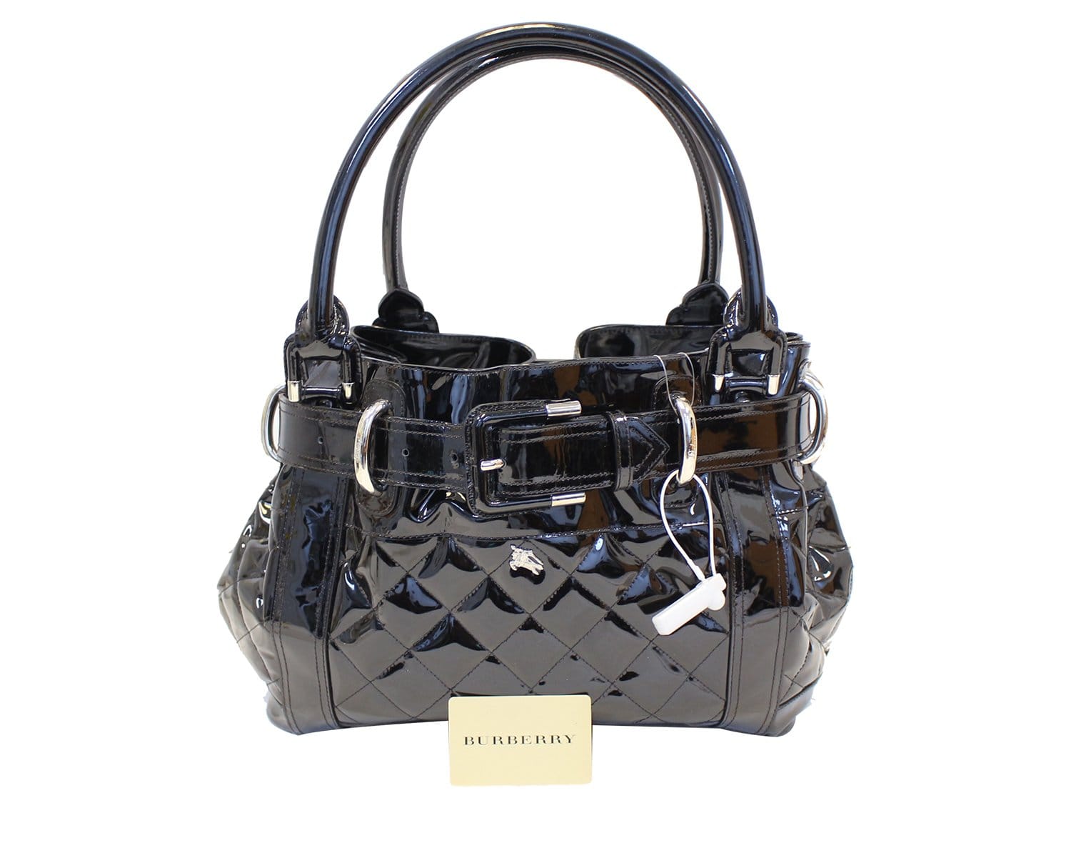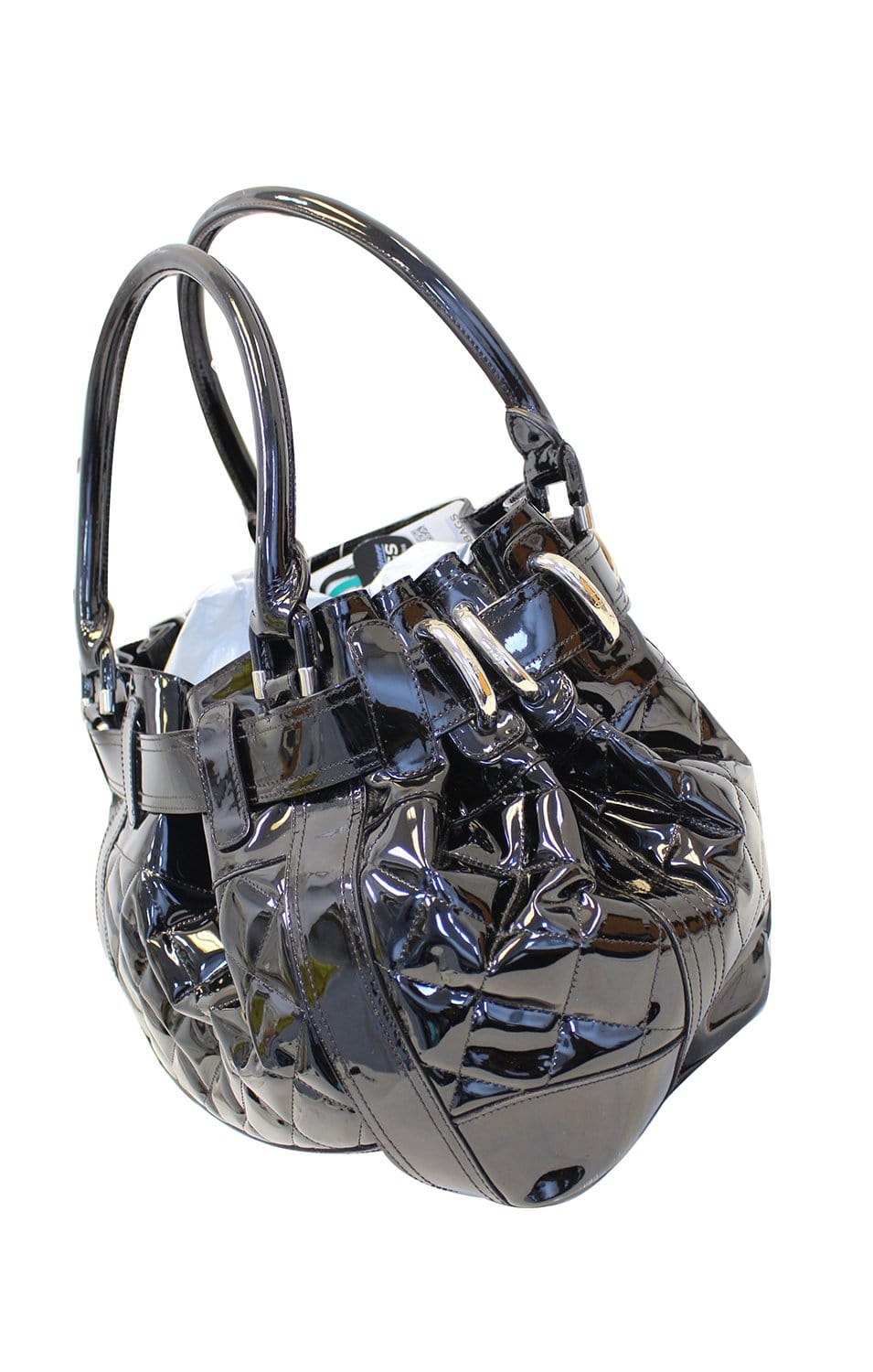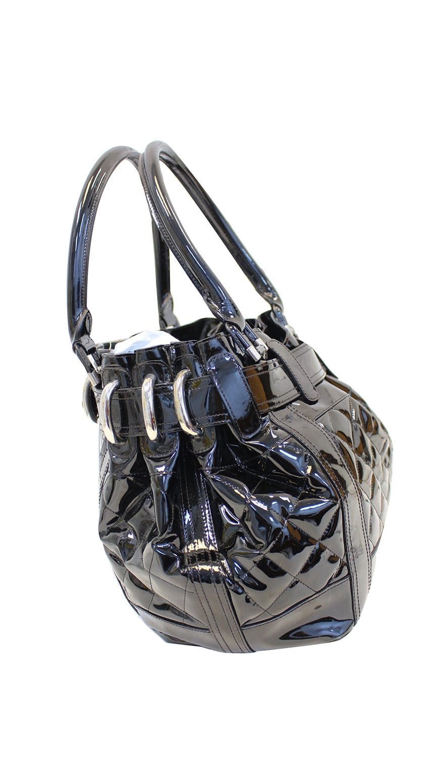 BURBERRY Black Quilted Patent Leather Beaton Tote Bag