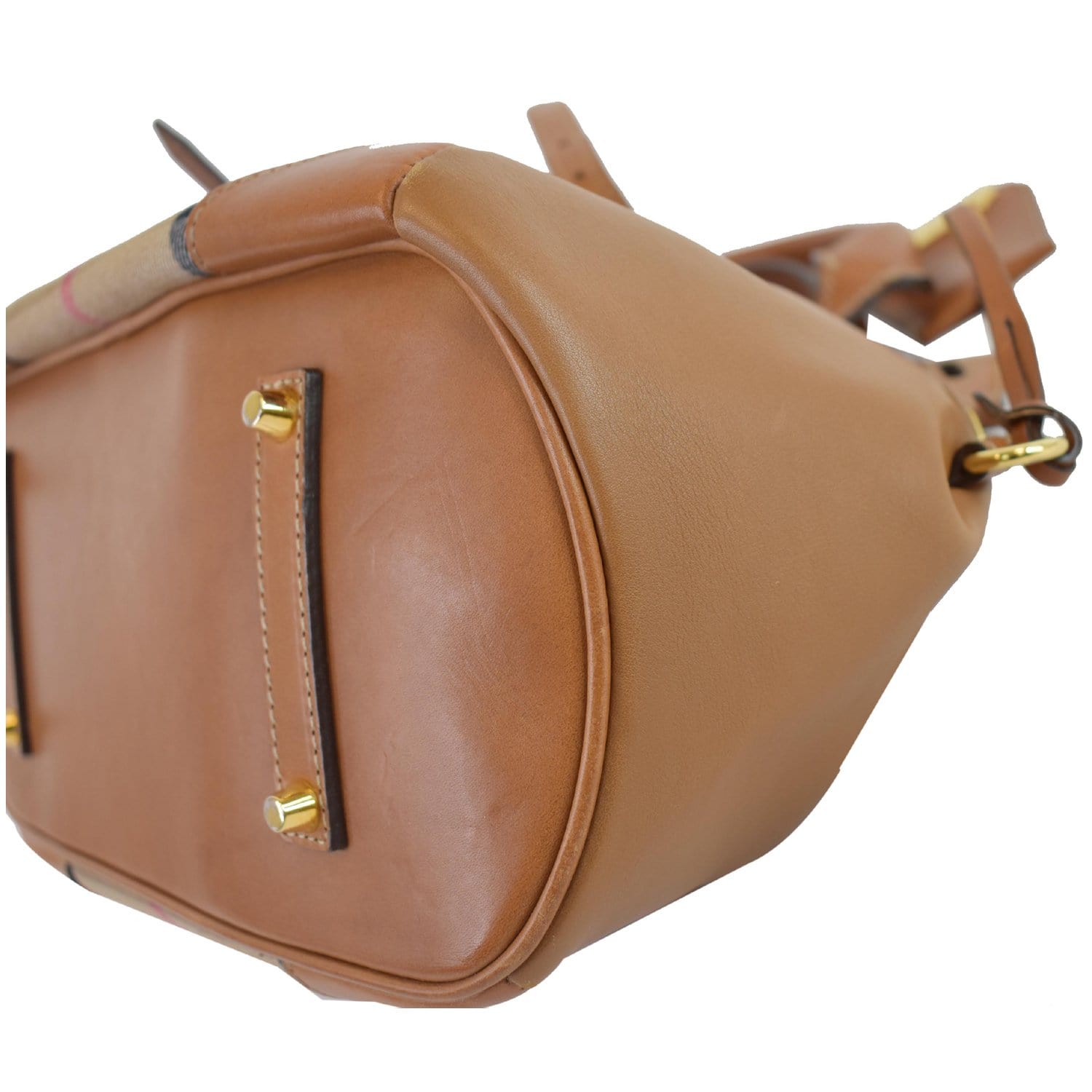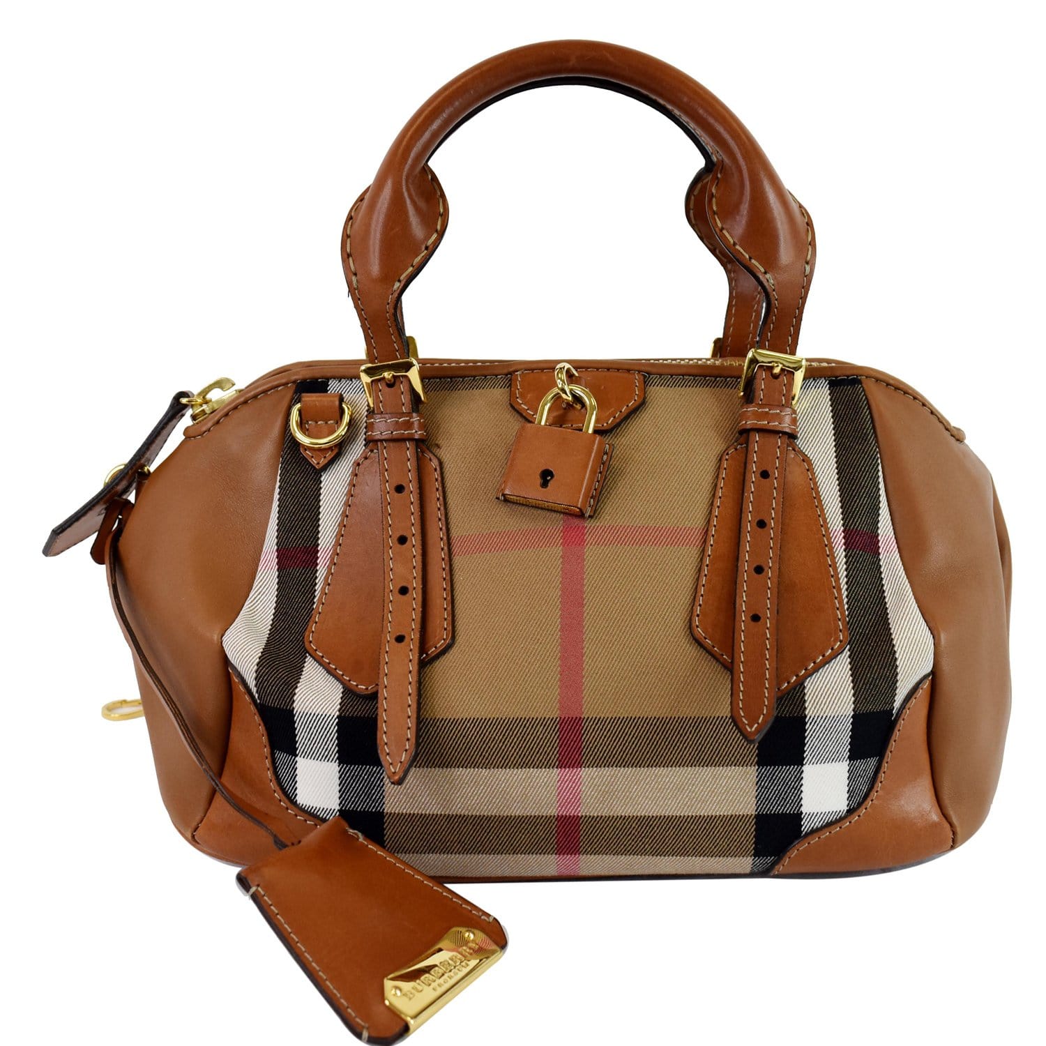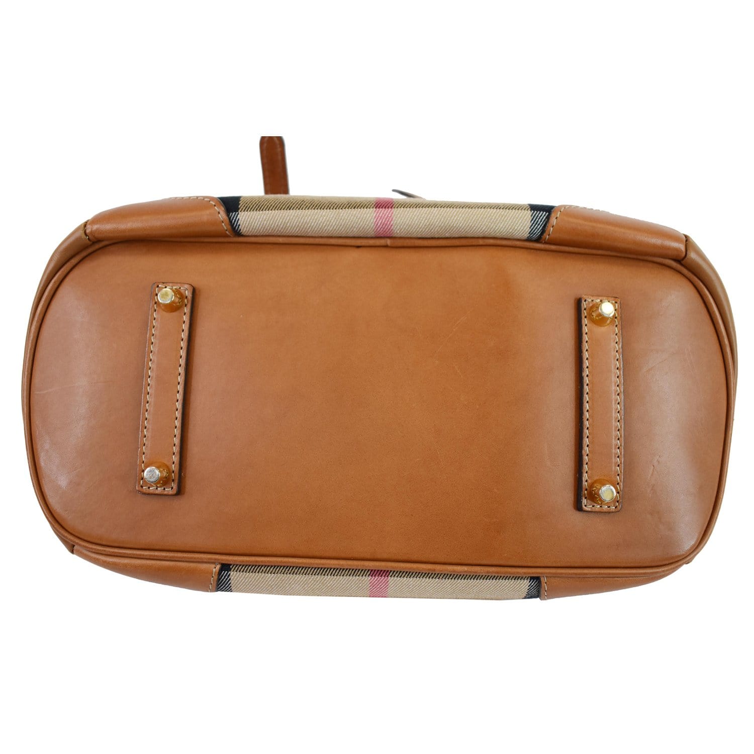 BURBERRY Blaze House Check and Leather Satchel Bag Brown