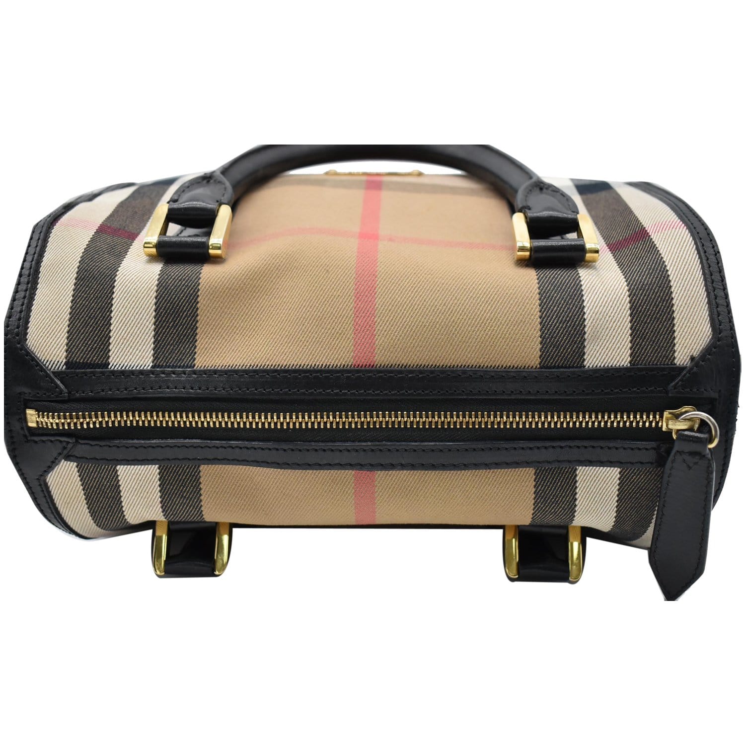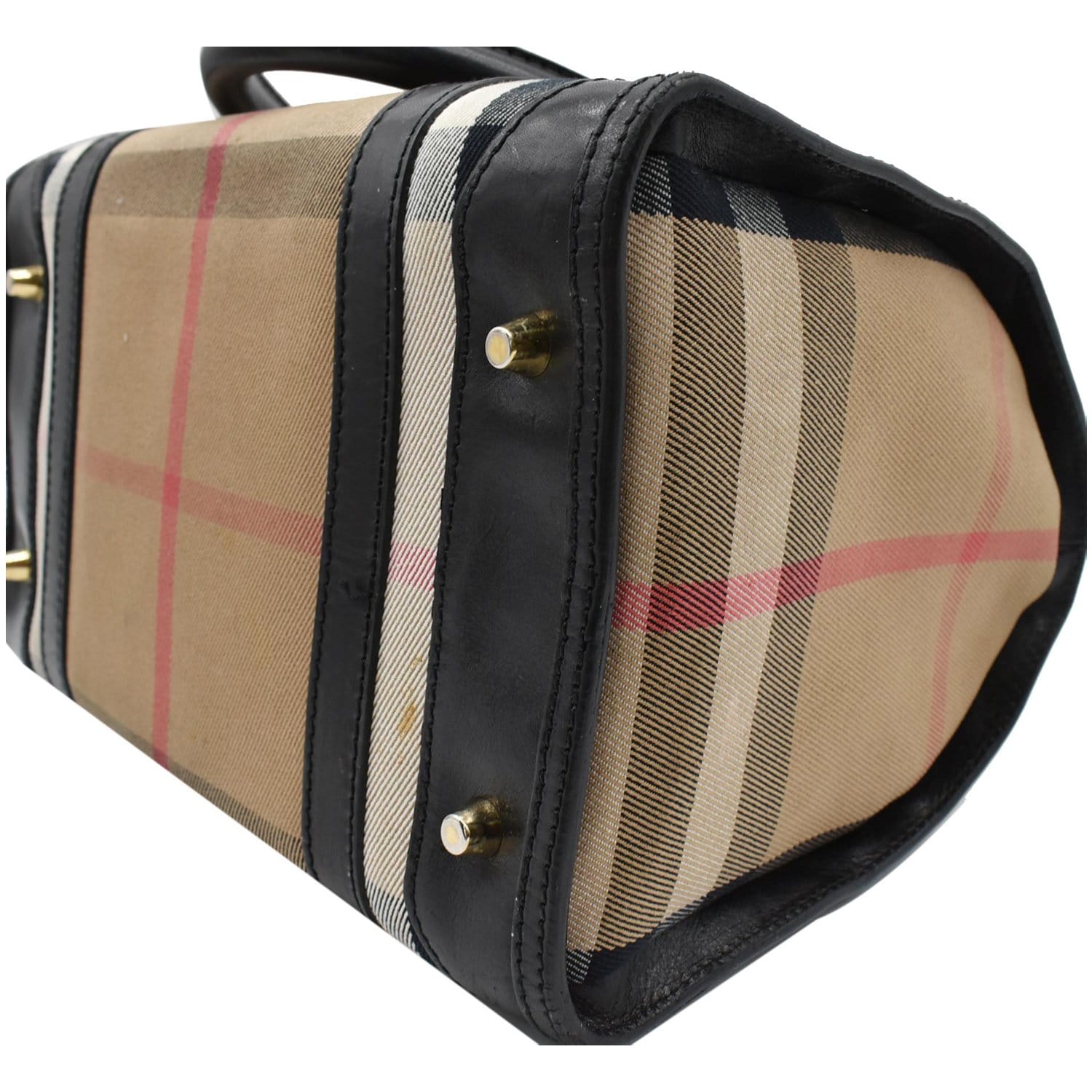 BURBERRY Boston Haymarket Check Coated Canvas Satchel Bag Brown