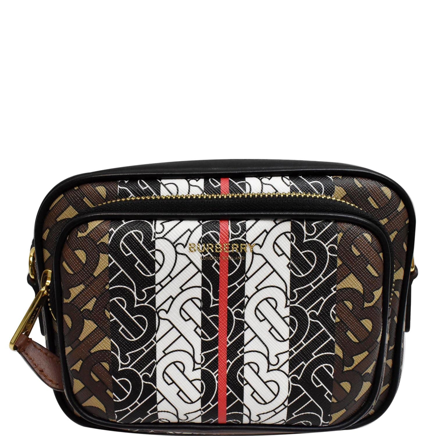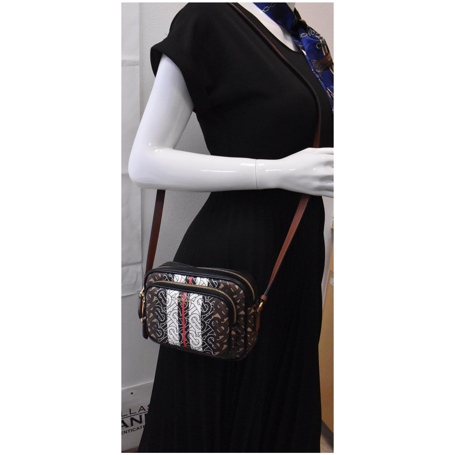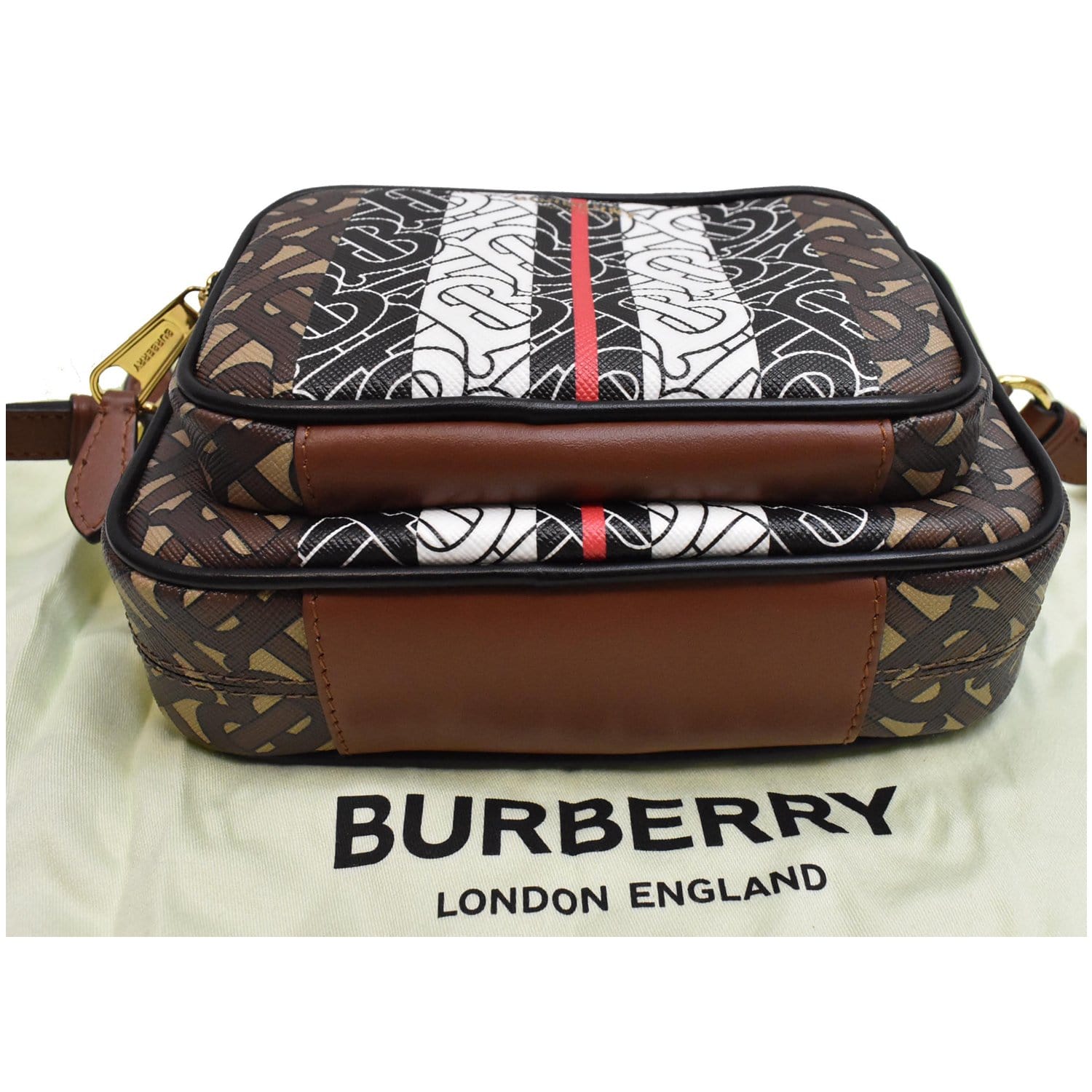 BURBERRY Bridle Stripe Small Monogram E-Canvas Camera Bag Brown
