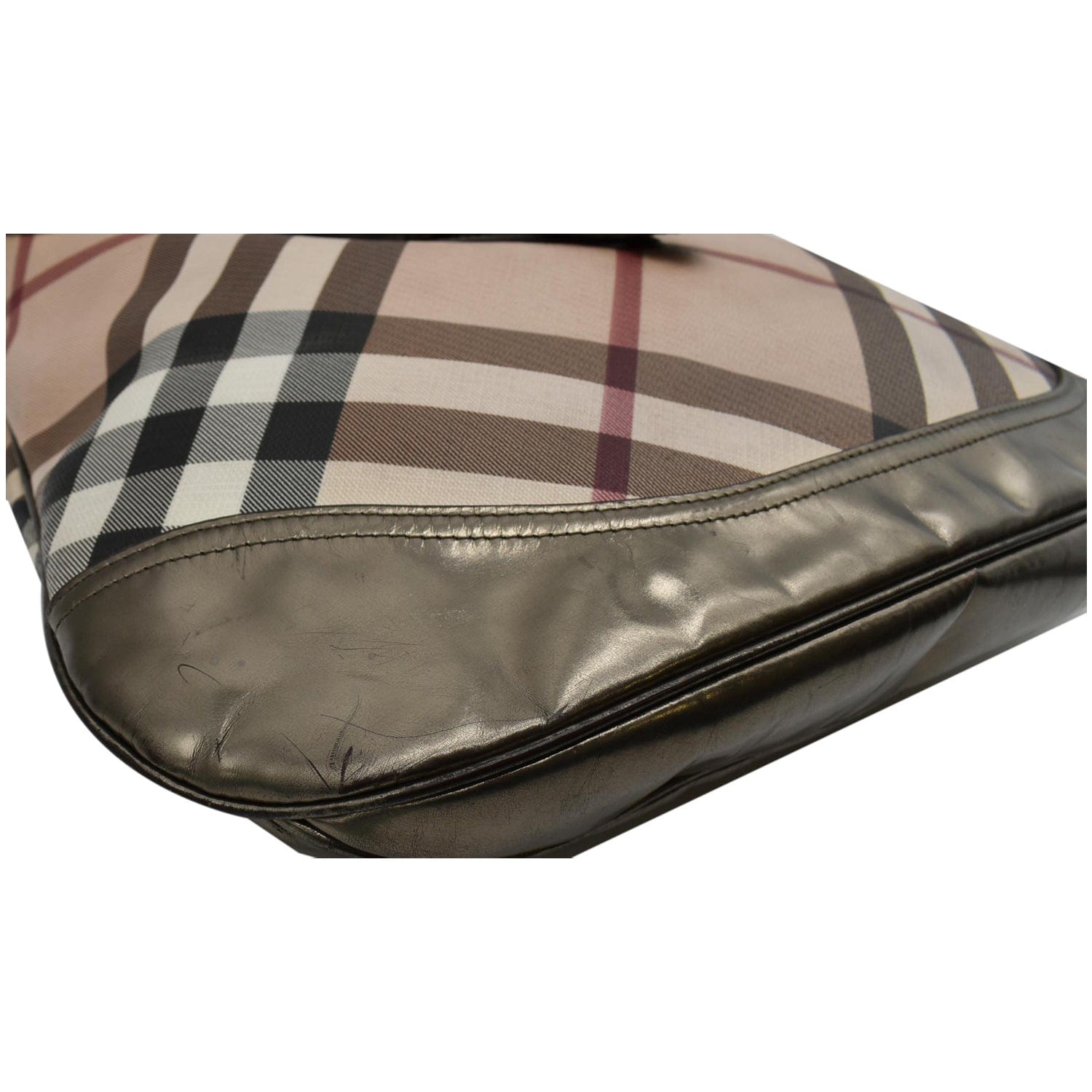 BURBERRY Brooke Check Canvas Hobo Bag Beige
