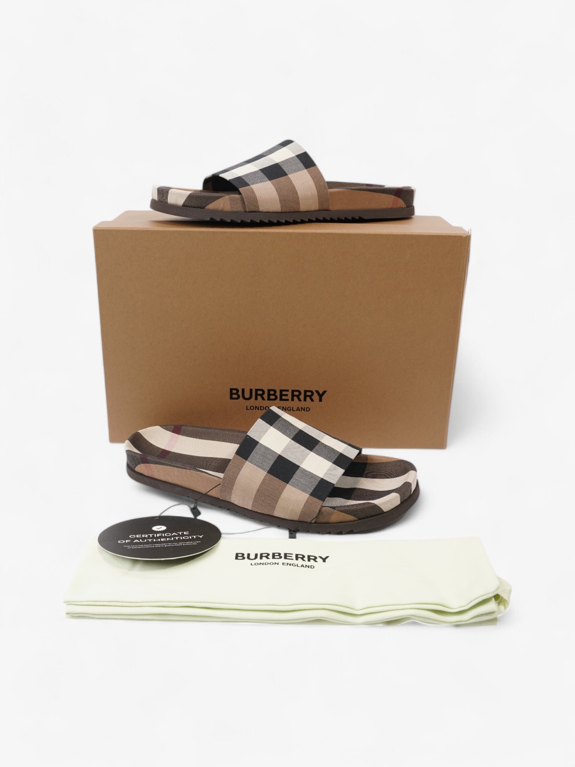 Burberry Check Slide Dark Birch Brown Cotton EU 42 UK 8