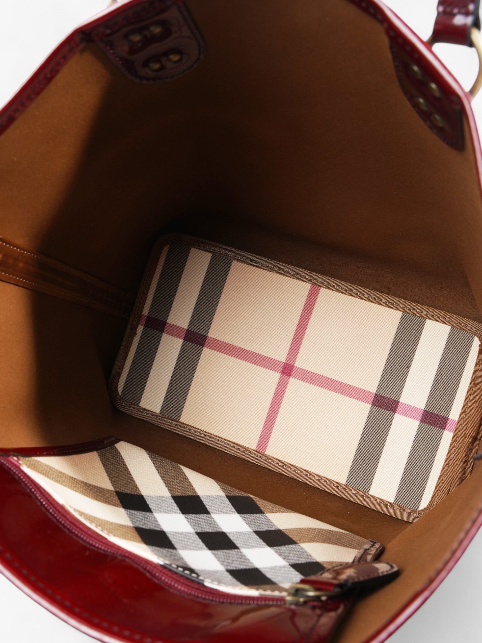 Burberry Check Tote Nova Check / Deep Red Canvas