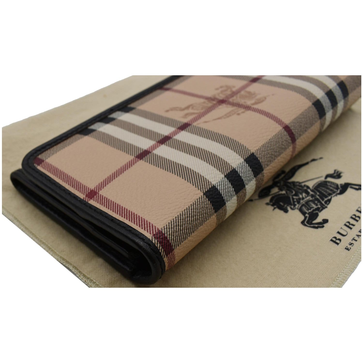 BURBERRY Continental Haymarket Check Leather Wallet Dark Brown