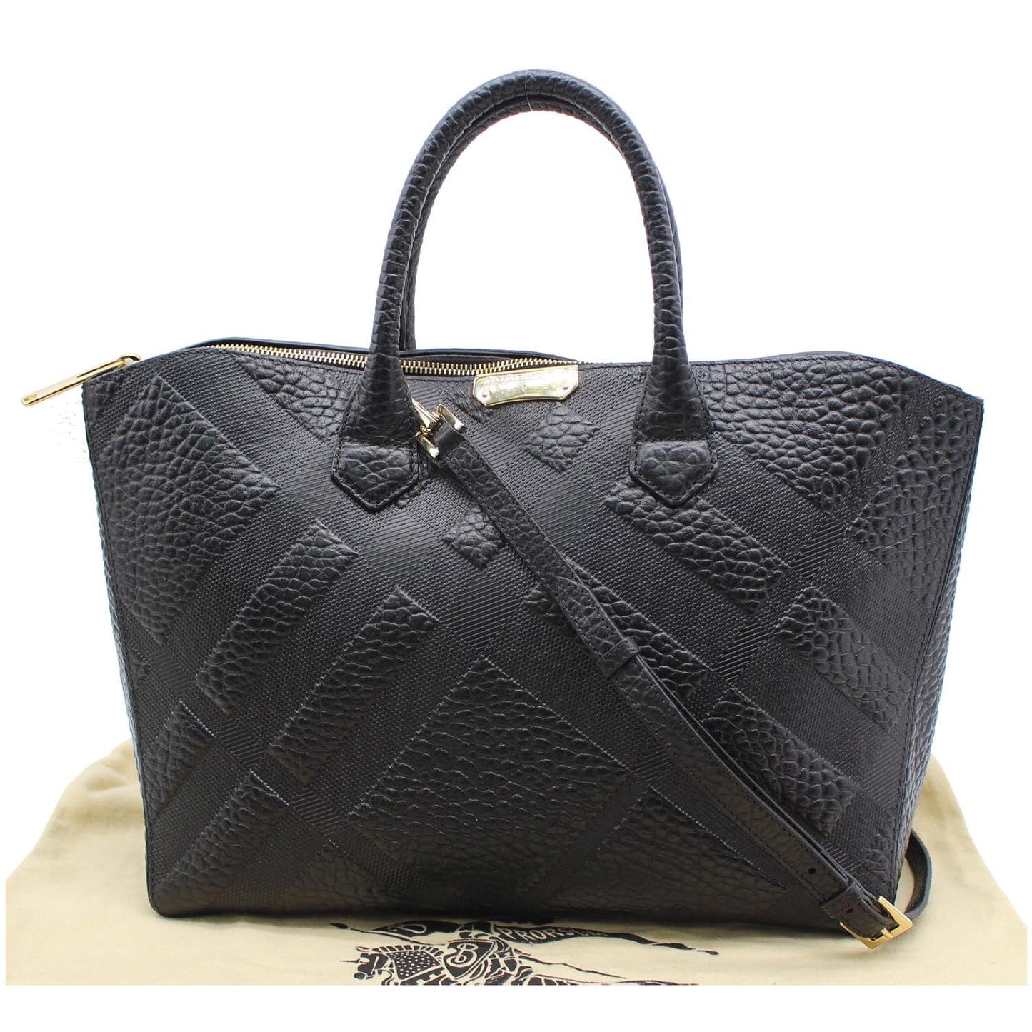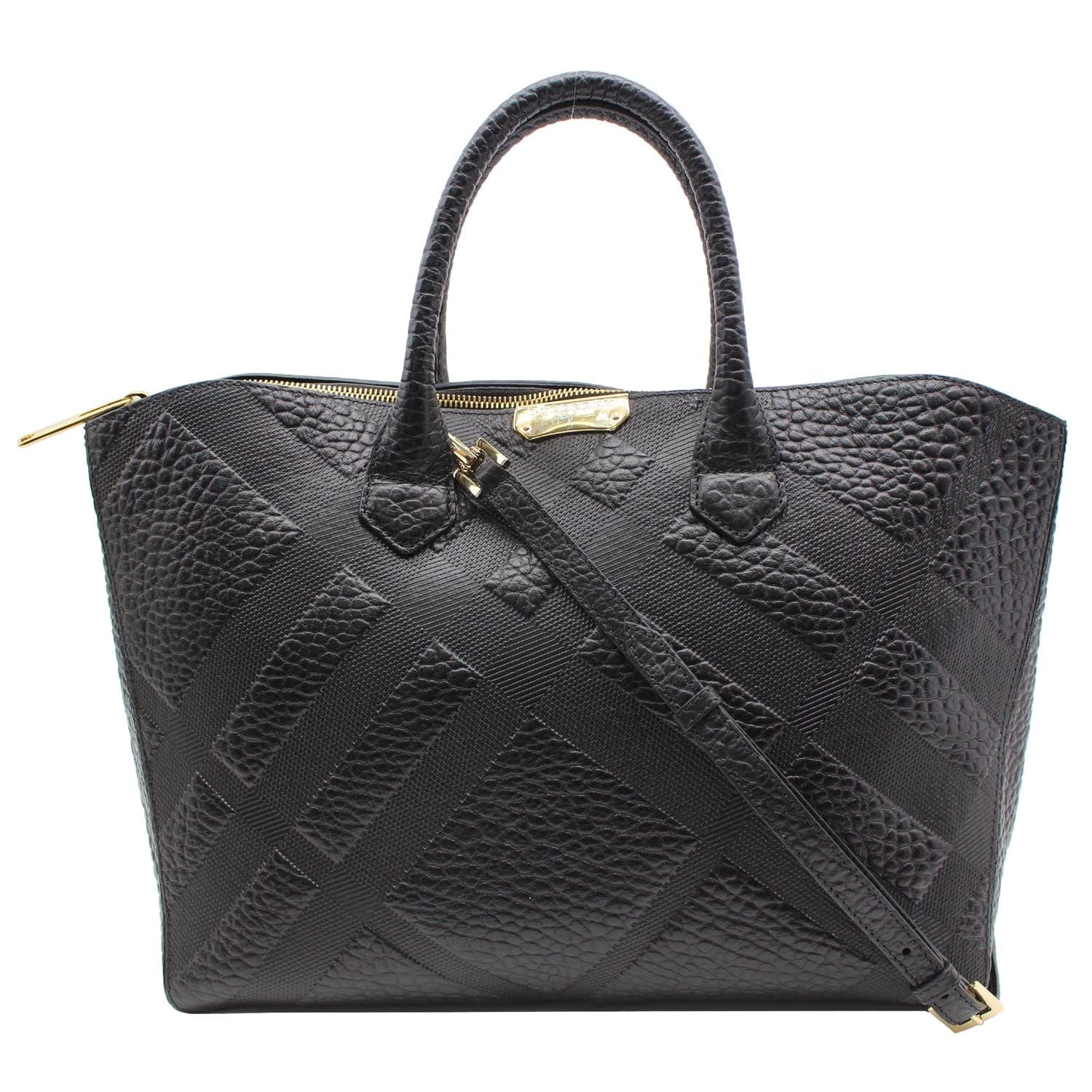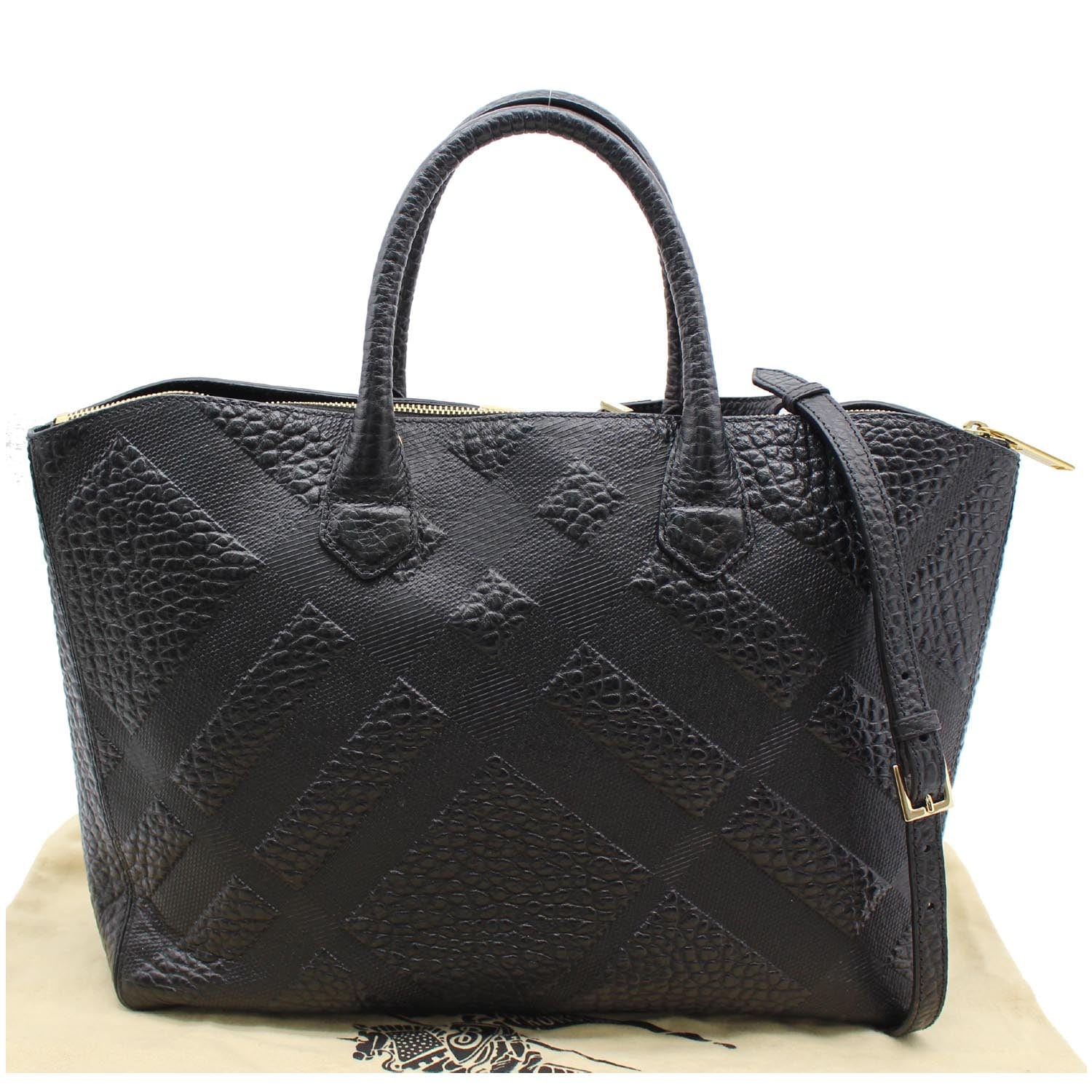 BURBERRY Dewsbury Medium Grain Check Embossed Tote Bag Black
