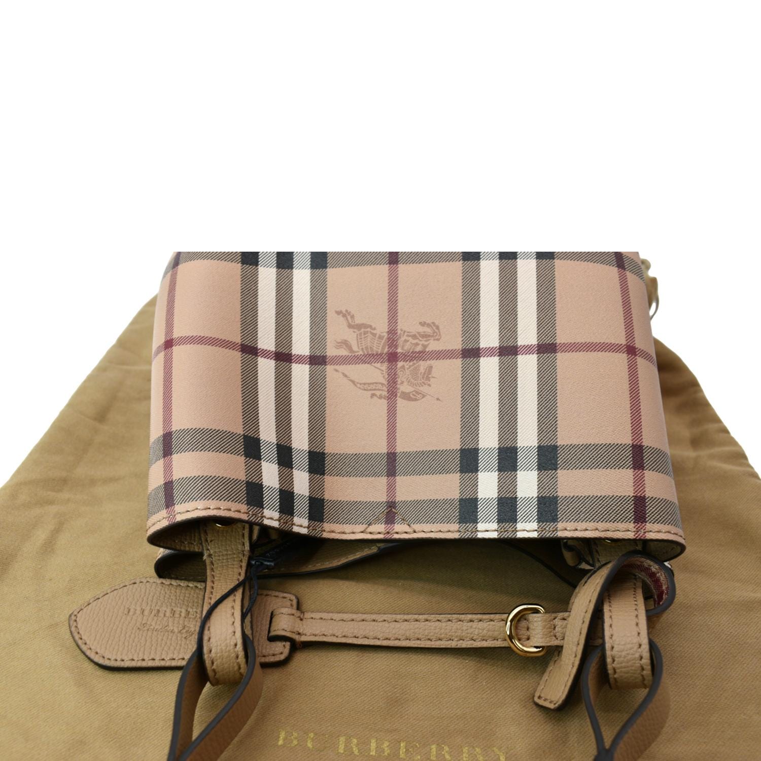 BURBERRY Bucket Haymarket Check Canvas Crossbody Bag Beige