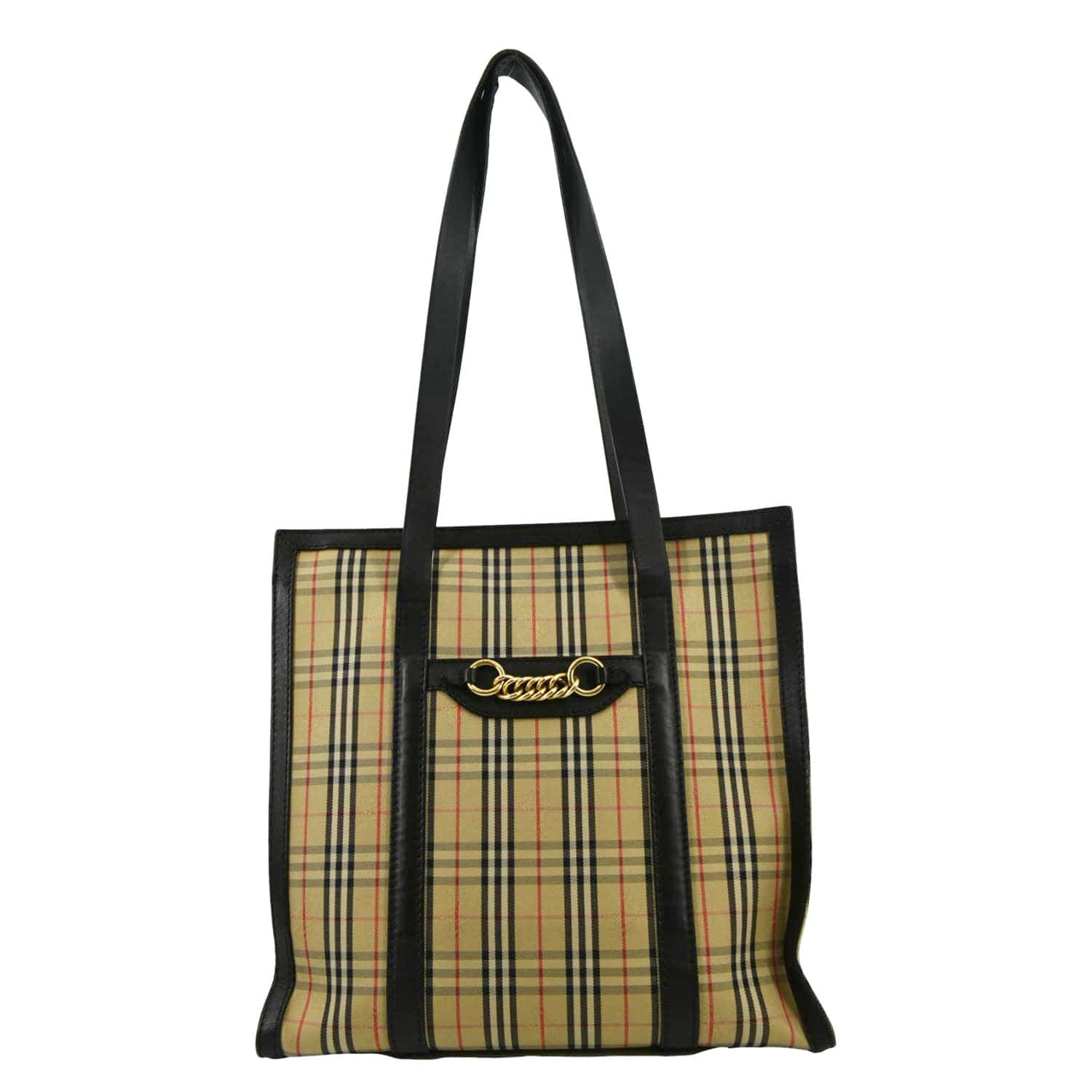 BURBERRY 1983 Knight Check Link Tote Shoulder Bag Beige