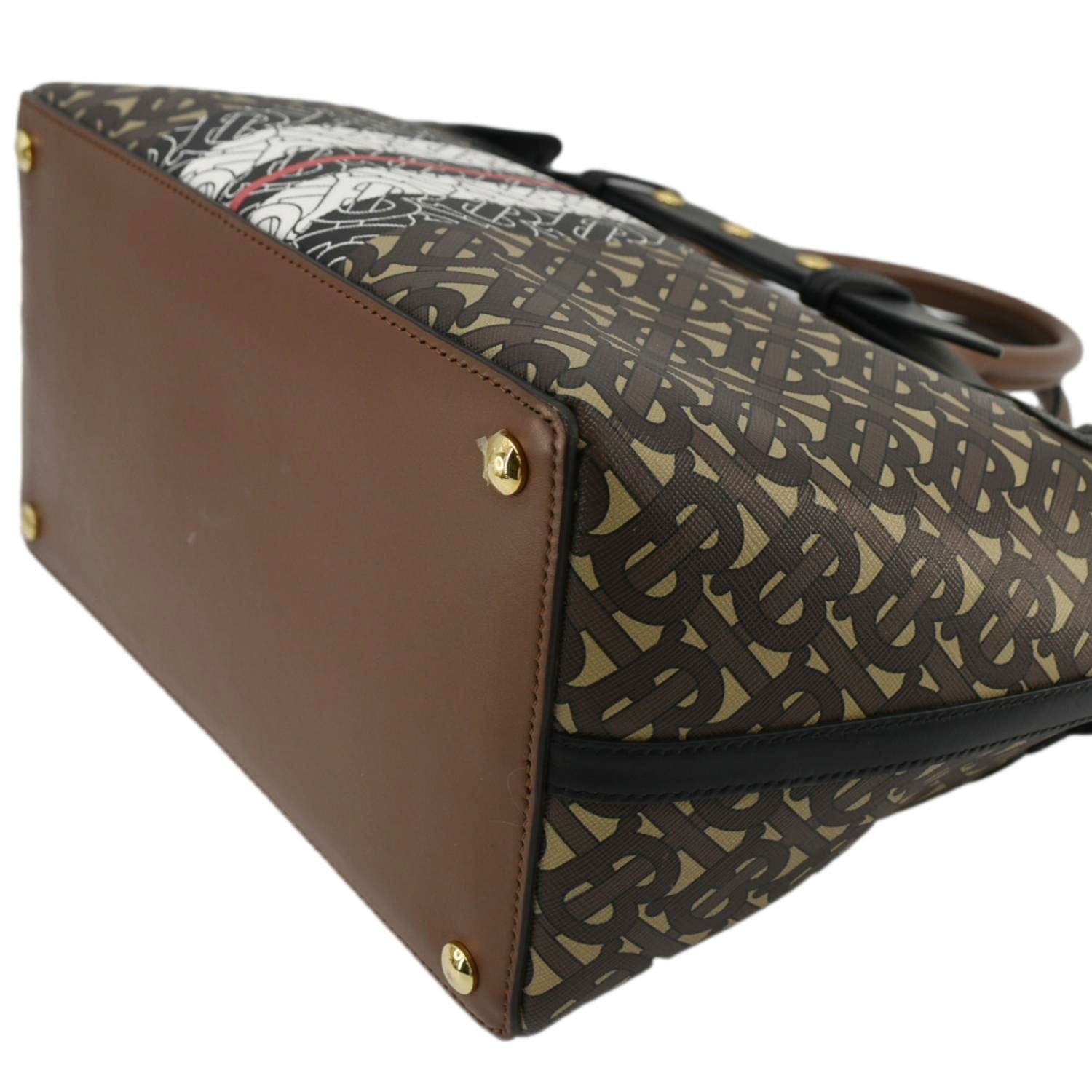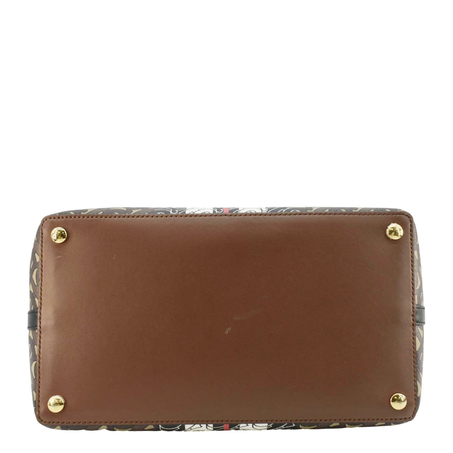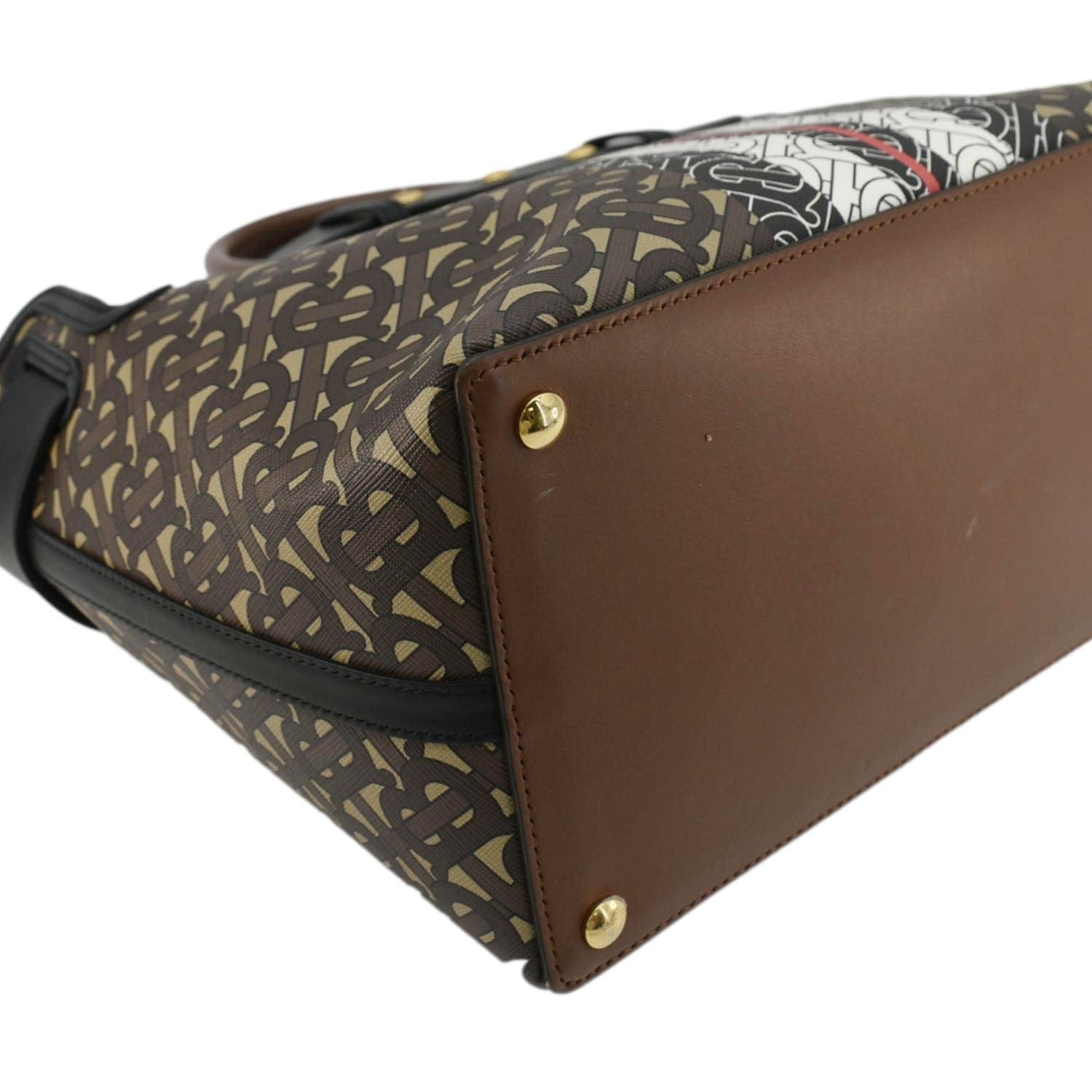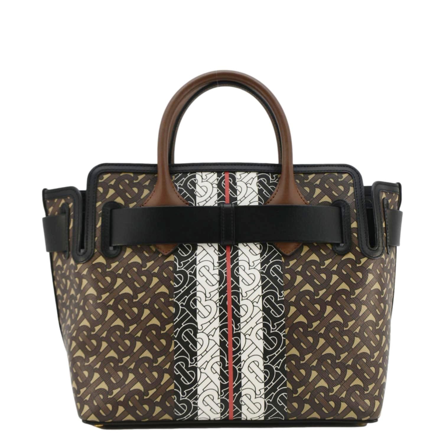 BURBERRY Belted Small Monogram Stripe E-Canvas Tote Shoulder Bag Brown