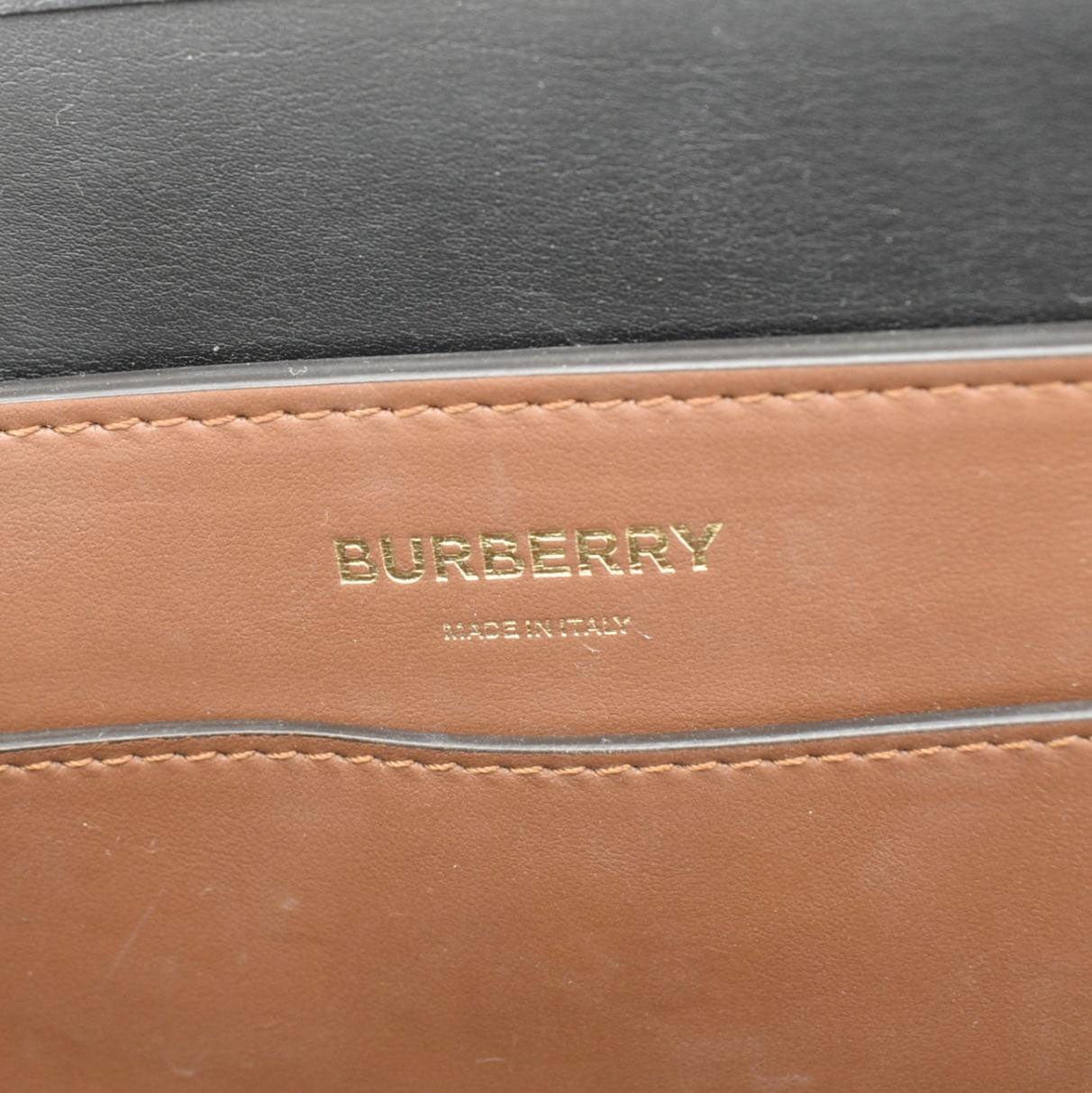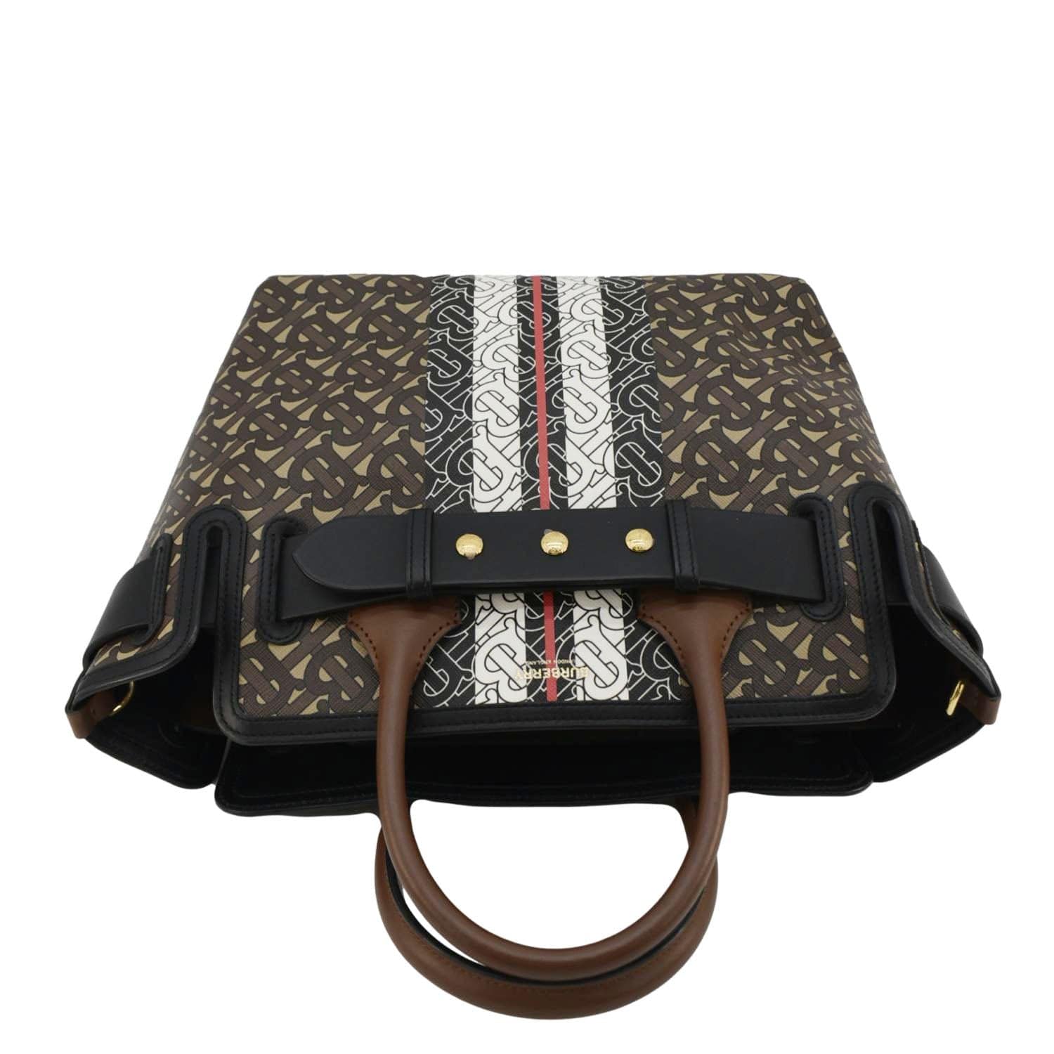 BURBERRY Belted Small Monogram Stripe Brown Tote Shoulder Bag