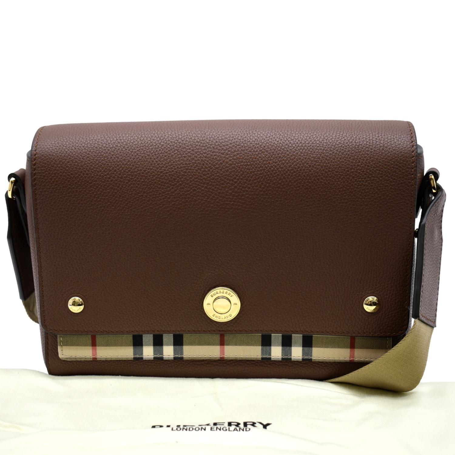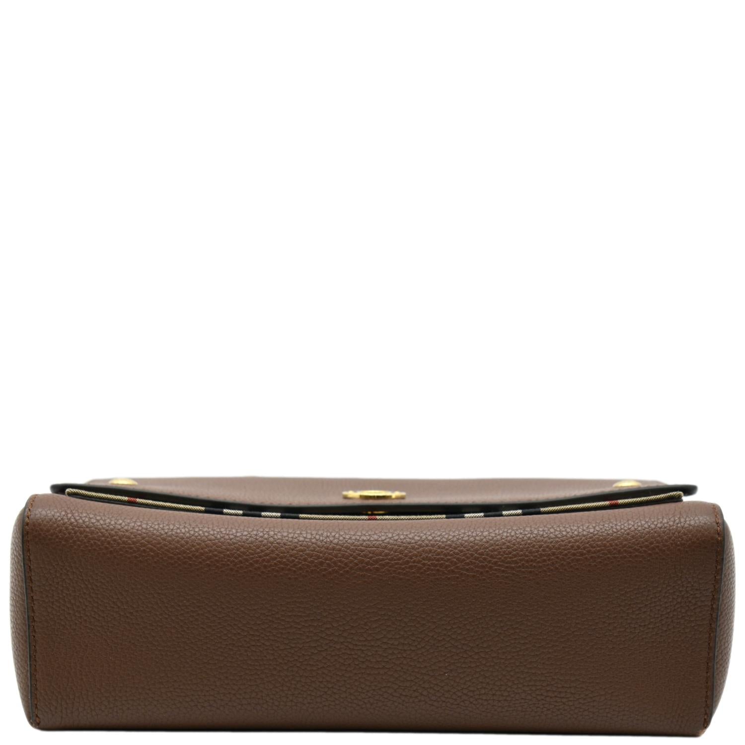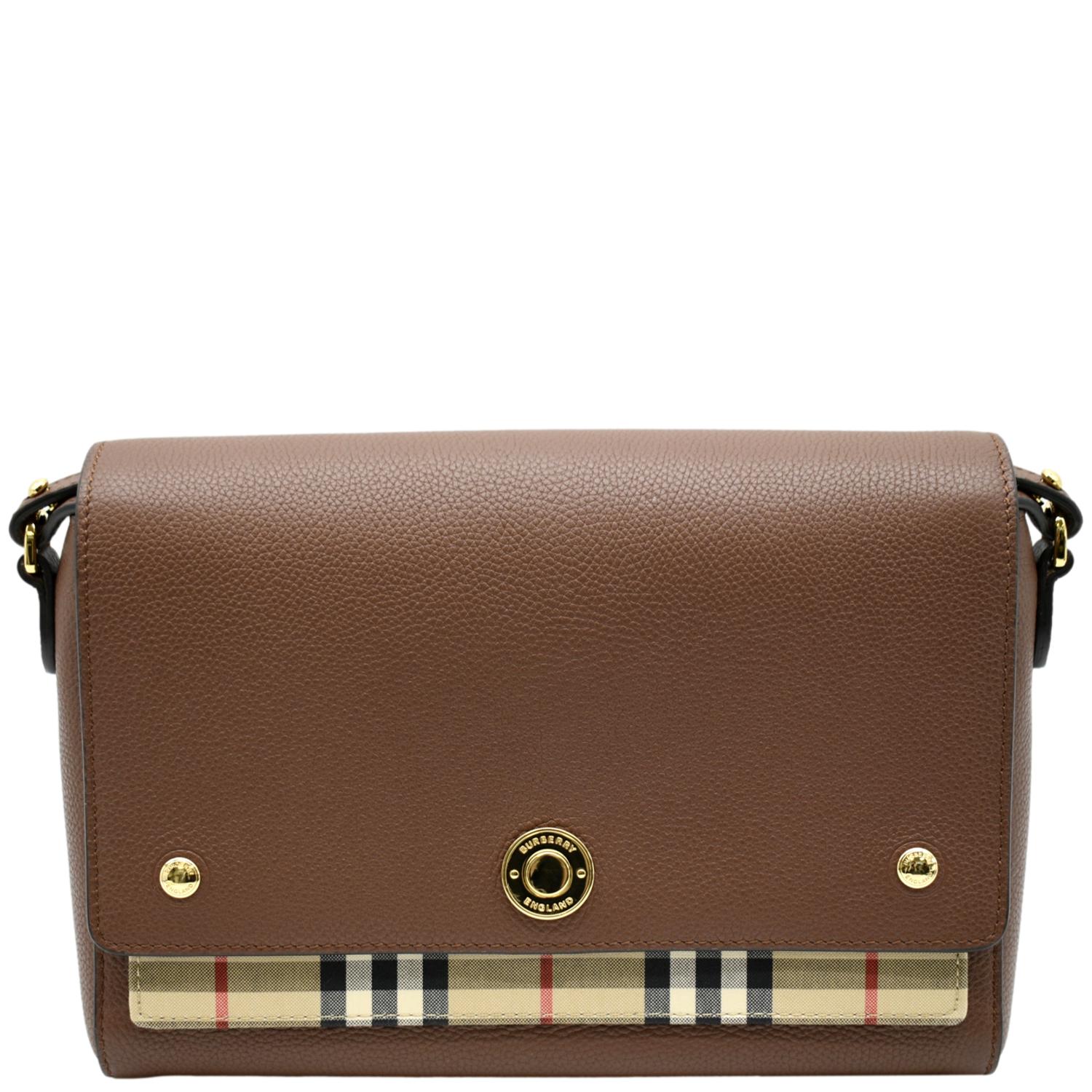 BURBERRY Check Note Grainy Leather Crossbody Bag Brown