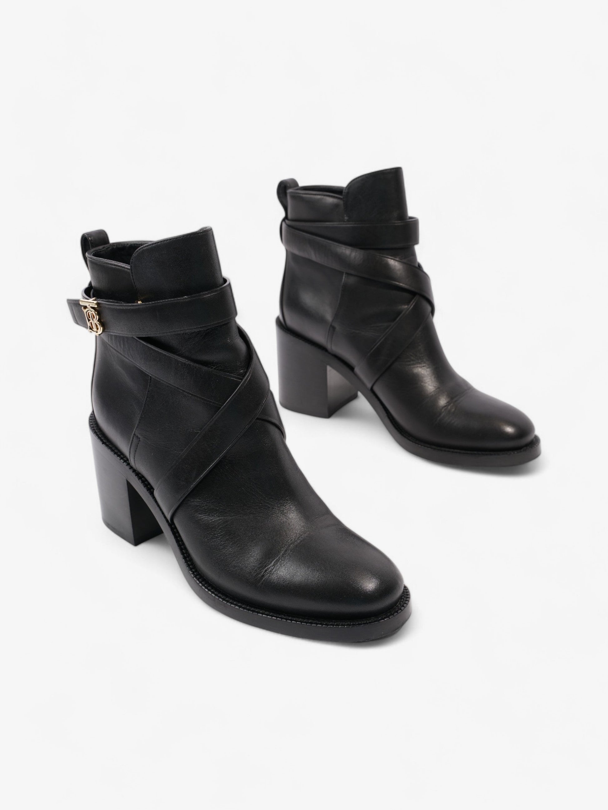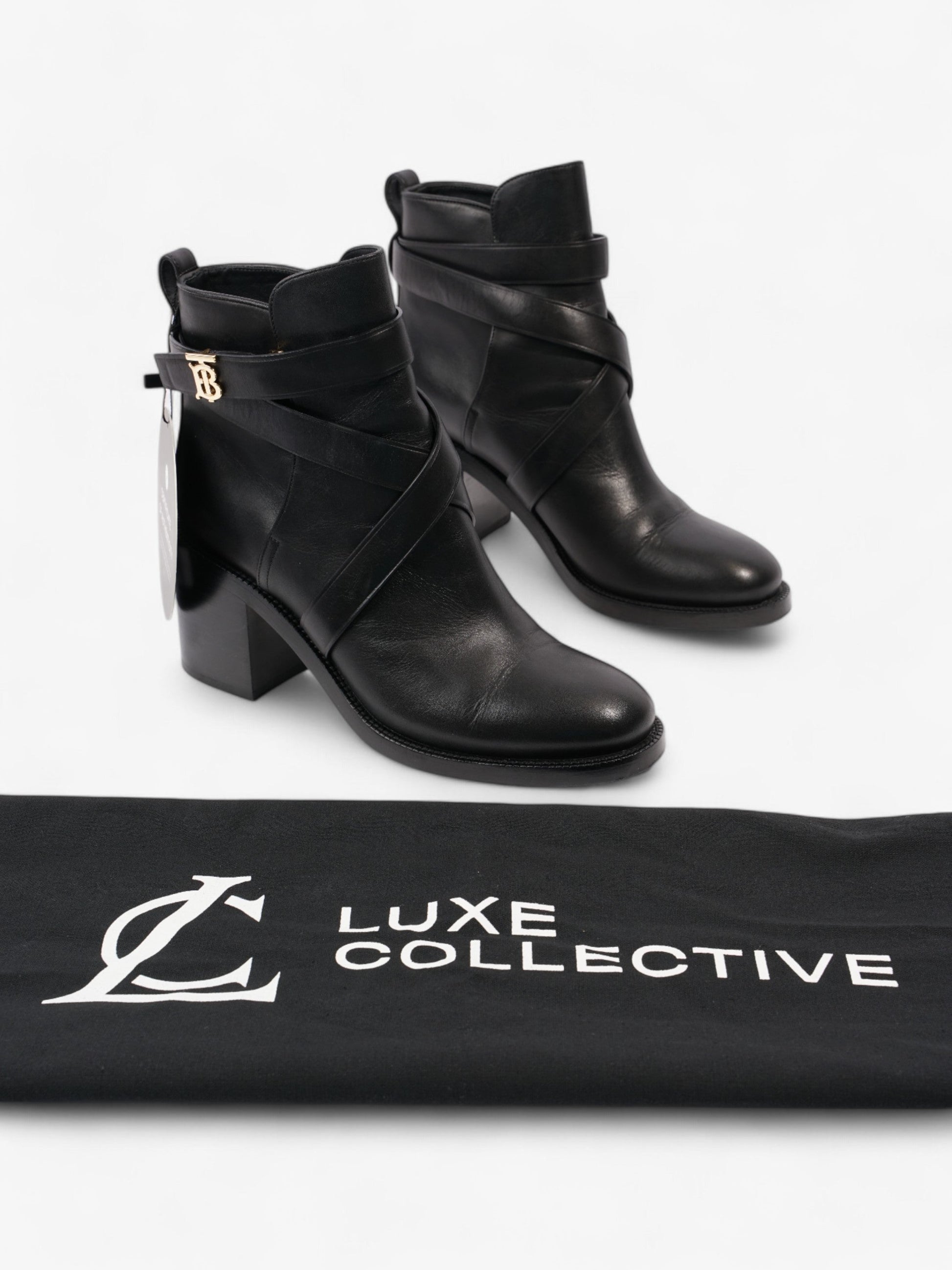 Burberry Platform Ankle Boots Black / Gold Leather EU 38.5 UK 5.5