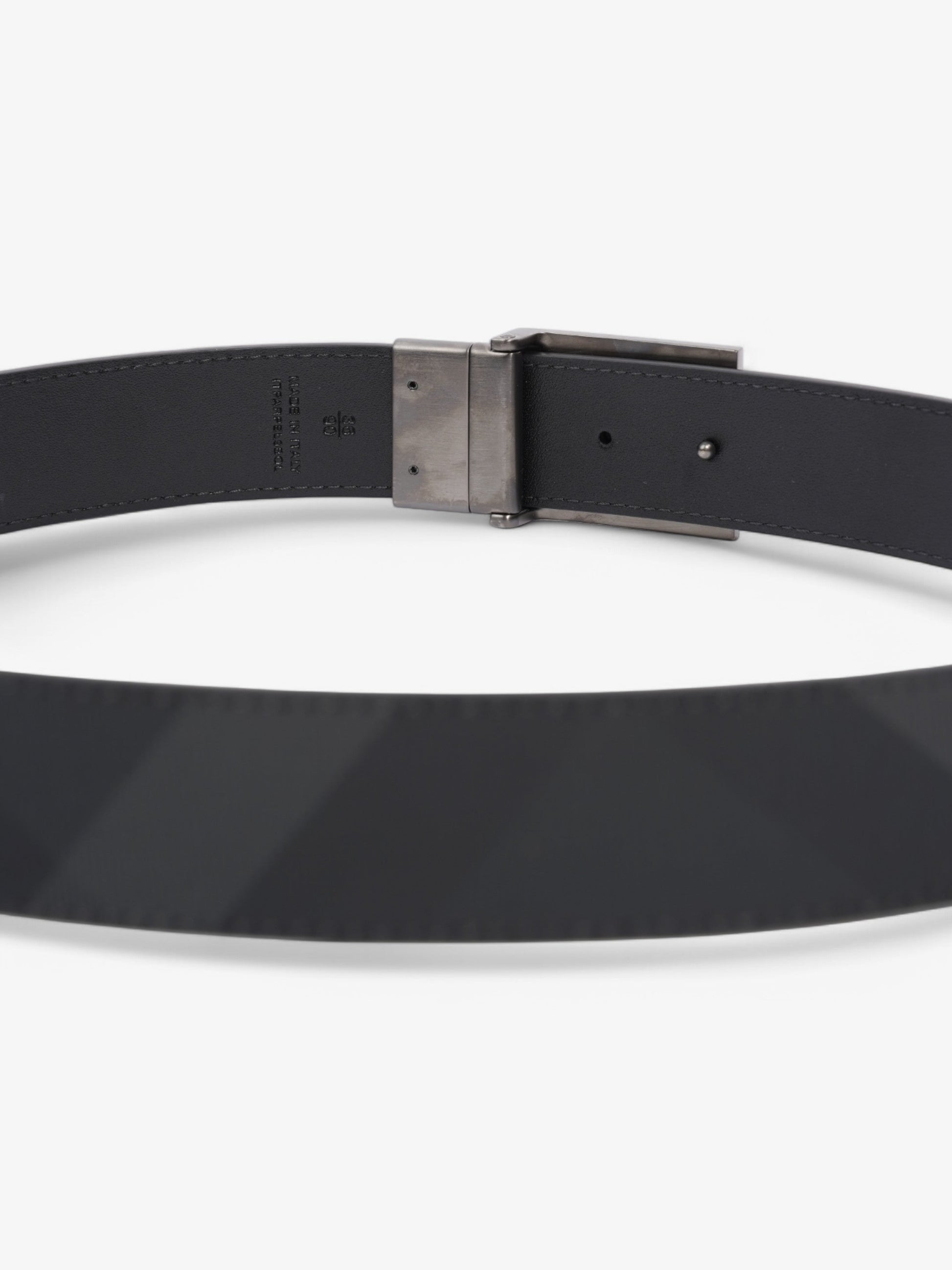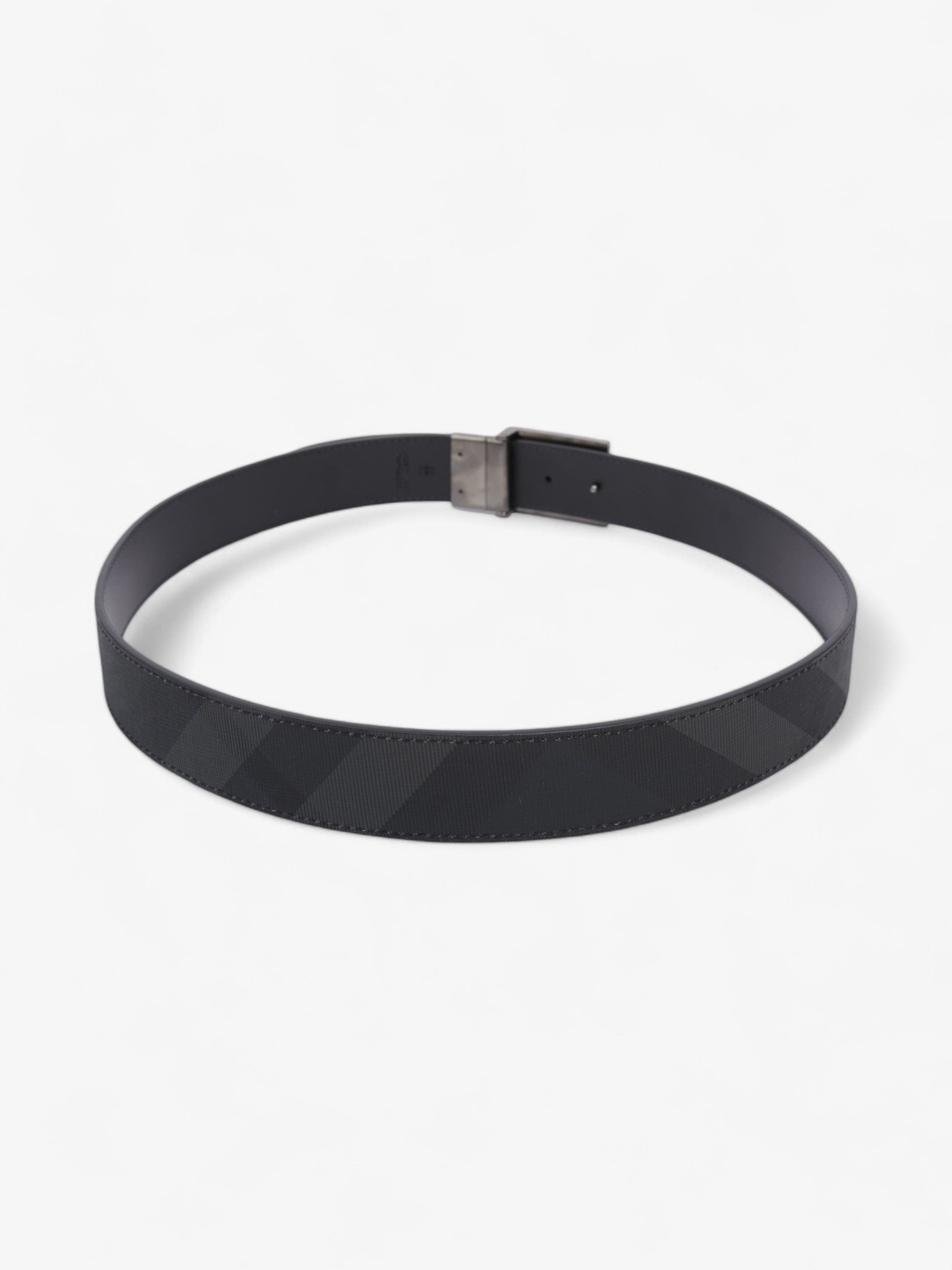 Burberry Reversible Plaque Buckle Check Belt Charcoal / Graphite / Silver Coated Canvas 90cm / 36"